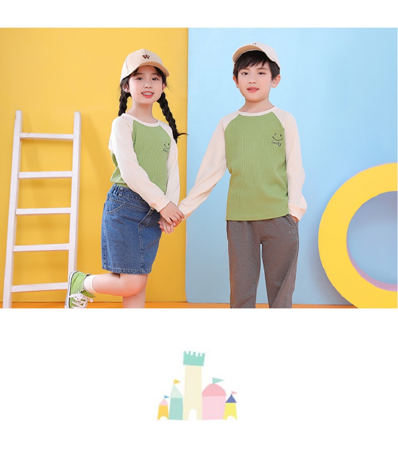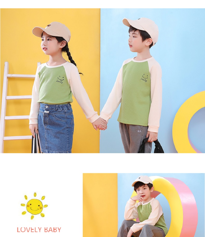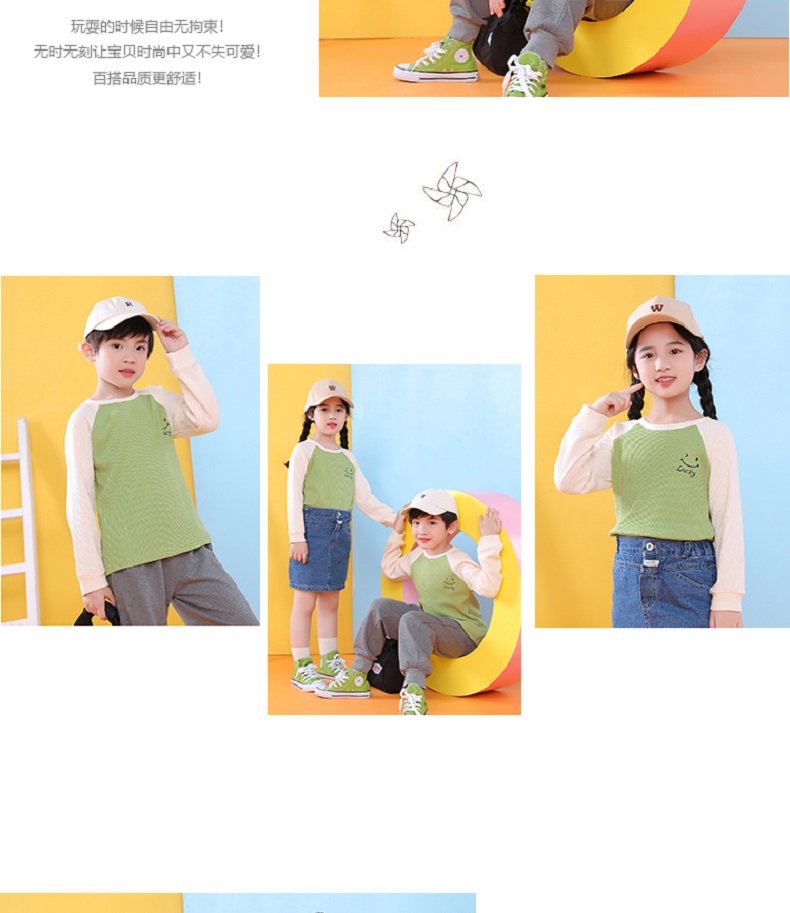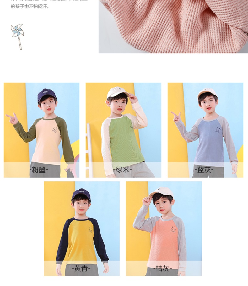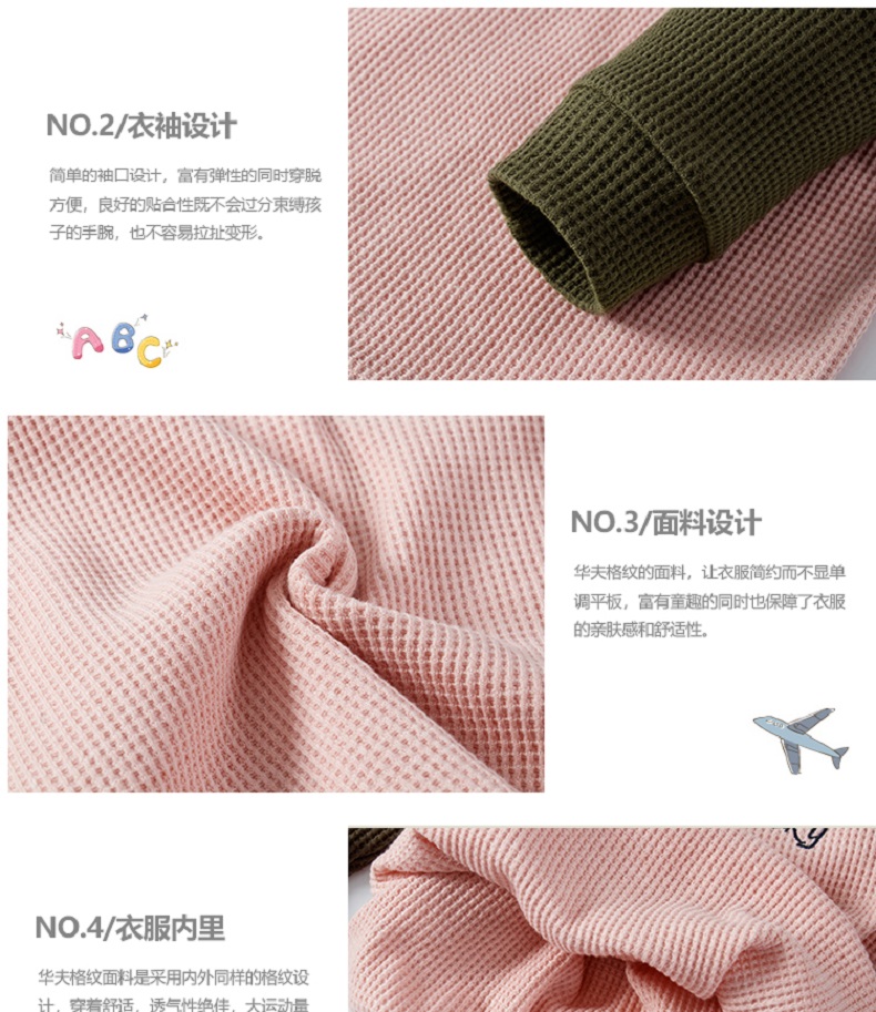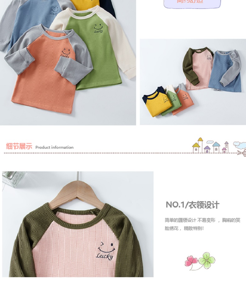 【特价清仓,抢完下架】【三件起拍,一件不发货】秋季儿童上衣长袖t恤华夫格撞色插肩长袖T恤
