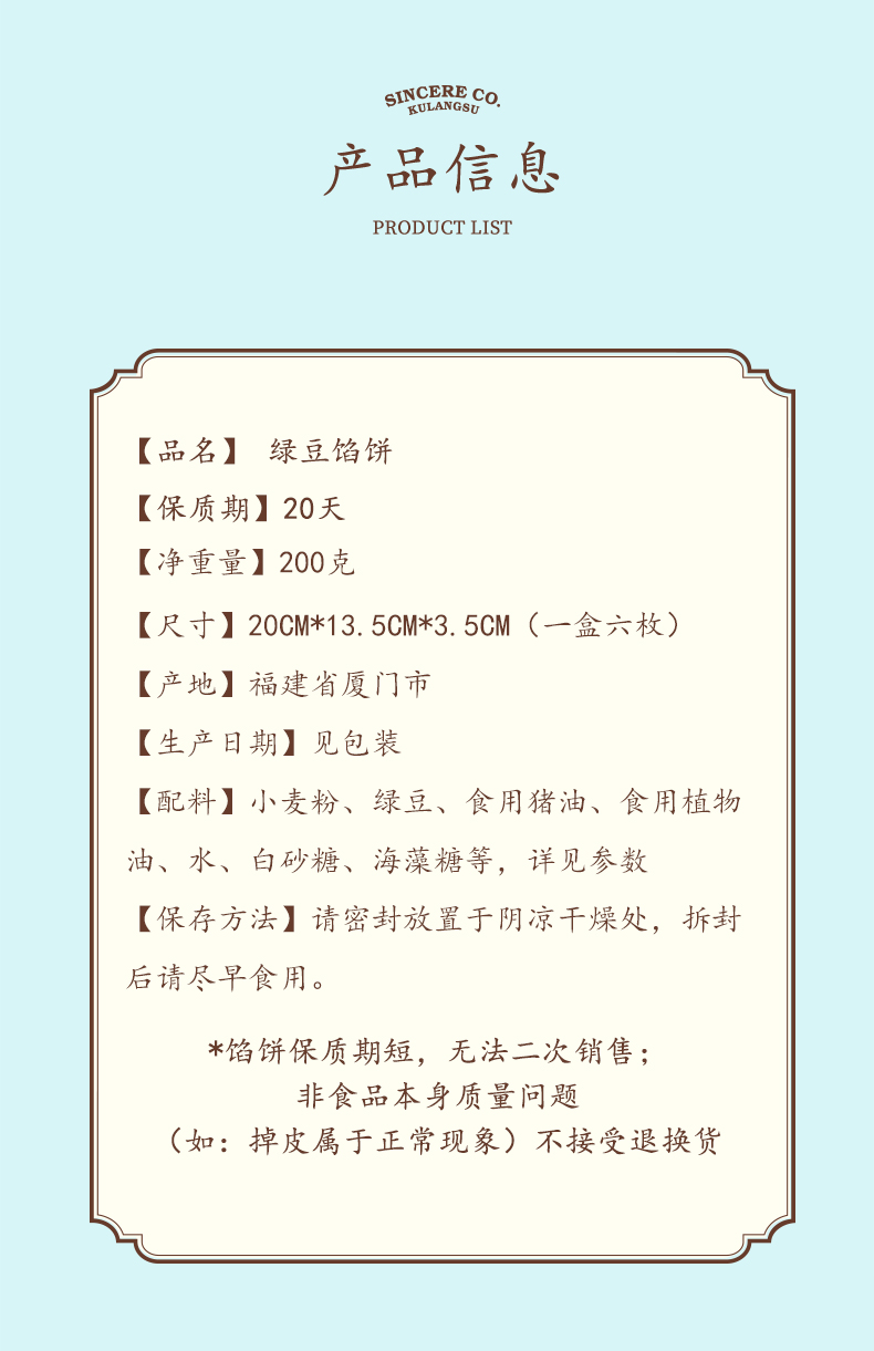 新四海厦门特产伴手礼绿豆馅饼