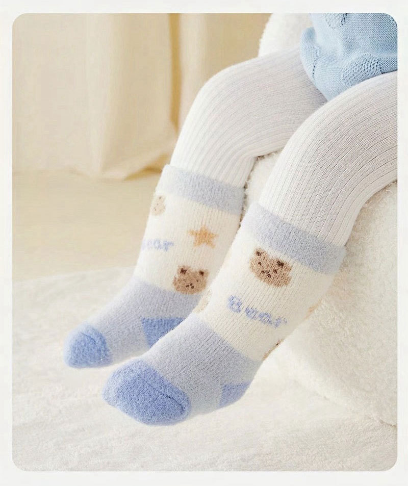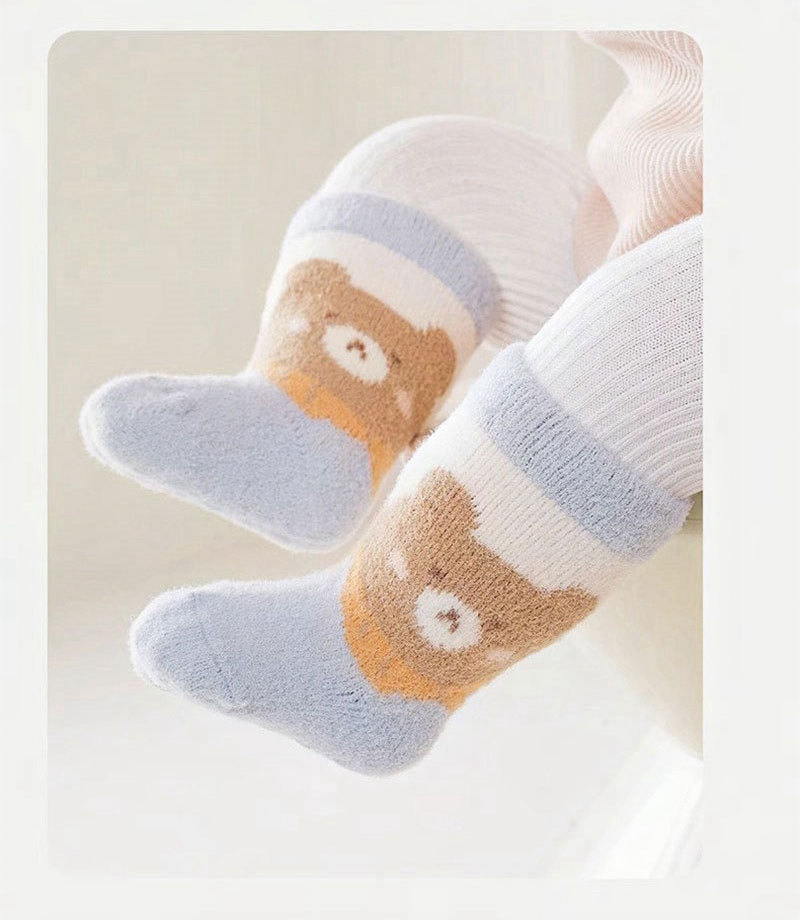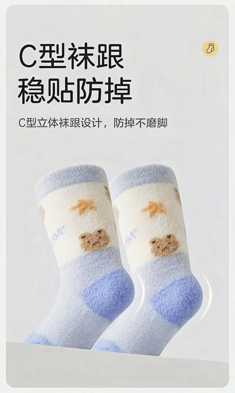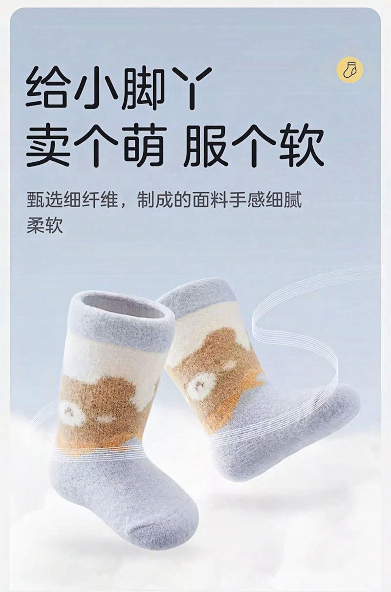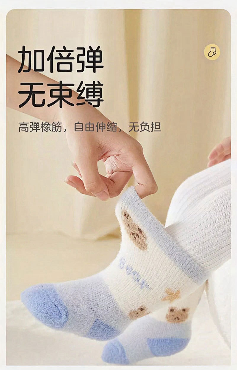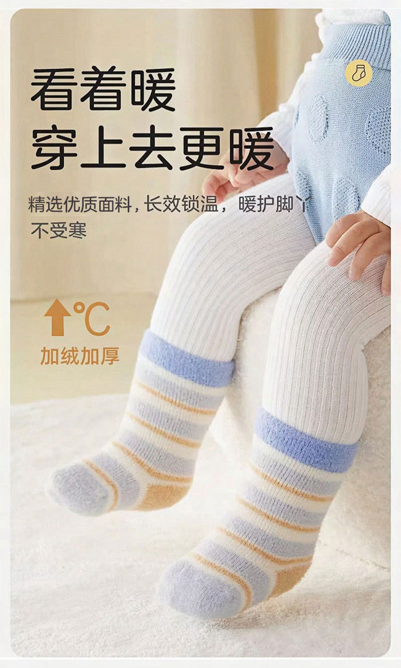 【超值3双❗️冬季加厚保暖袜】双面软绒柔暖每一寸,长效锁温,精梳面料亲肤透气,无骨缝合更舒适,新生儿秋冬中筒袜婴儿地板袜子QQ