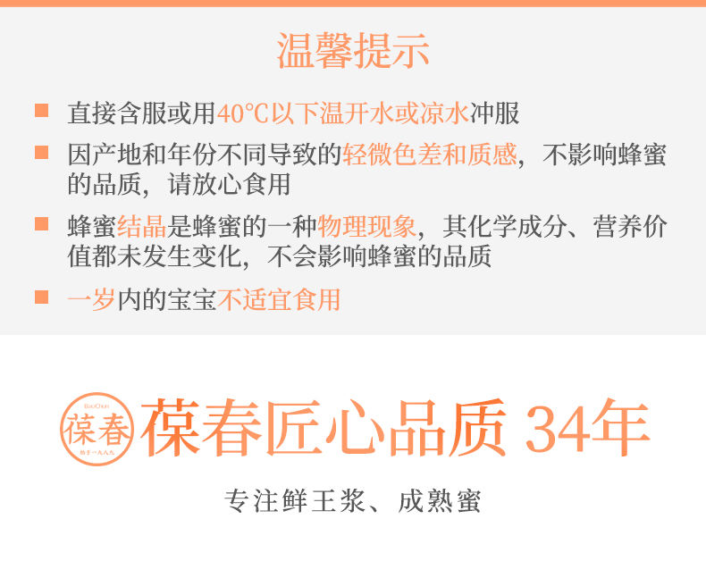 葆春蜂王浆公司,三代传承: 专业、专注、专心! 葆春蜂王浆、成熟蜜、蜂花粉 :蜜蜂造,“0”添加。 葆春蜂产品 :不天选,以心择。 欢迎品鉴!