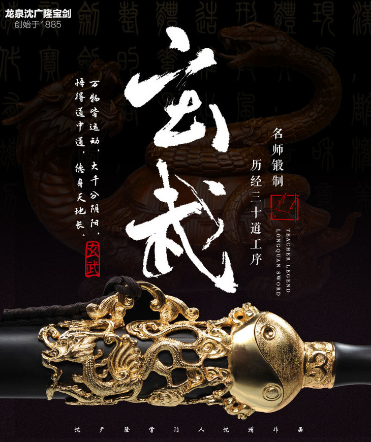 玄武剑 沈州作品 花纹钢剑 龙泉沈广隆宝剑 全手工传统剑 工艺品 未开刃