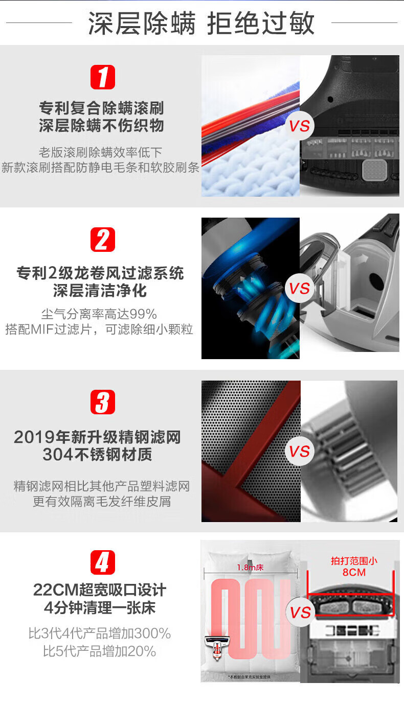 莱克(LEXY)除螨仪吉米家用床上紫外线杀菌除螨机去螨虫大吸力吸尘神器 B401