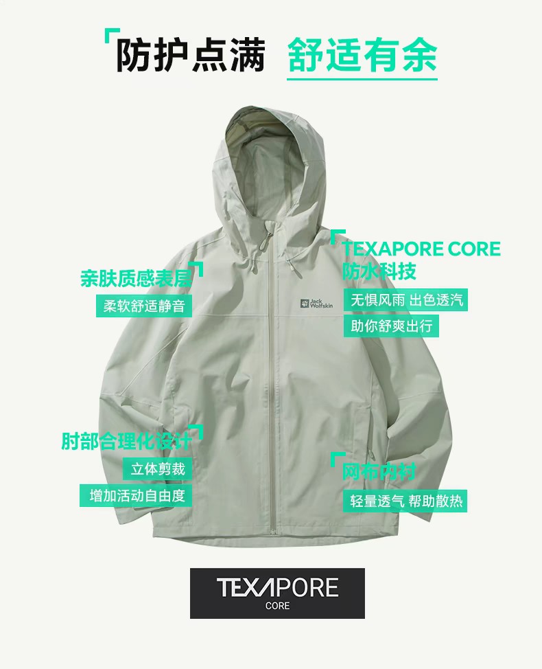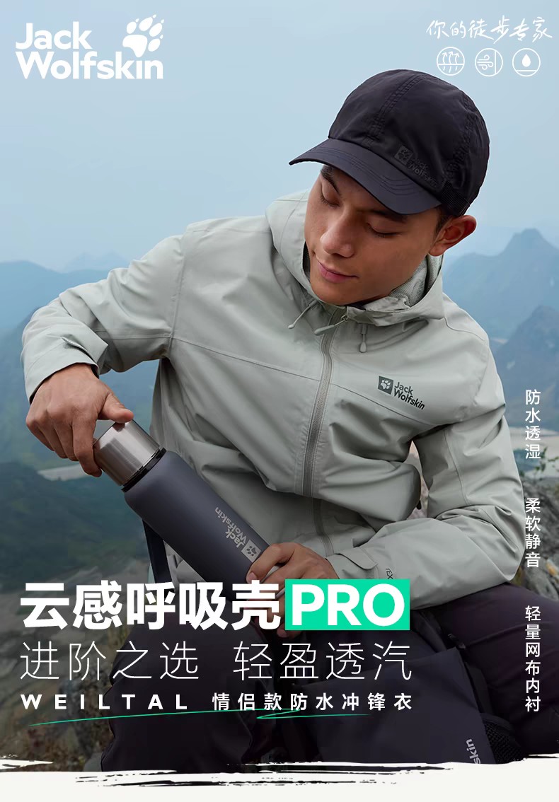 【云粉节】【6折】6楼JACKWOLFSKIN狼爪25年春款WEILTAL男士防风防水透汽冲锋衣5033351-6709吊牌价1399折后839