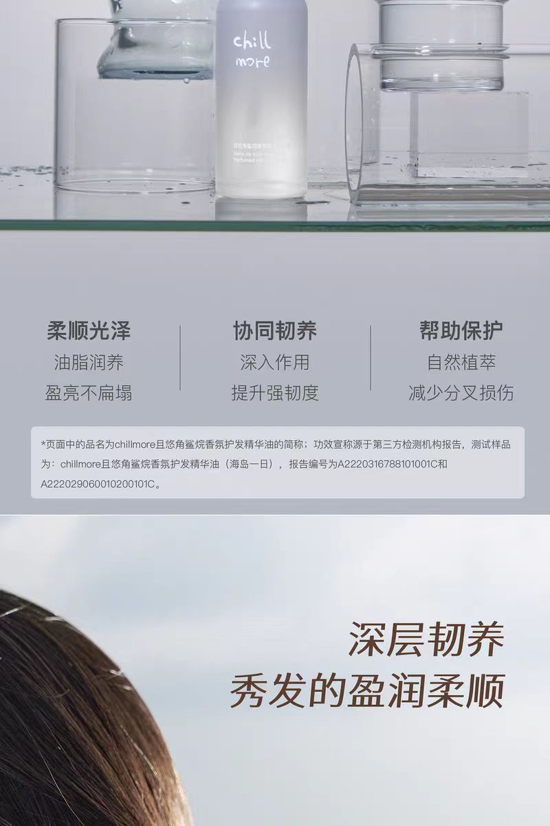 4楼Eubelle欧蓓 Chillmore且悠角鲨烷香氛护发精油75ml 柔顺修护蓬松 吊牌价:139元 活动价:129元