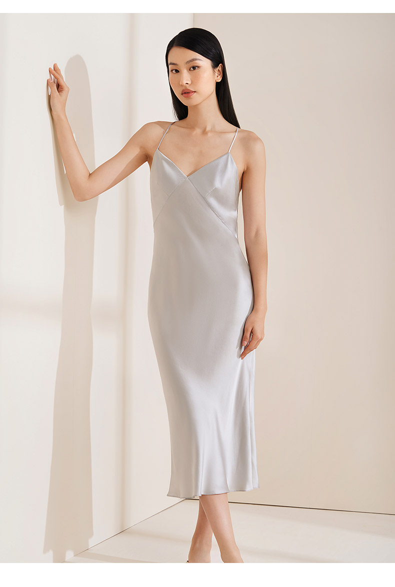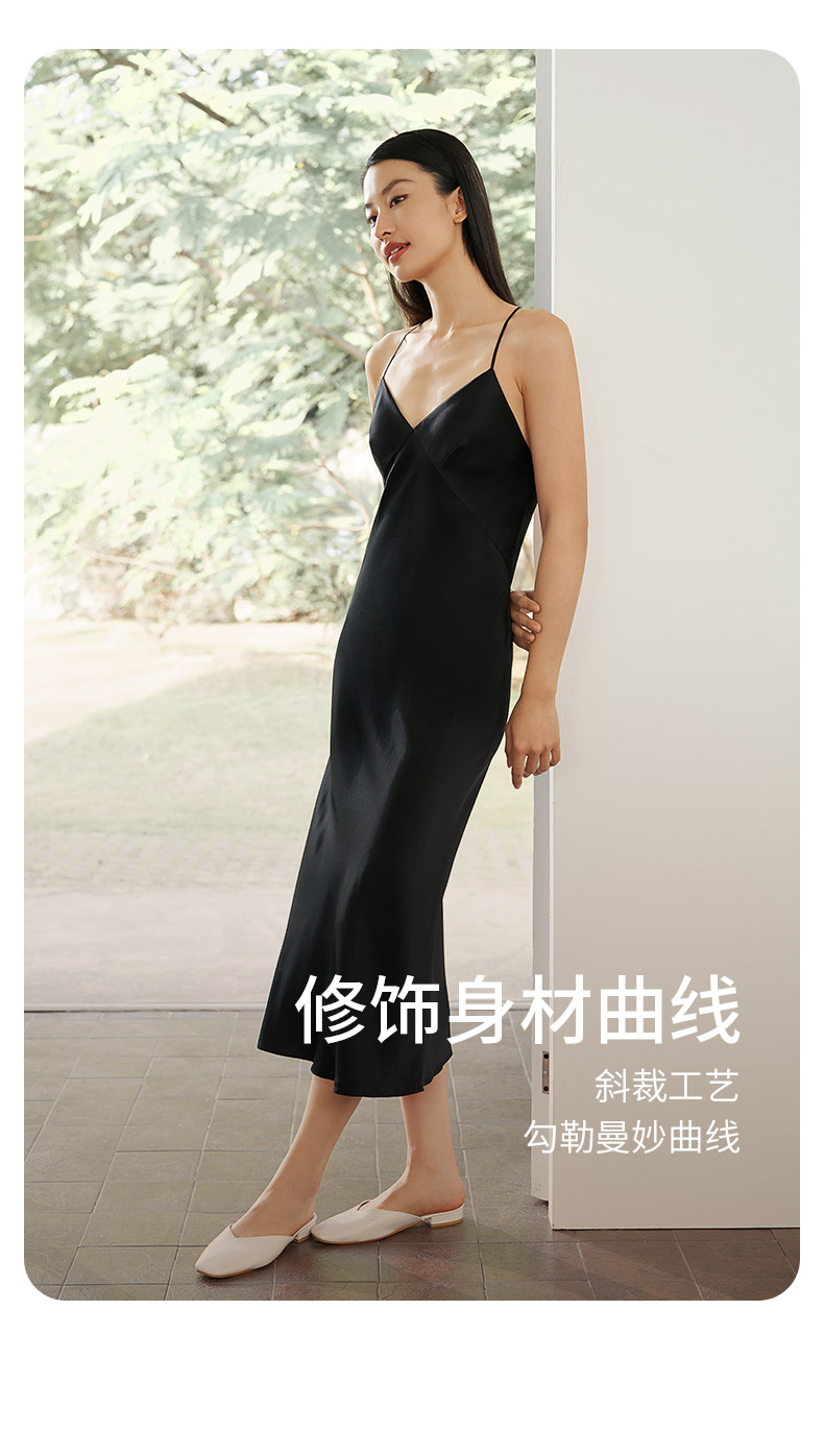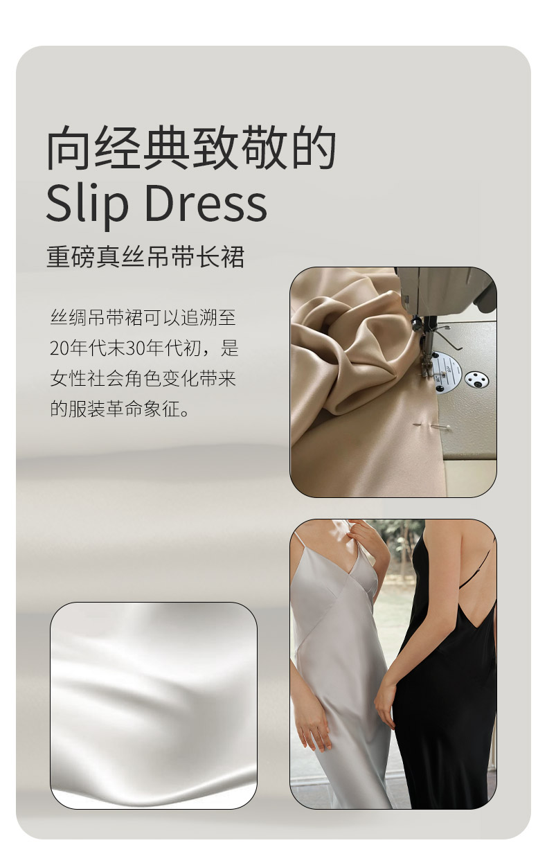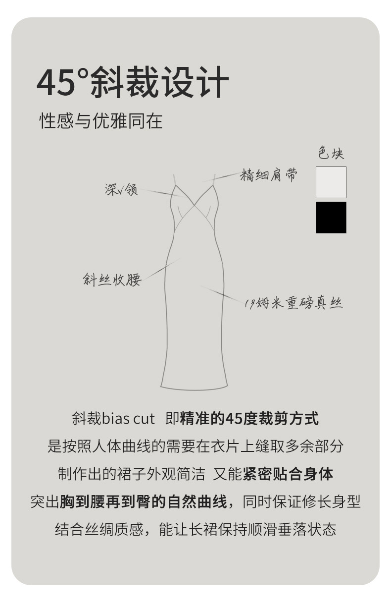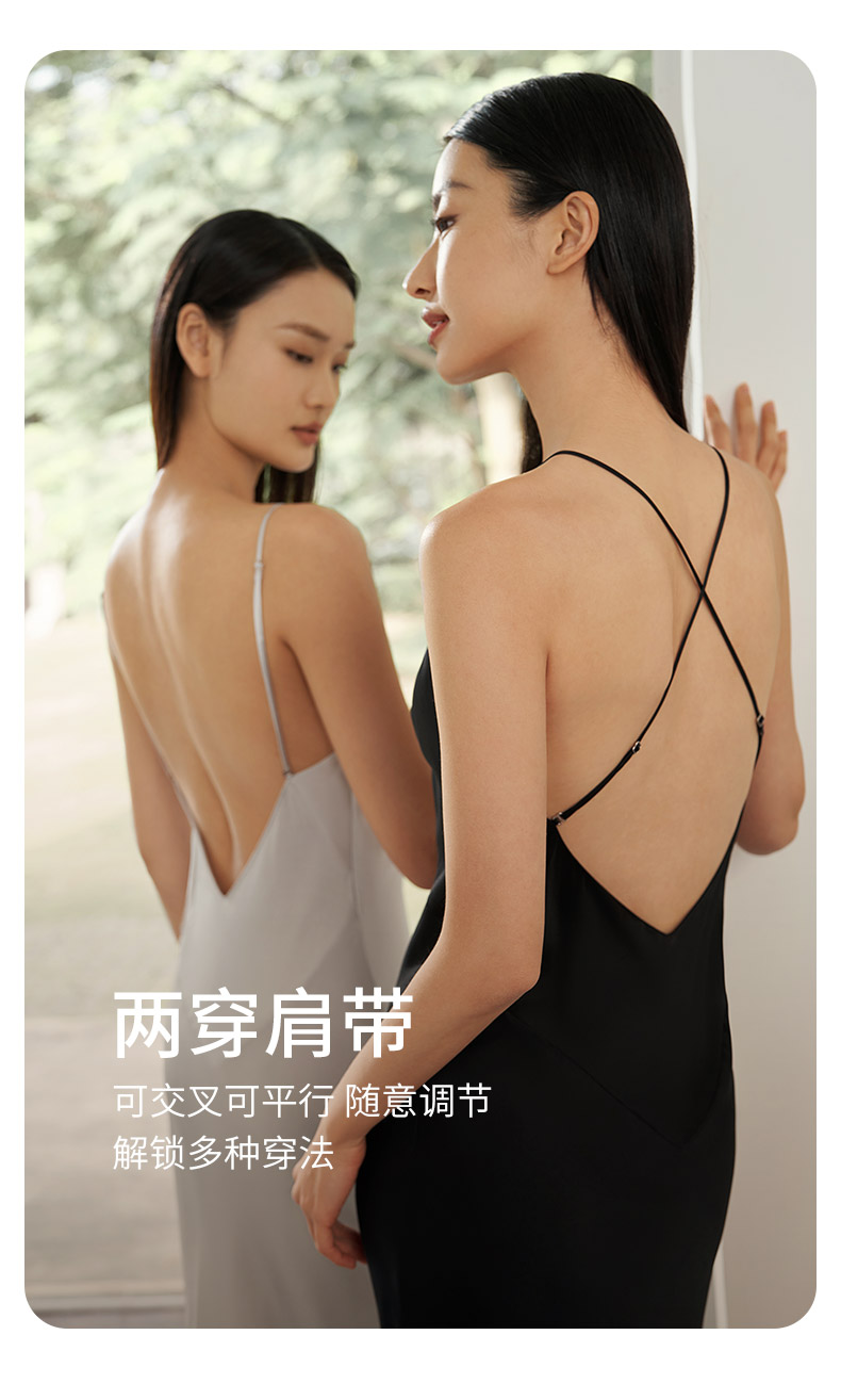 重磅真丝吊带长裙女100%桑蚕丝V领两穿肩带睡裙吊带睡衣女金三塔 YSFEA313