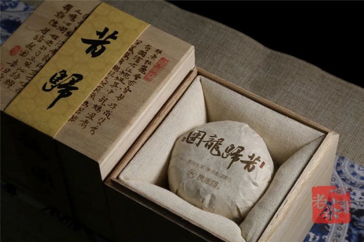 老茶鬼工坊本次预售的携谁隐•昔归龙团采用了普洱茶经典的团茶形态。