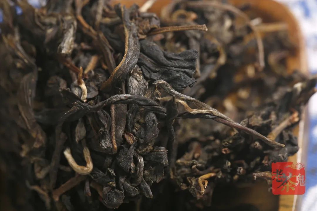 团茶抟制松紧适中。条索黑绿粗壮,白毫不十分明显,这是昔归茶的典型特点。