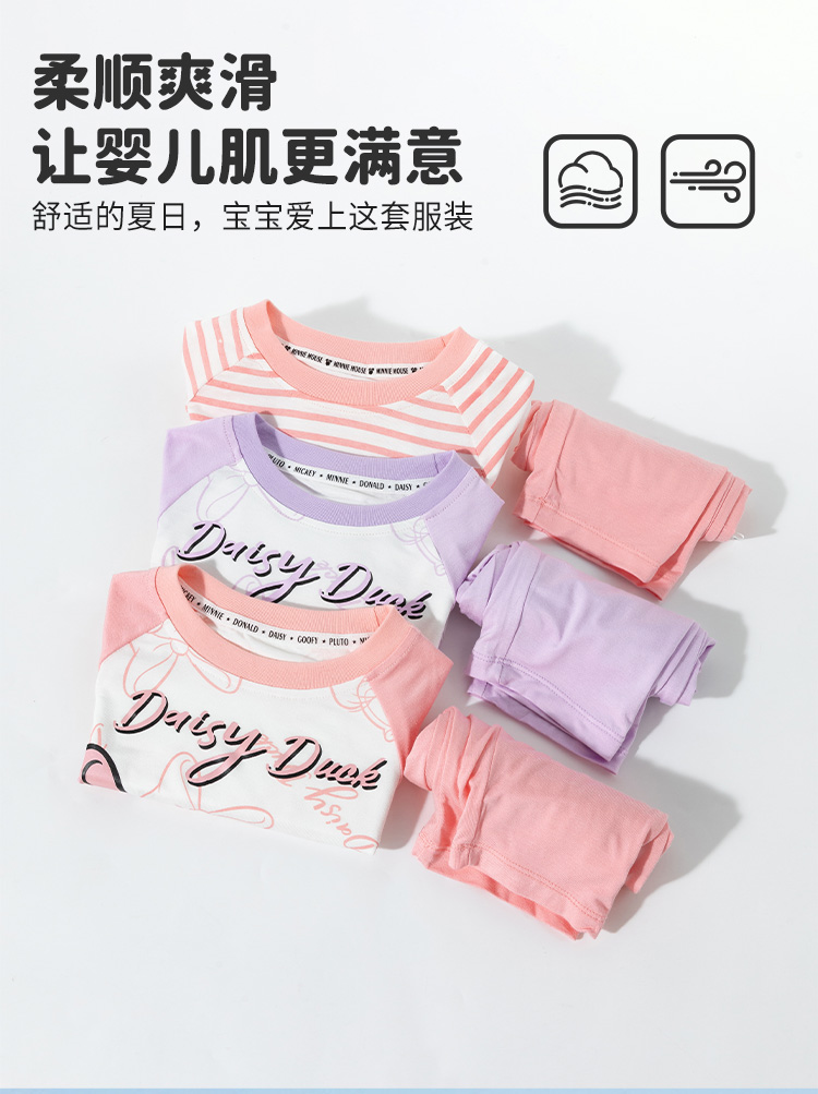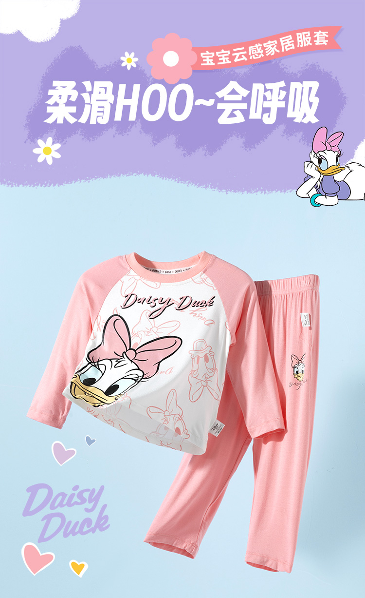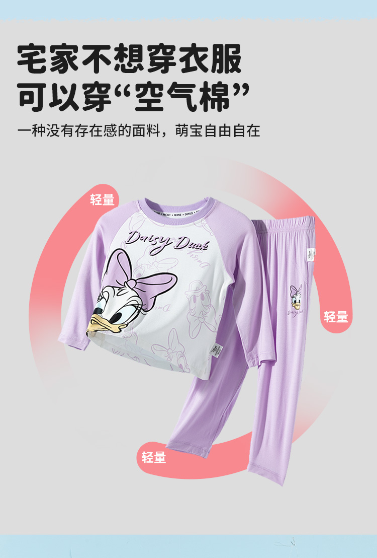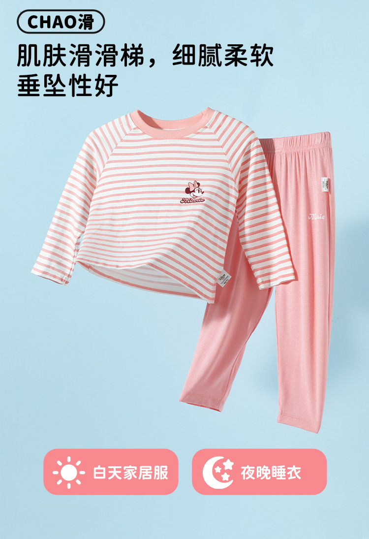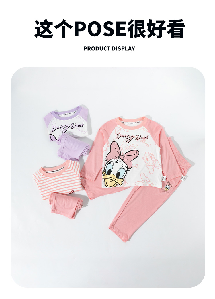 迪士尼【黛丝拼色家居服】25春新款女童长袖长裤内衣套装亲肤舒适睡ZD1ET009