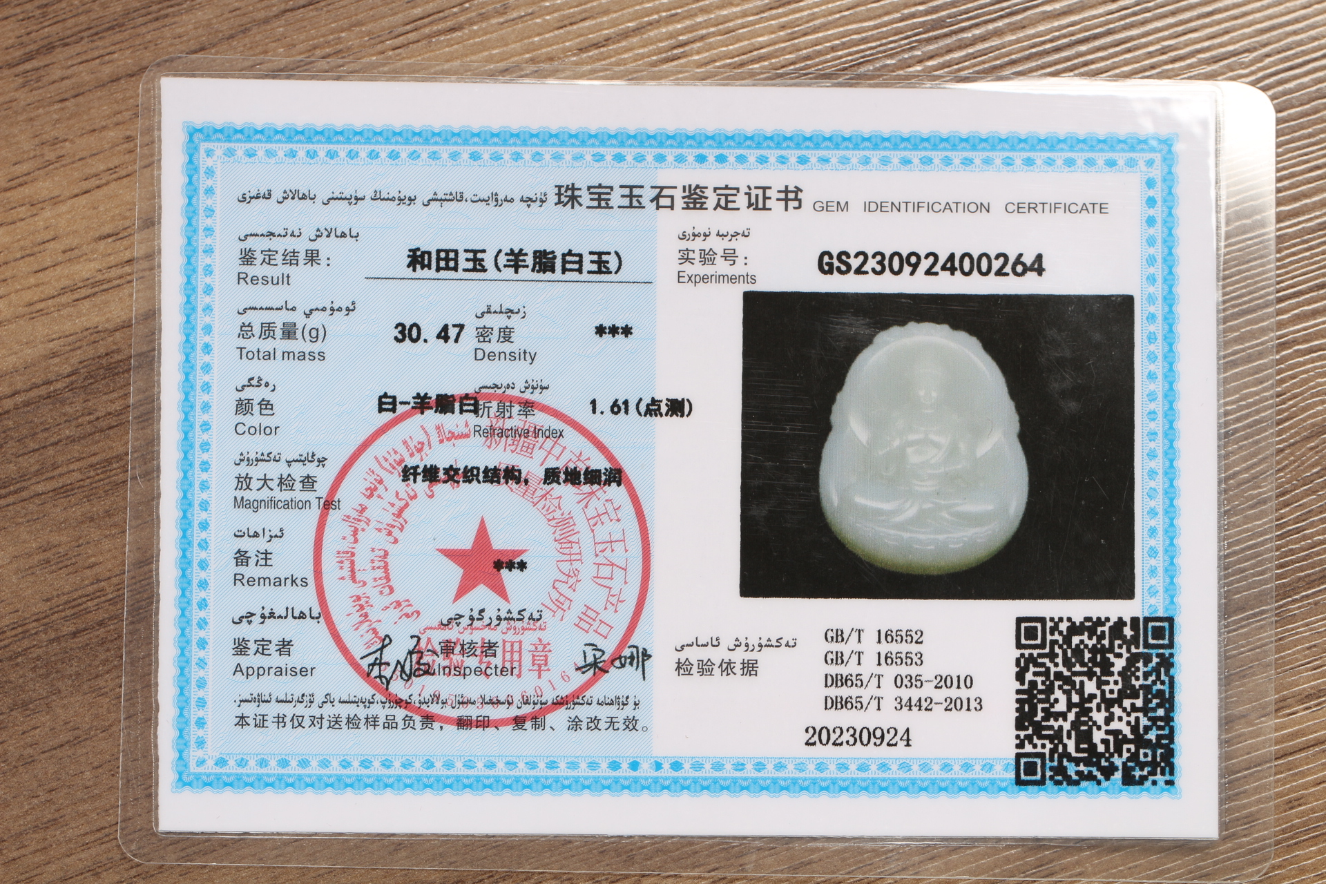 和田羊脂白玉【观音】 配精美挂绳