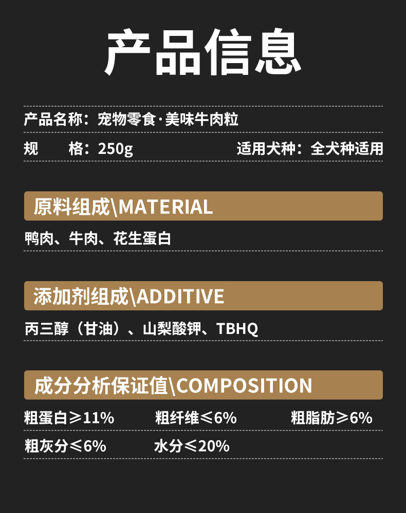 瓜洲牧狗狗零食牛肉粒磨牙棒250g幼犬小型犬泰迪金毛训狗训练奖励冻干宠物粮