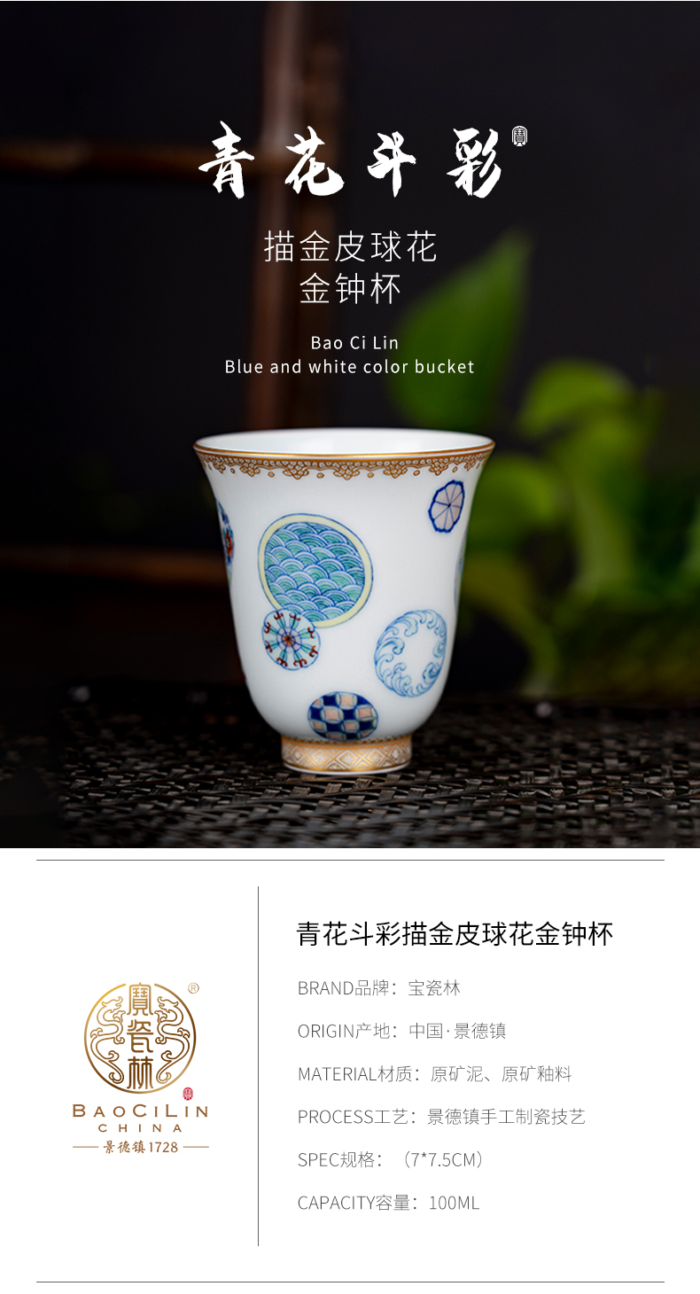 青花斗彩描金皮球花金钟杯