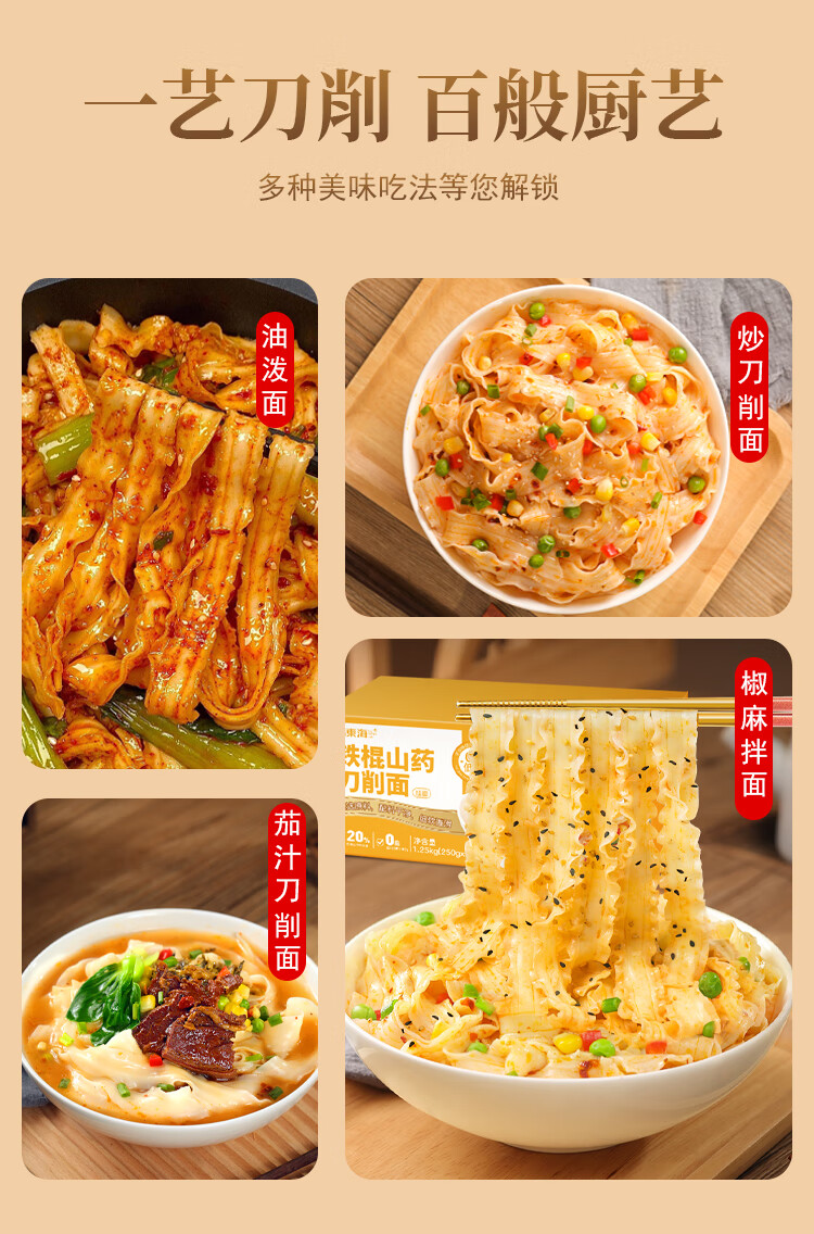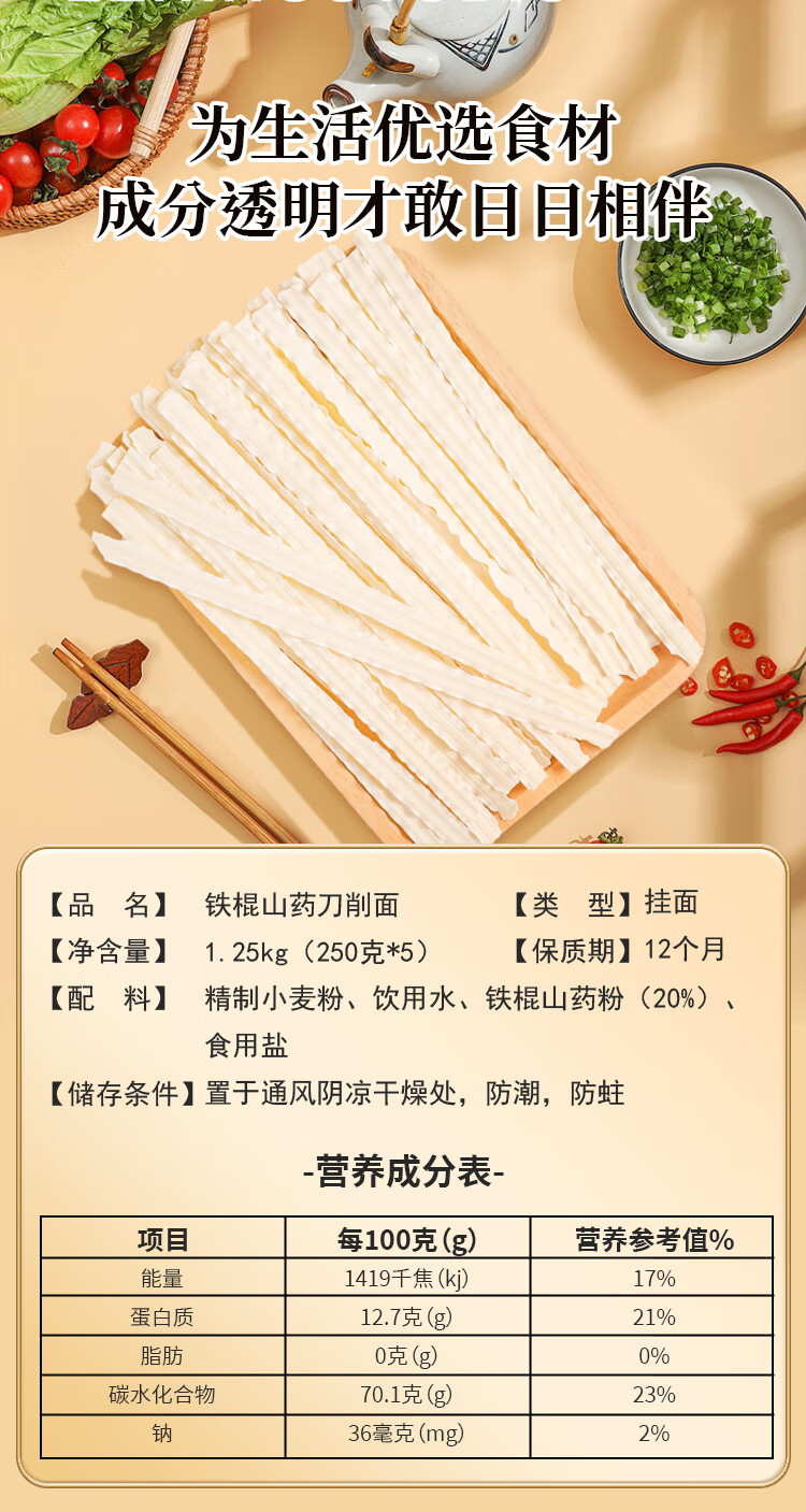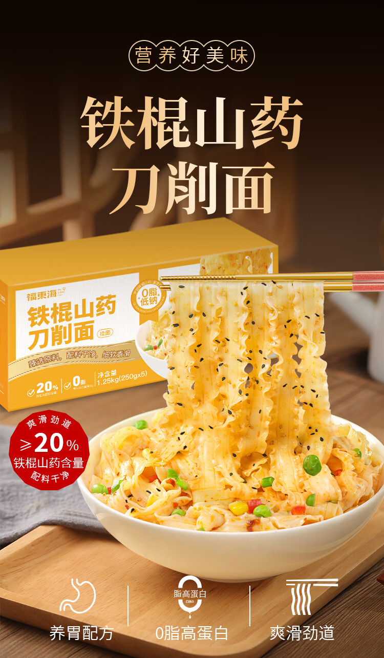福东海 铁棍山药刀削面1250g 20%山药原浆劲道适合汤面拌面油泼养生营养
