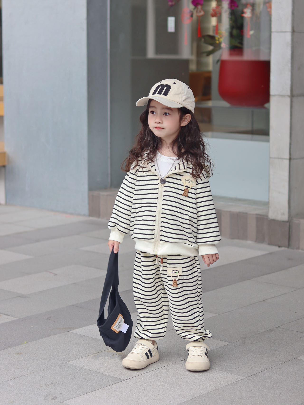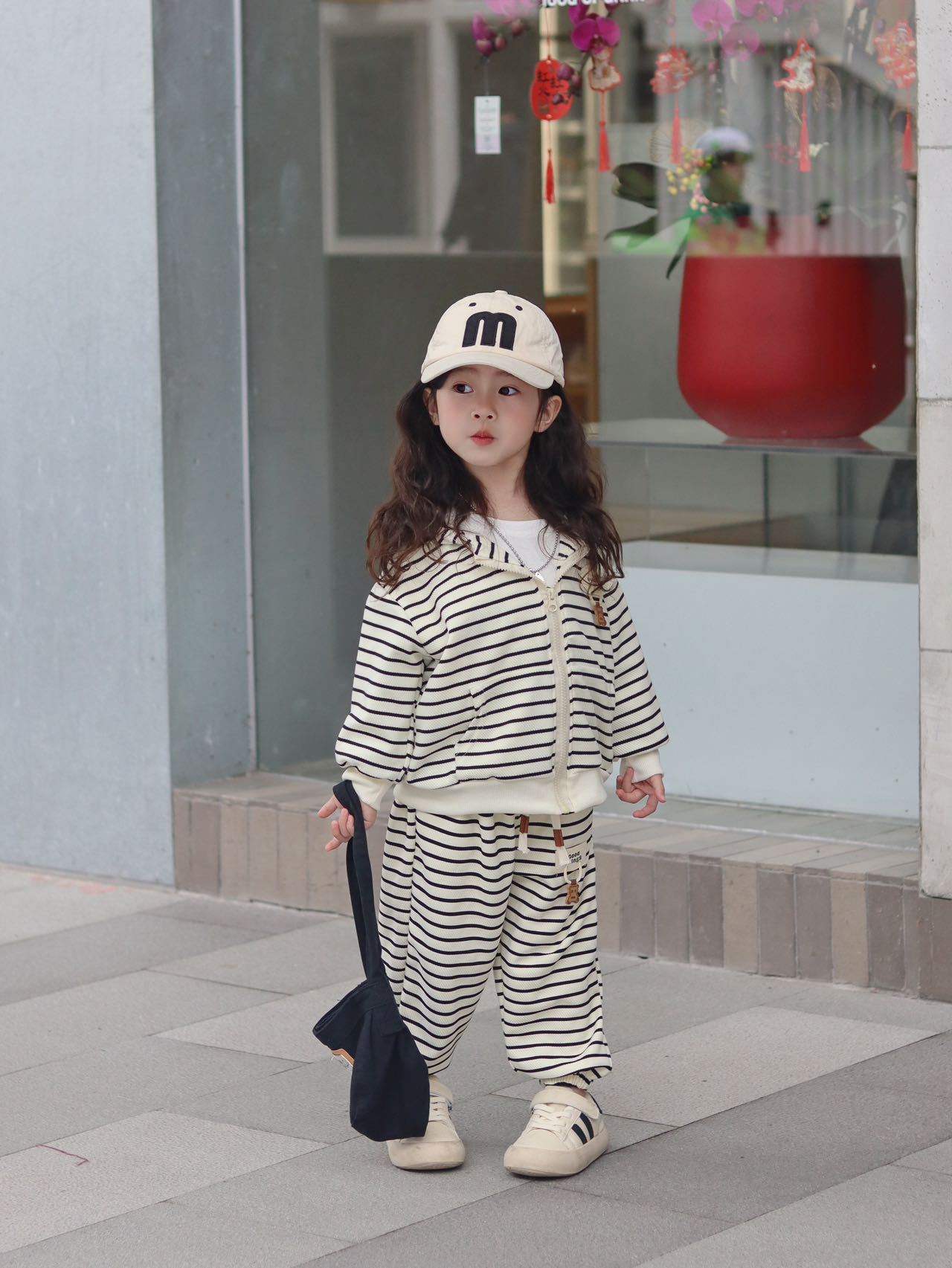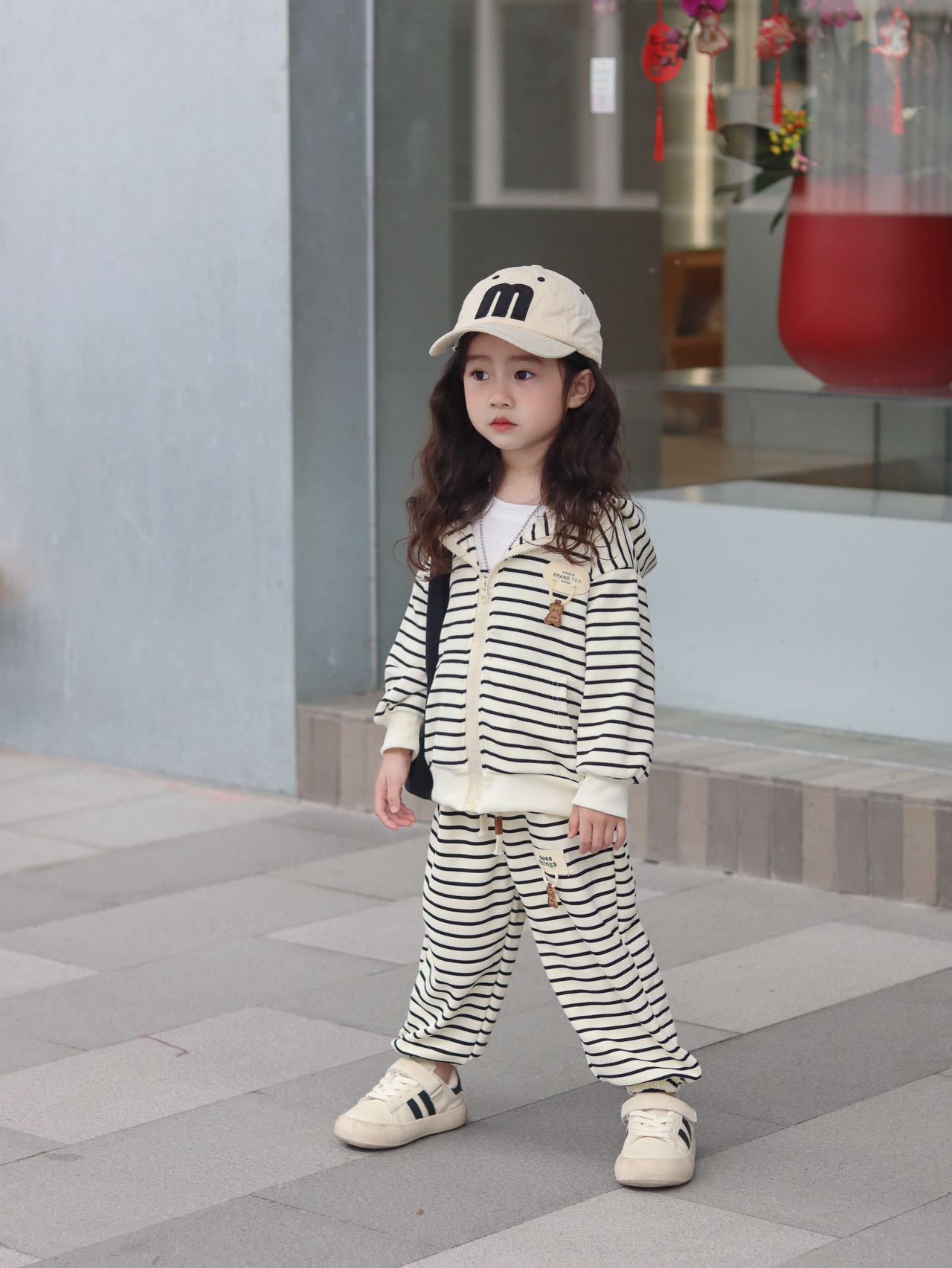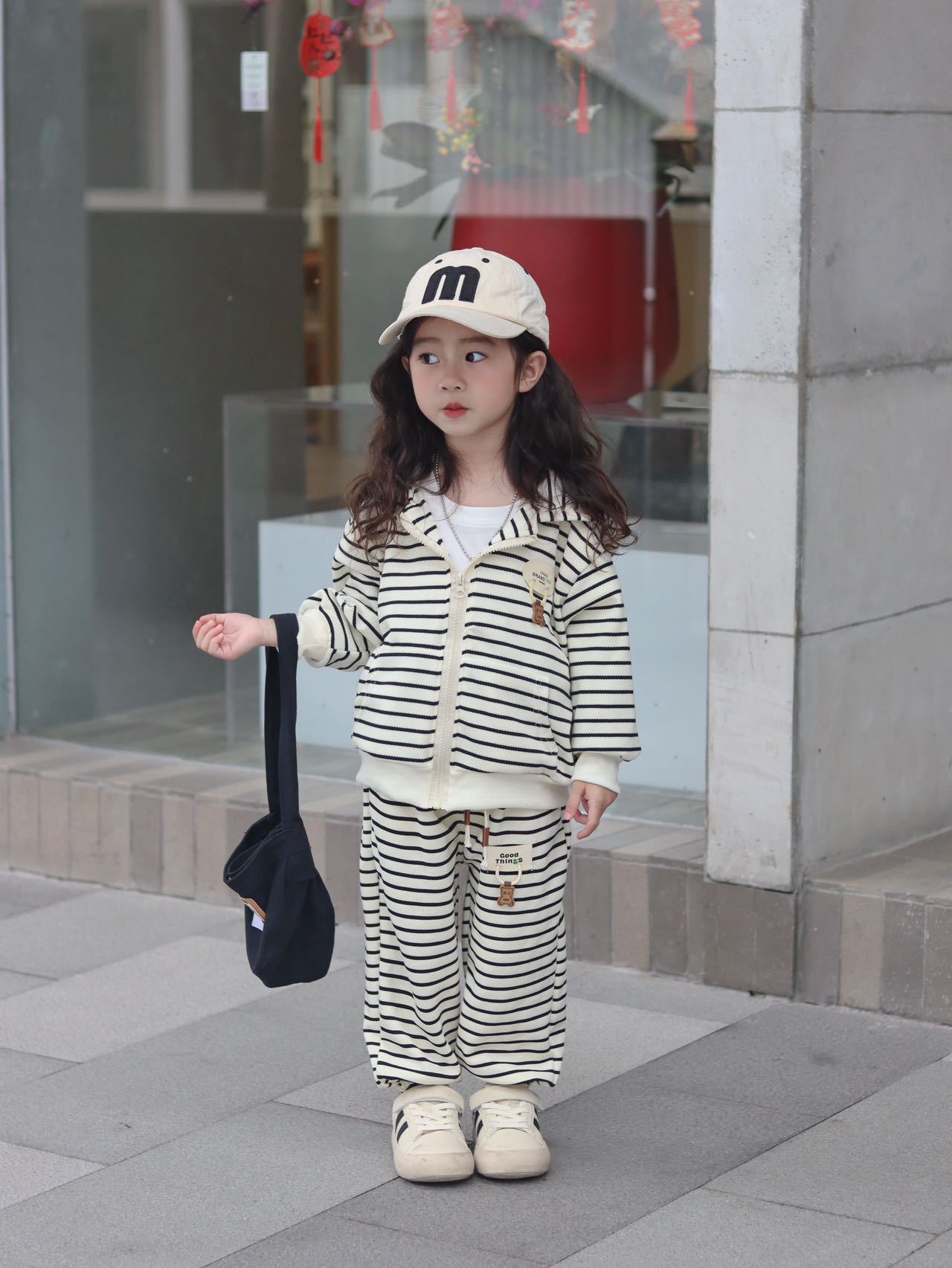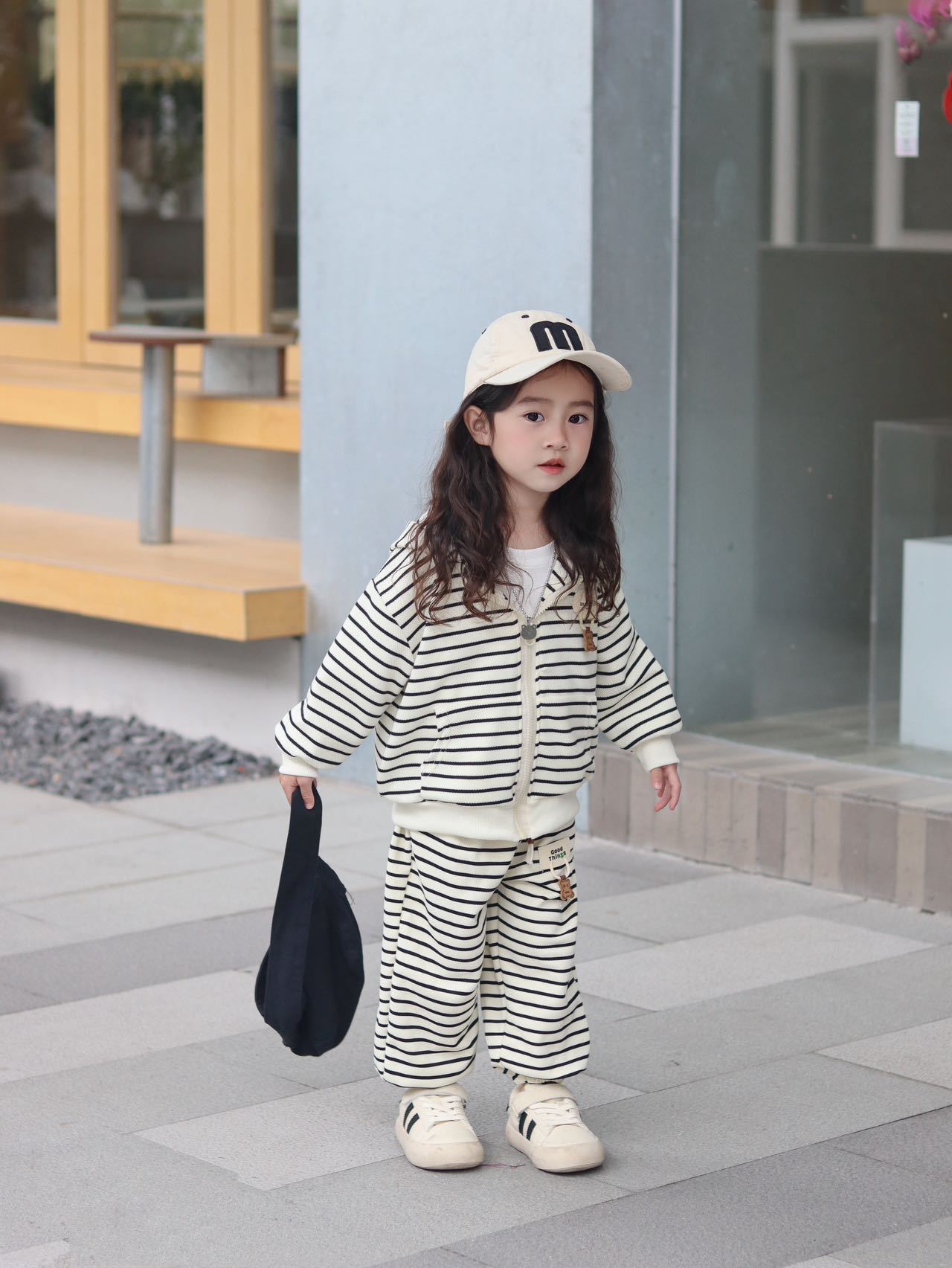 【网红休闲连帽时髦两件套】儿童外套套装童装小童男童女童秋季条纹时尚洋气
