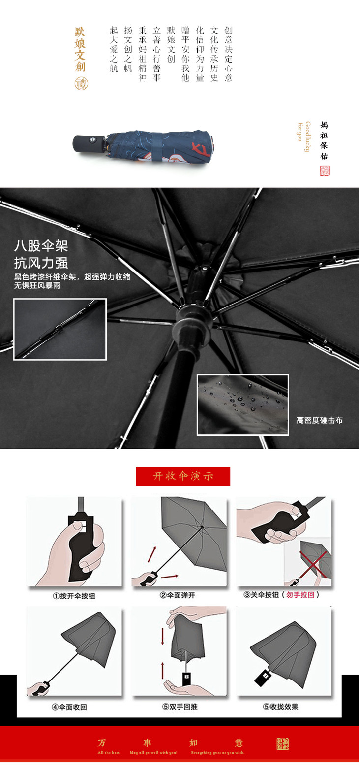妈祖平安伞晴雨两用自动伞