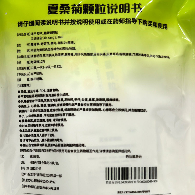 康美药业 夏桑菊颗粒10g*20袋/包 清肝明目疏风散热风热感冒目赤头痛咽喉肿痛