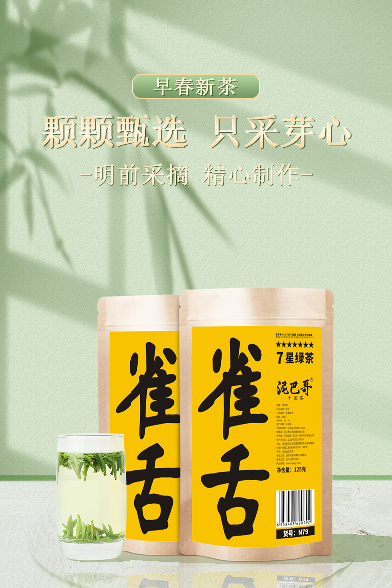 【2026新茶上市】泥巴哥7星雀舌绿茶明前青叶甘露125g*2袋