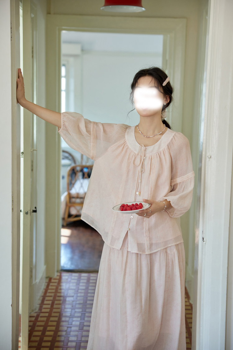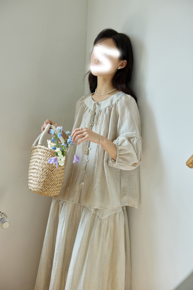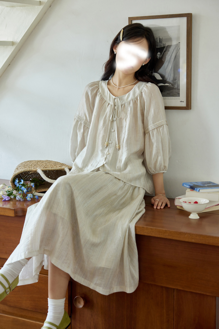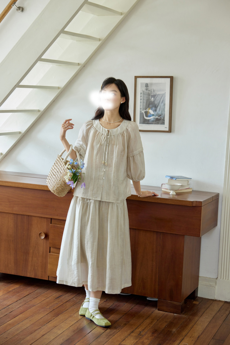 裁缝学苑AQ487圆领系带衬衫纸样半身裙A字大摆女装小衫样板