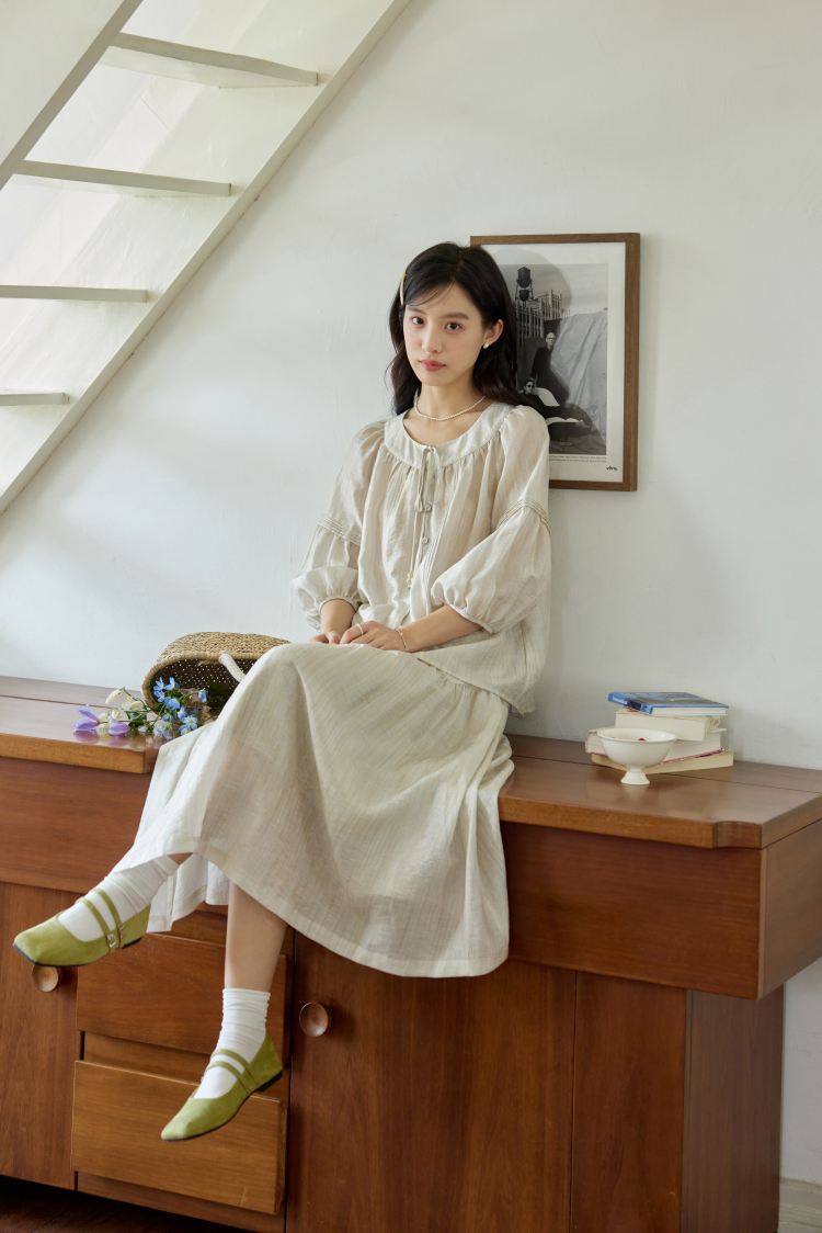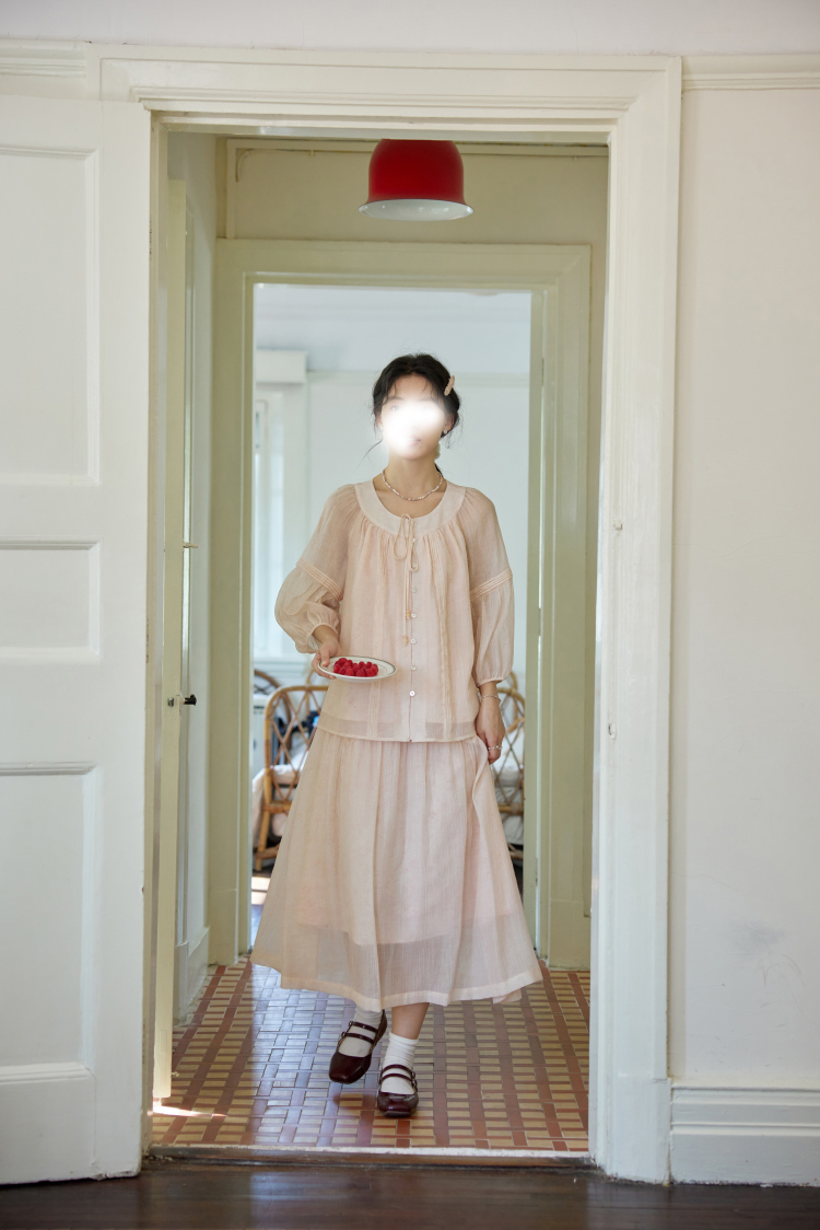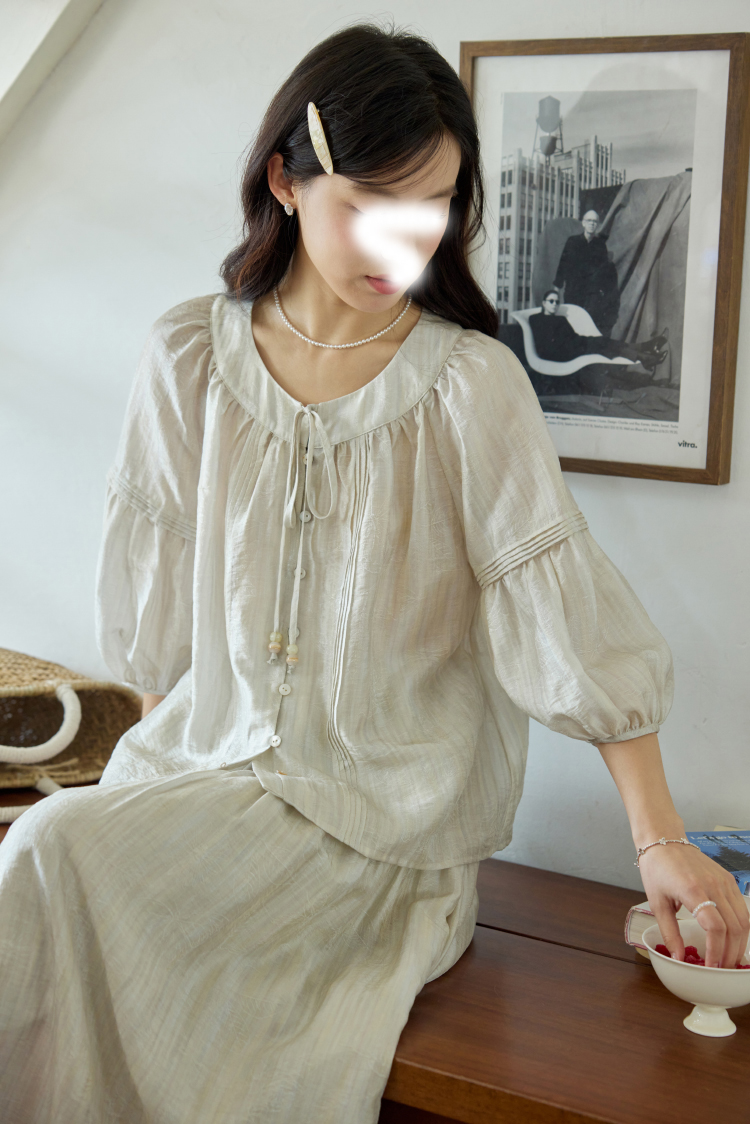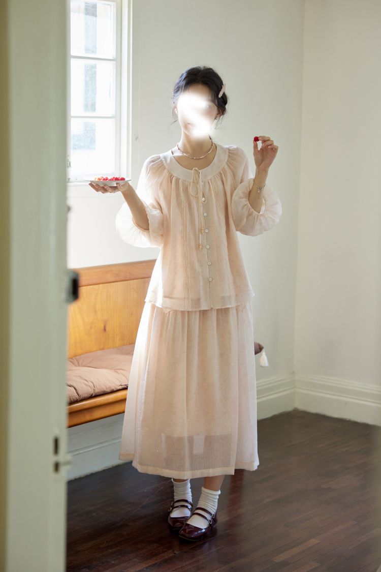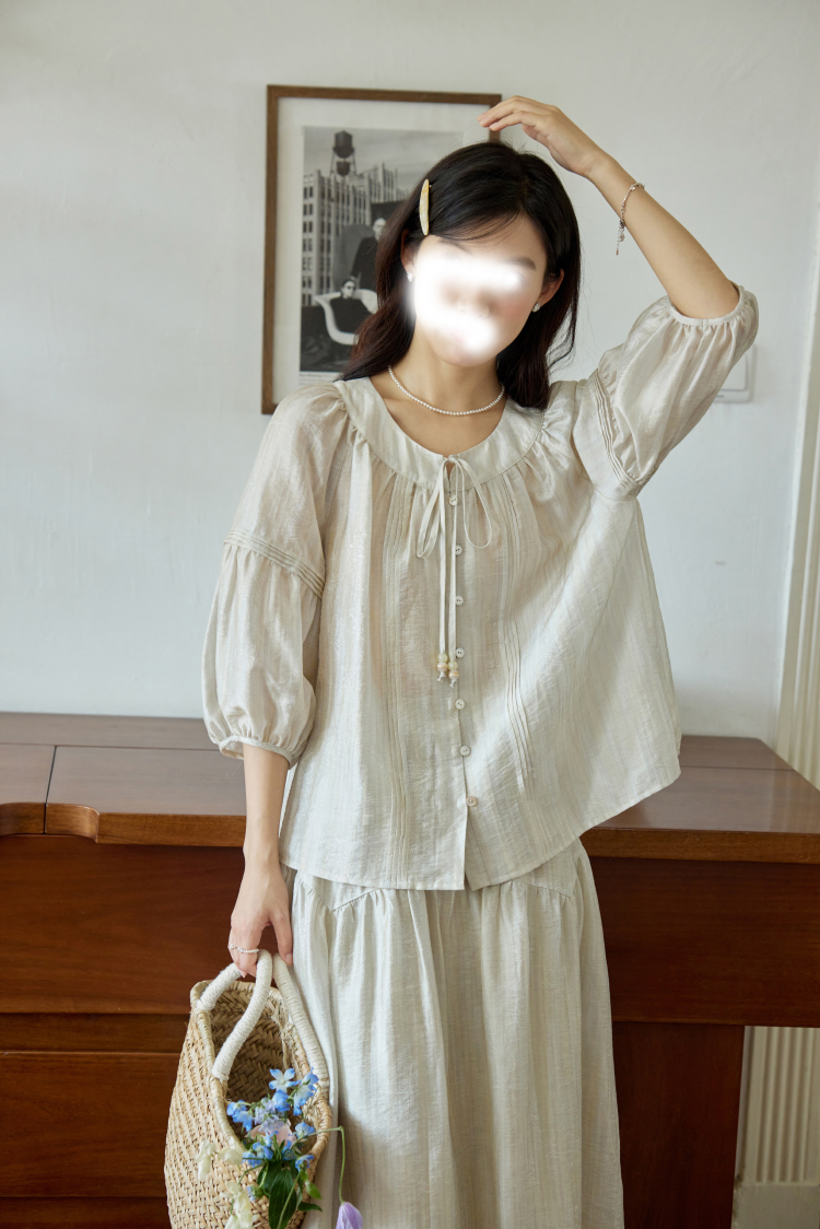 裁缝学苑AQ487圆领系带衬衫纸样半身裙A字大摆女装小衫样板