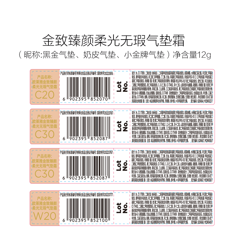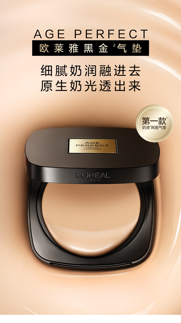 【欧莱雅黑金气垫】 金致臻颜柔光无瑕气垫霜12g赠替换芯自然偏白持妆遮瑕防晒