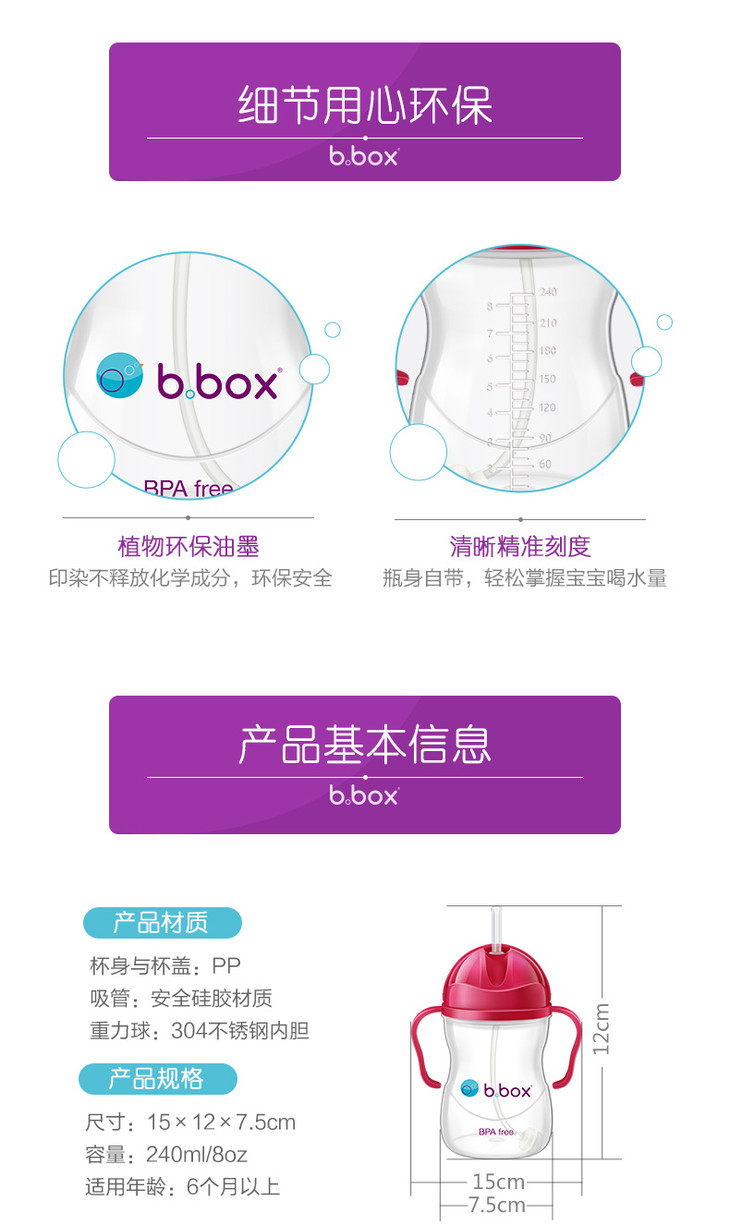 澳洲 Bbox儿童吸管杯重力球宝宝学饮杯 6个月