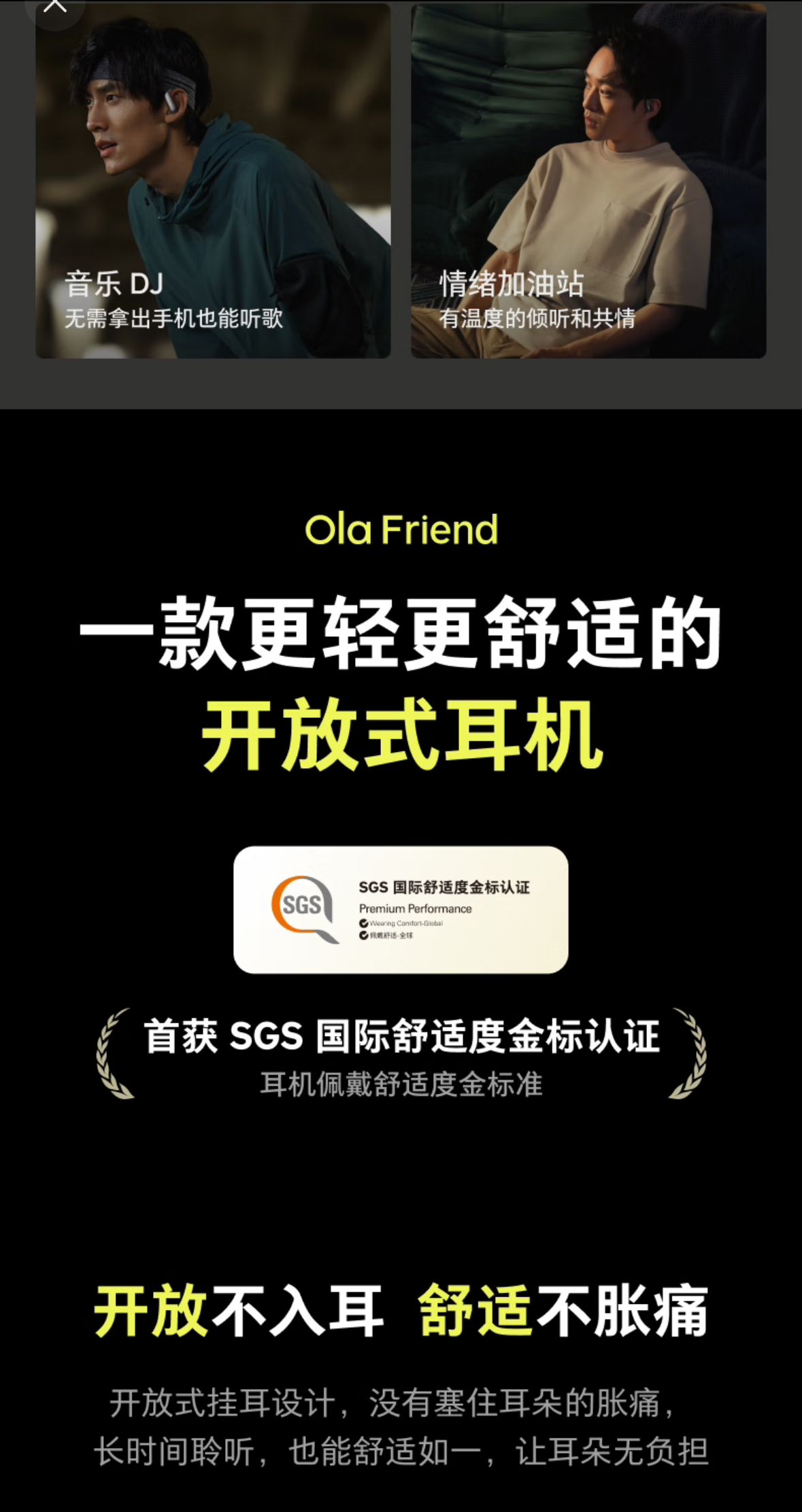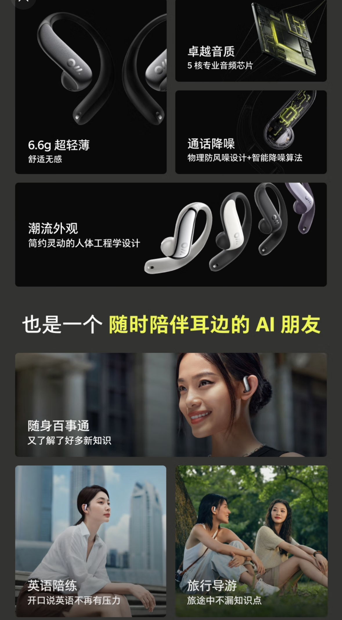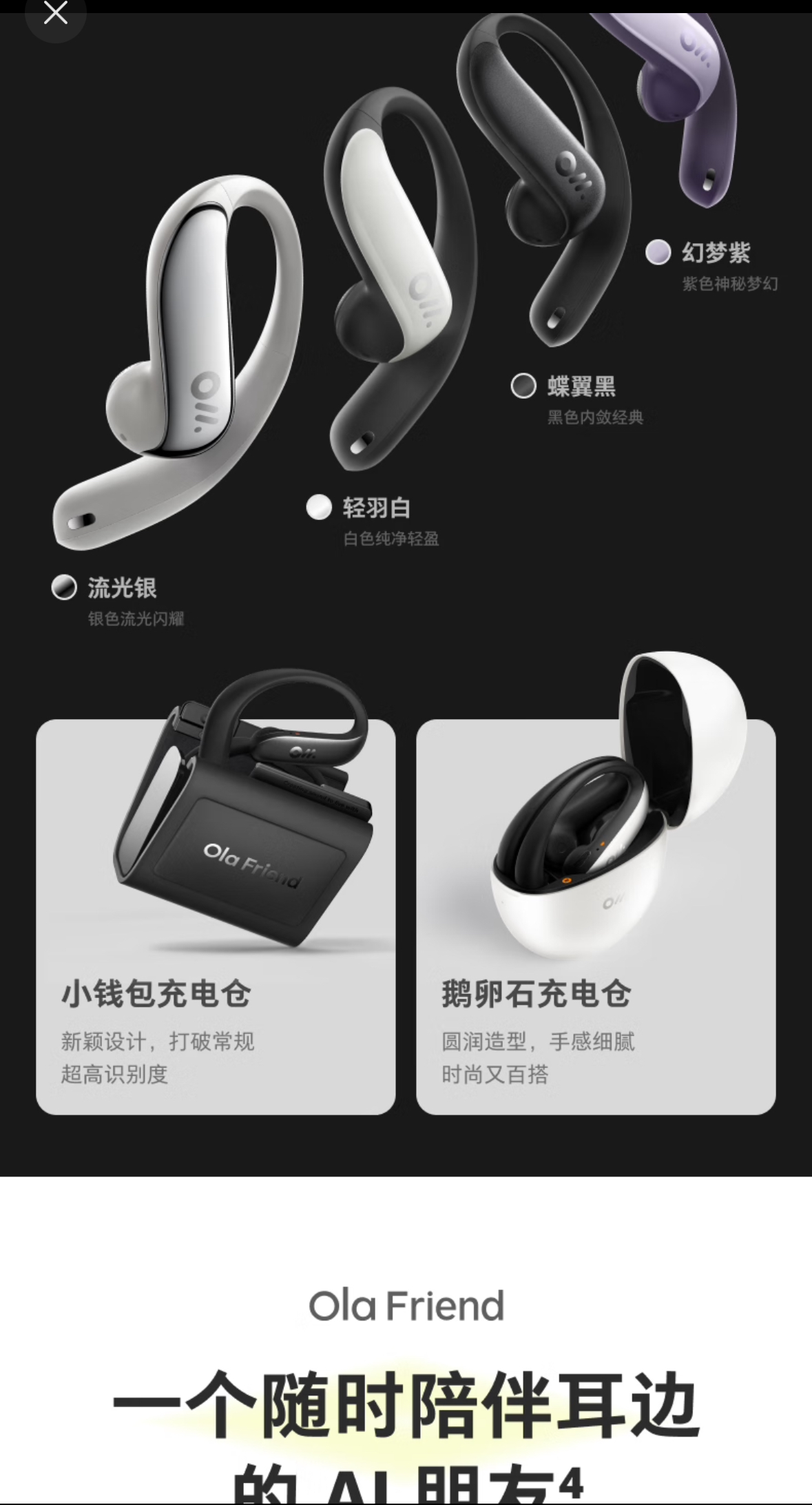 【云粉节】【新品上市】7楼鼎易数码 Ola Friend智能体耳机 开放式不入耳 蓝牙耳机 超轻6.6g长续航通话降噪豆包耳机小钱包