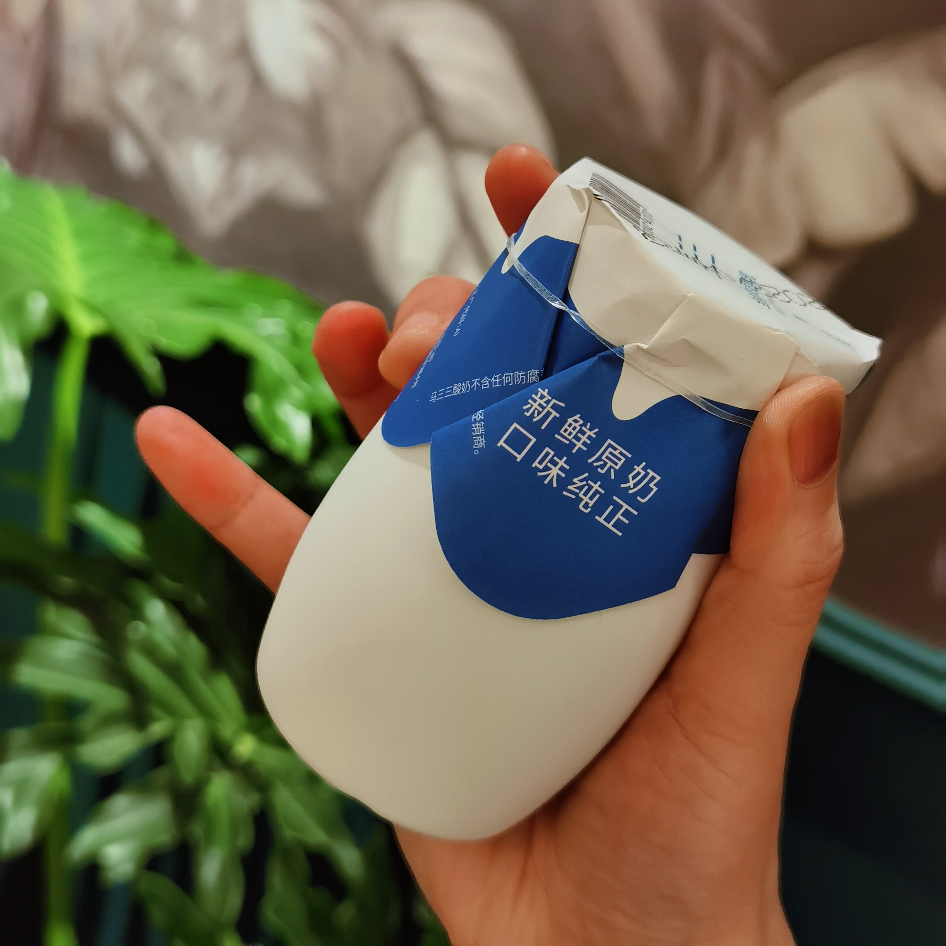 马三三全脂风味发酵乳坠大程度上保留了酸奶的原始风味,口感是非常自然的浓稠,有醇厚的奶味和淡淡的甜味,酸味藏得很深,自带清甜且绵长的奶香气。而装酸奶的瓶子,马三三采用了食品级PET,按照玻璃瓶酸奶造型,是很怀旧的风格哦!
