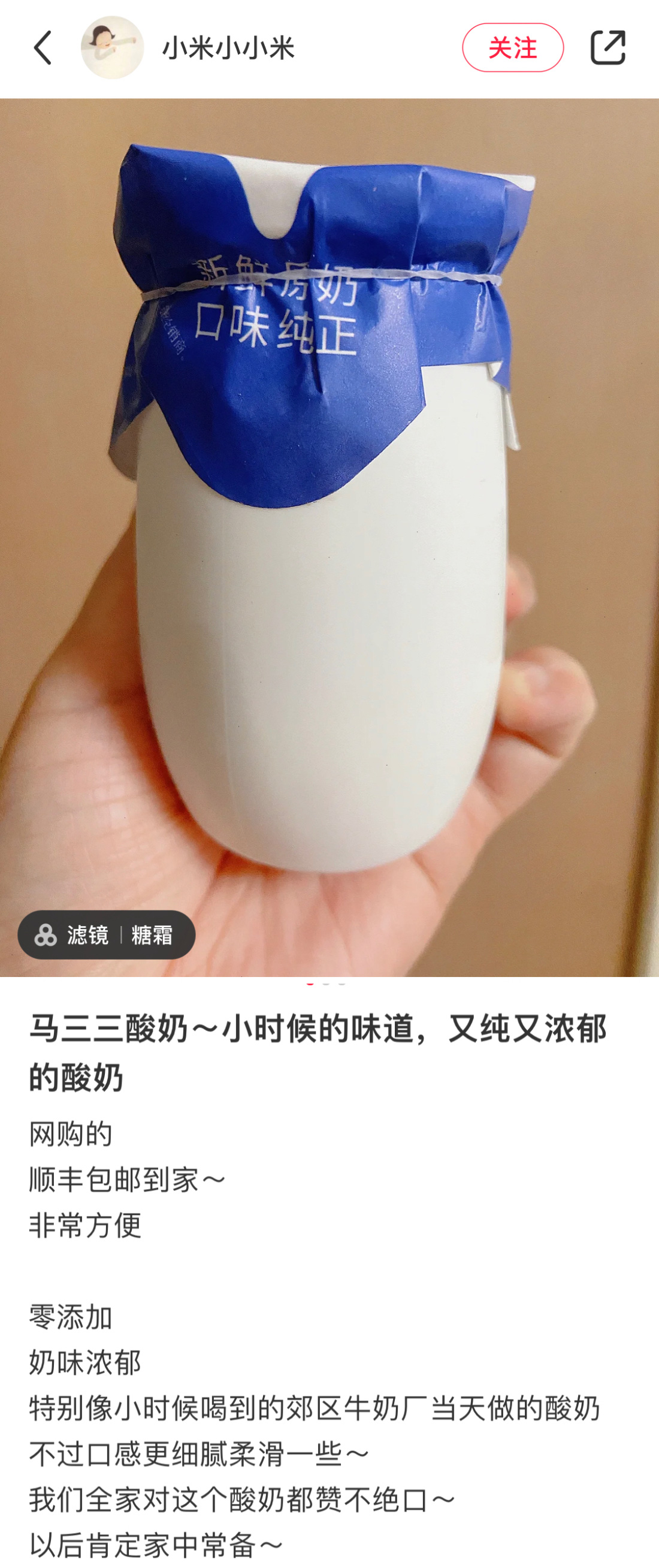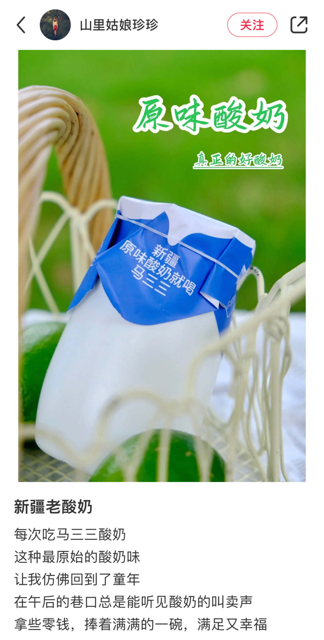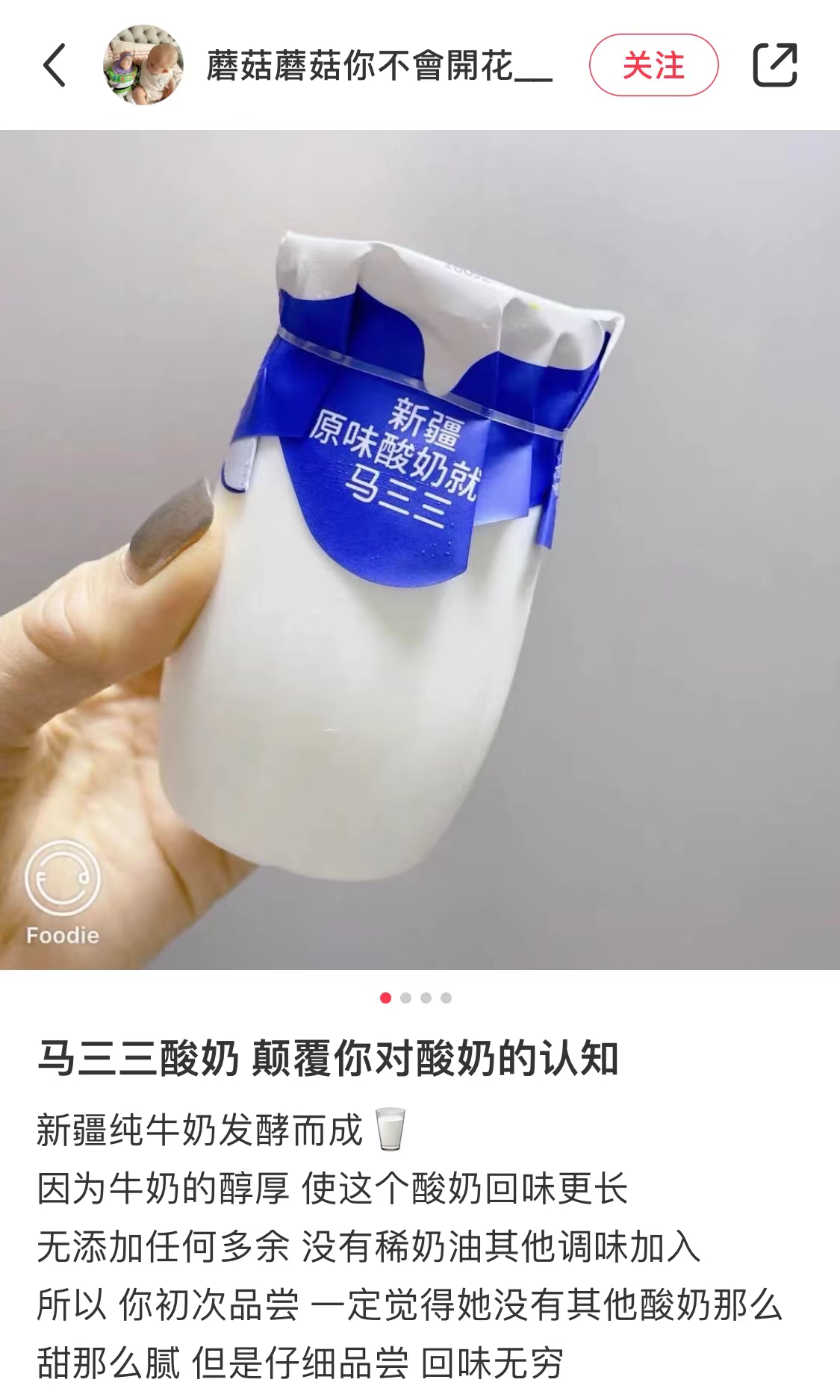 我也是喝过超多品牌的酸奶了,马三三坠突出的特点是:一切都刚刚好,没有添加剂带来的虚假浓稠感,不会过于甜腻,只有香浓天然的奶香,是纯纯的酸奶味道,是来自新疆净土的好酸奶啊!