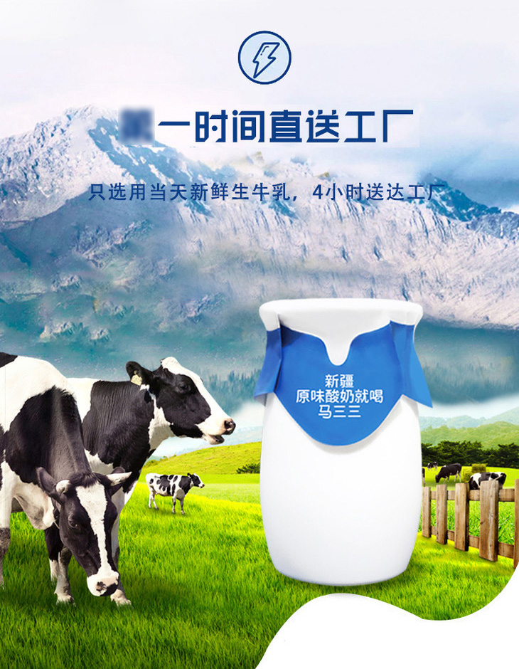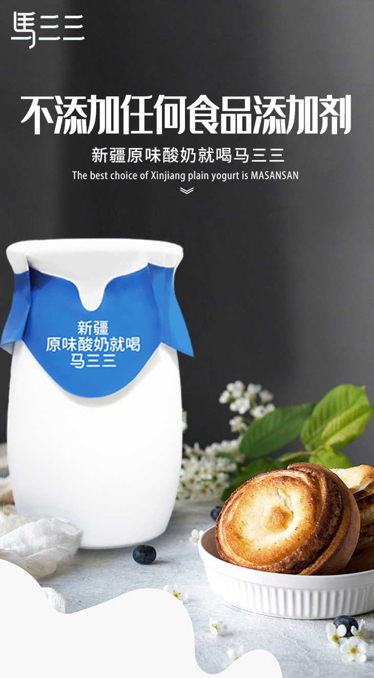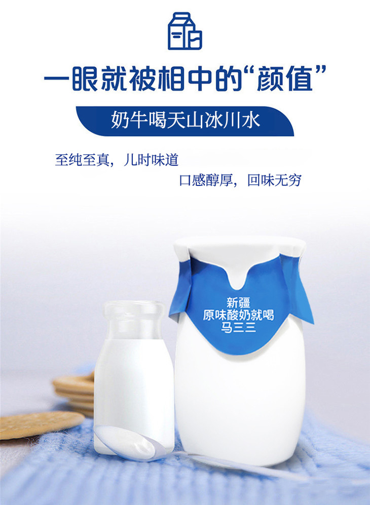 马三三是来自新疆昌吉的酸奶品牌,据说创始人是喝爷爷亲手做的酸奶长大的,小时候爷爷还经常把酸奶拿到街口上去卖,十里八乡的人都爱喝,为了将爷爷手作的味道传承下来,马三三酸奶坚持传统发酵方法,配料只有:鲜牛奶、乳酸菌、白砂糖。其中鲜牛奶的奶源来自纯净的新疆天山大草滩天然有机牧场,这块被天山雪水滋润的牧草、纯净清甜的空气、隔离化学污染、以及精心培育的荷斯坦奶牛,使产出的牛乳更加优质醇香,具有多种微量元素和较高的蛋白质。