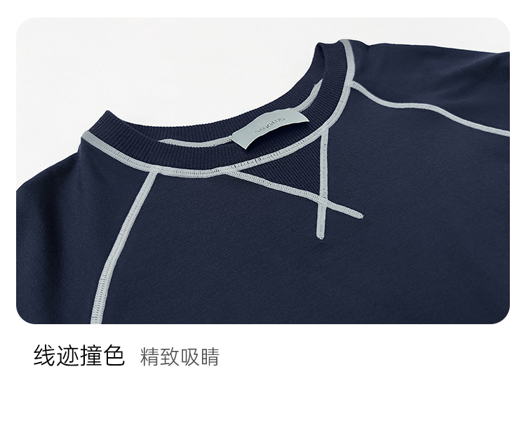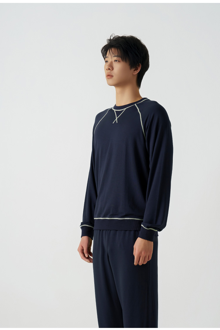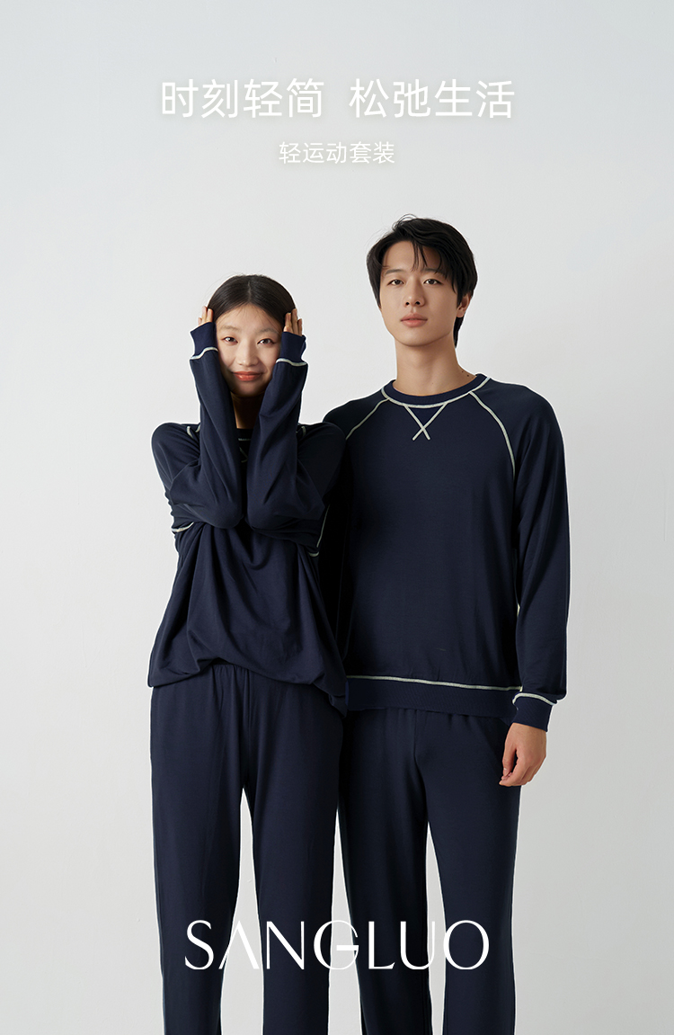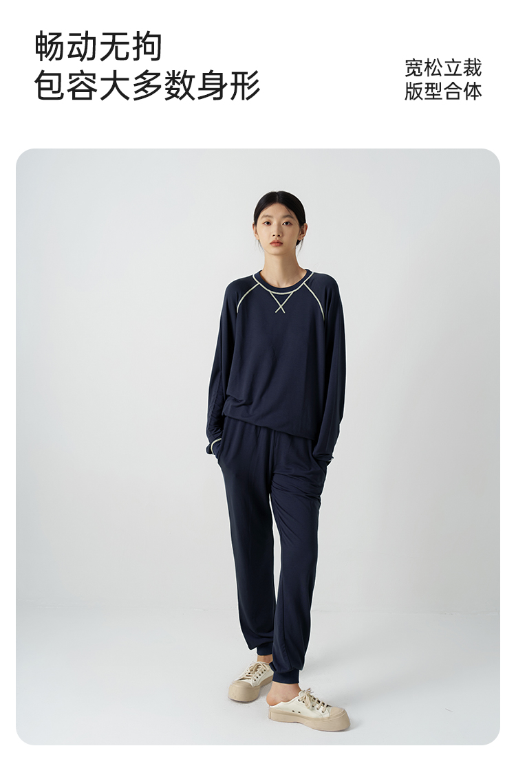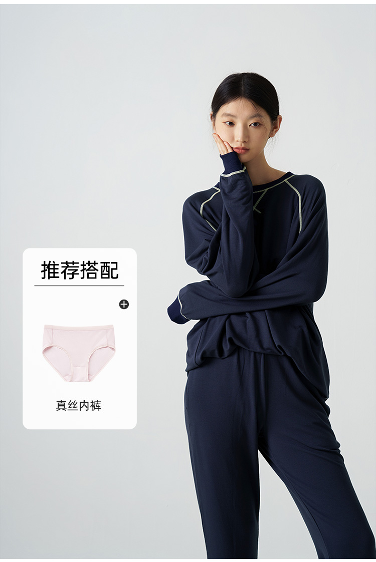 轻运动』桑罗藏青色长袖睡衣套装宽松休闲透气情侣男女同款家居服可外穿