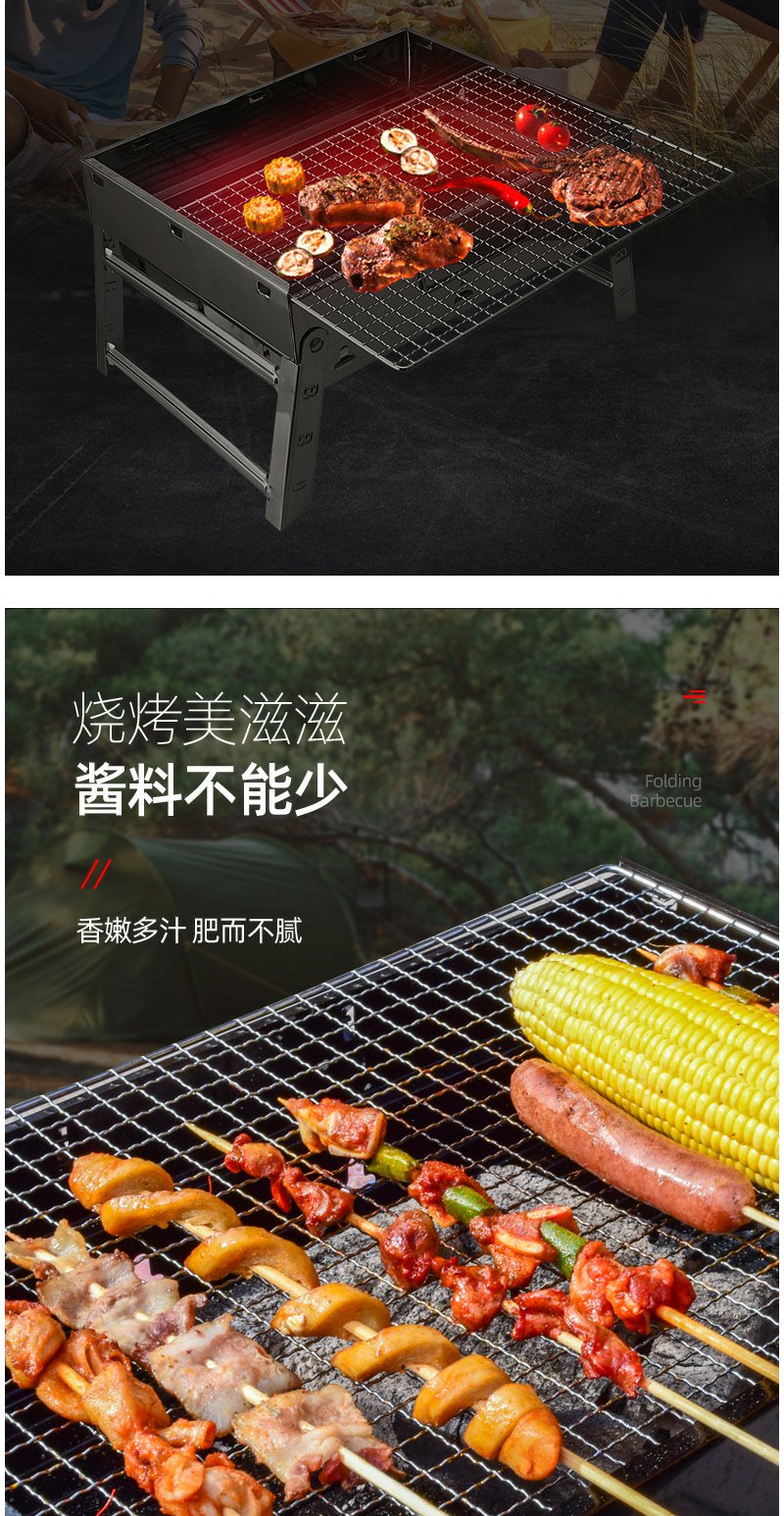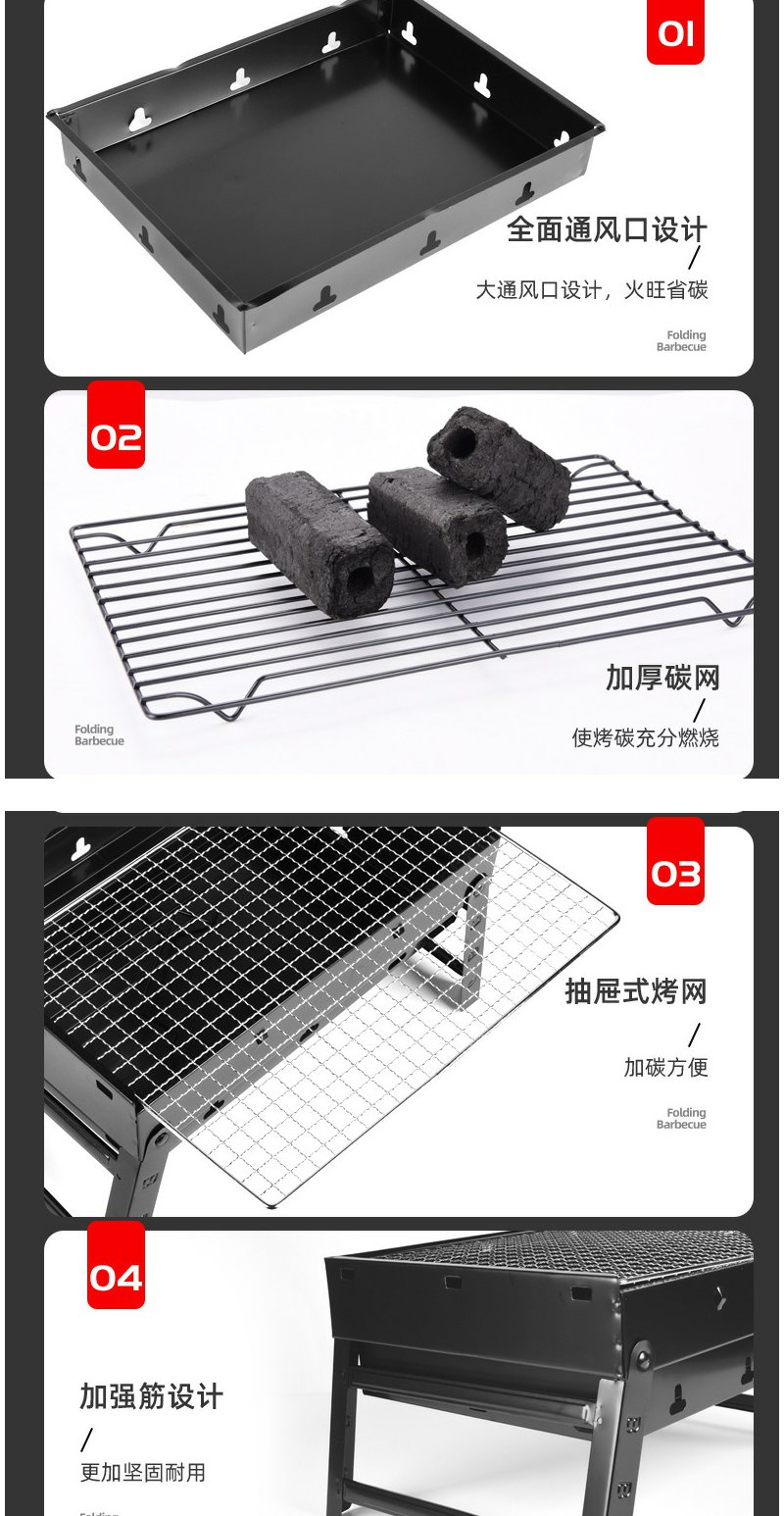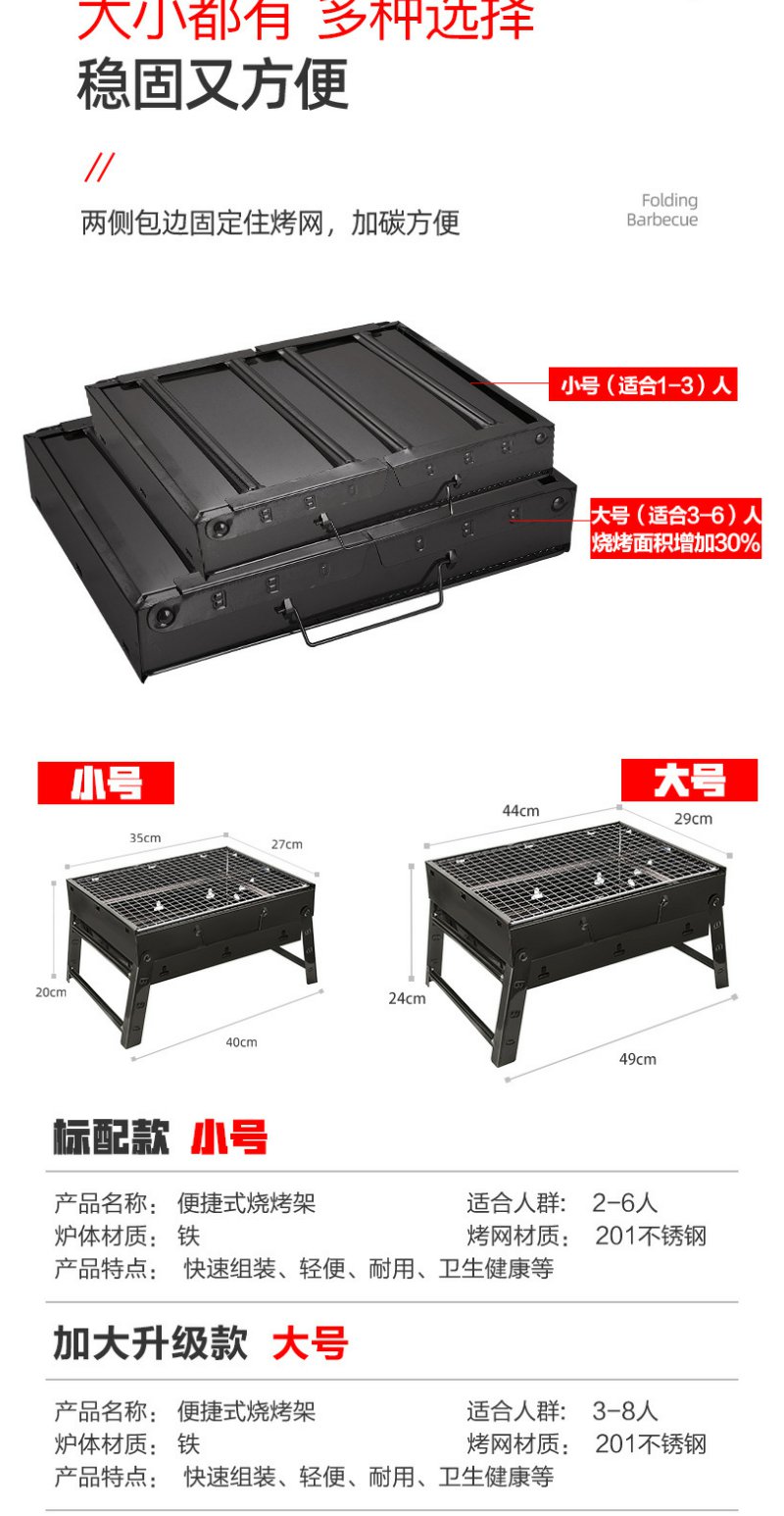 户外烧烤炉烧烤架家用木炭3-5人便携加厚商用烤肉炉子折叠小黑刚