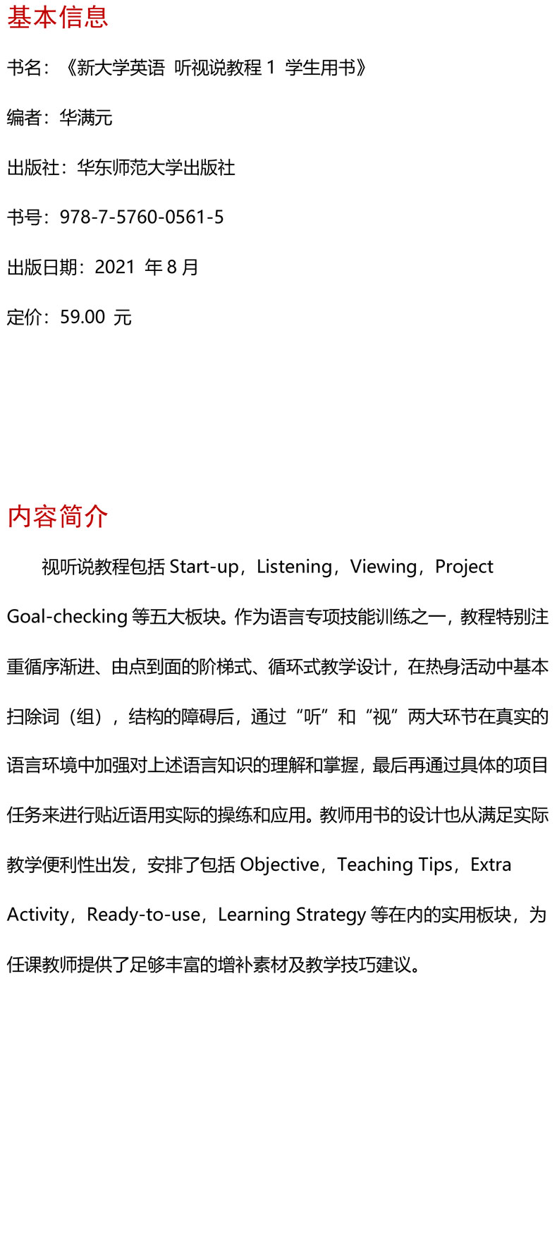 新大学英语·听视说教程1 华满元主编 大学教材 商品缩略图0 新大学英语·听视说教程1 华满元主编 大学教材 商品缩略图1 新大学英语·听视说教程1 华满元主编 大学教材 商品缩略图2 新大学英语·听视说教程1 华满元主编 大学教材 商品缩略图3