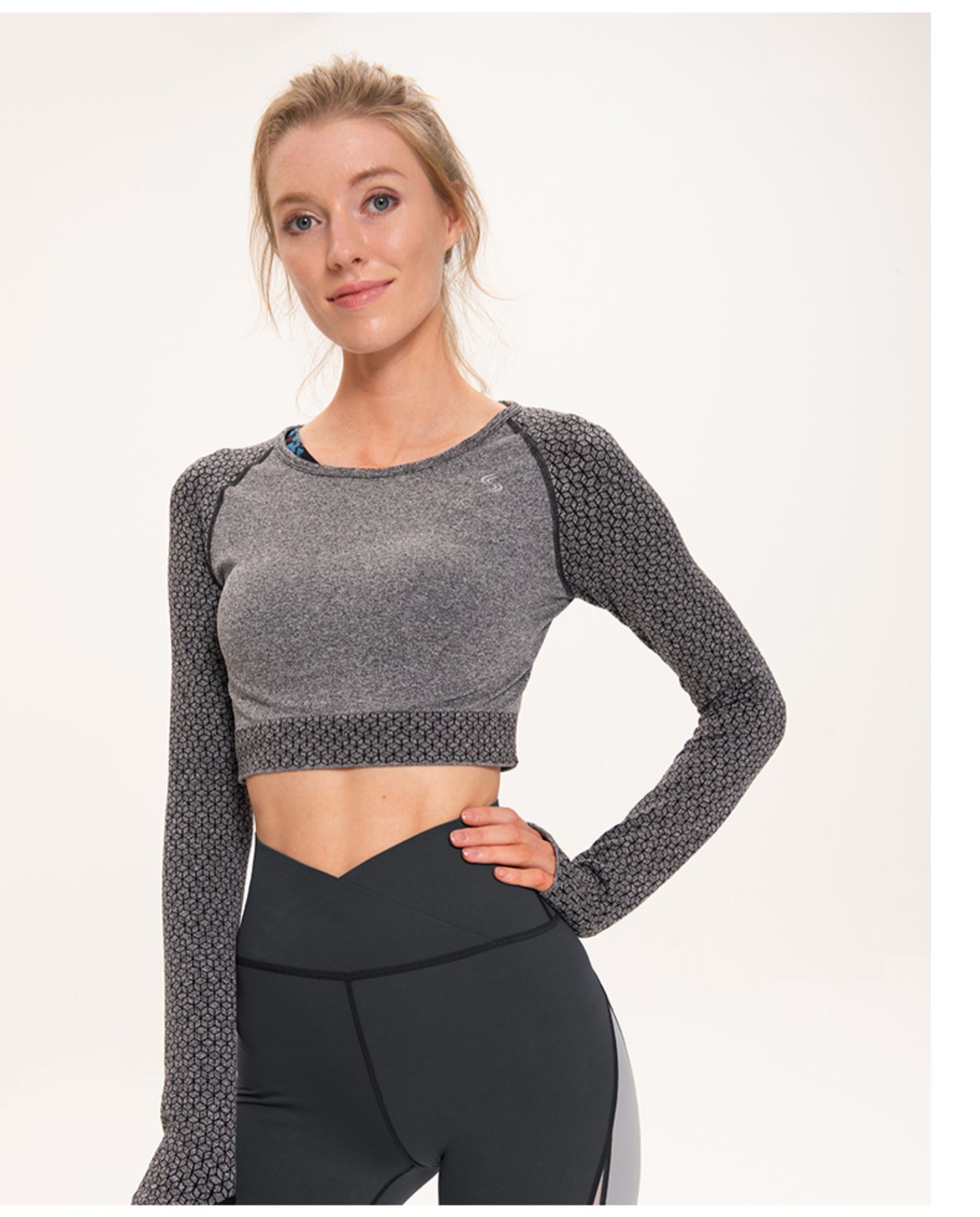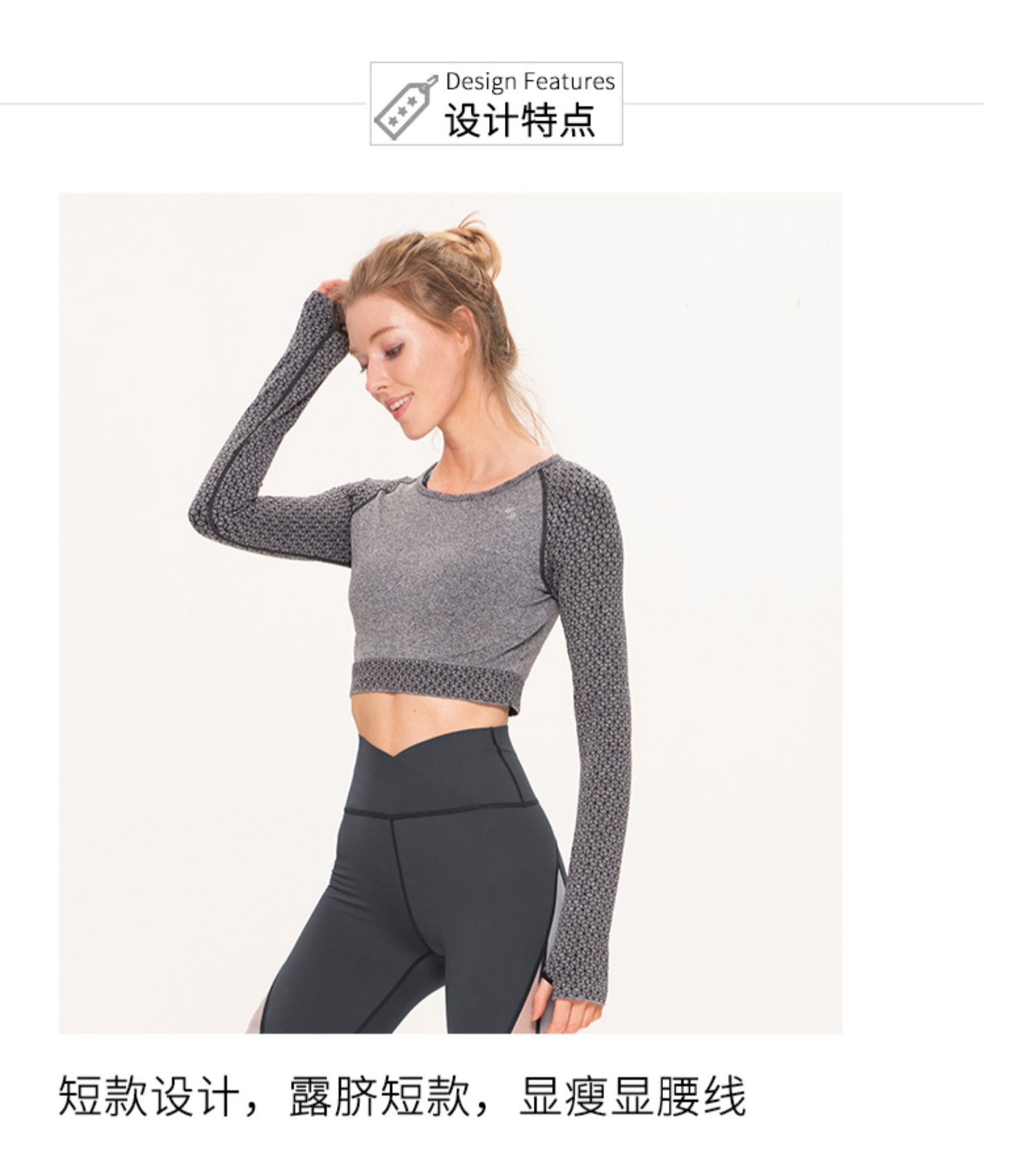 slenddy Mandy秋冬性感露脐紧身瑜伽长袖T恤女运动快干上衣S3201