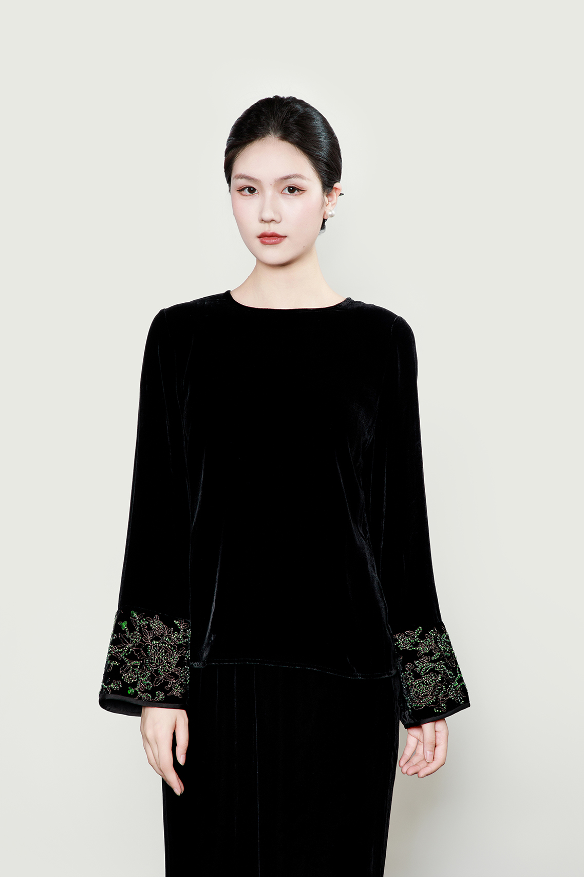 盛唐婧| 新中式真丝绒重工钉珠上衣