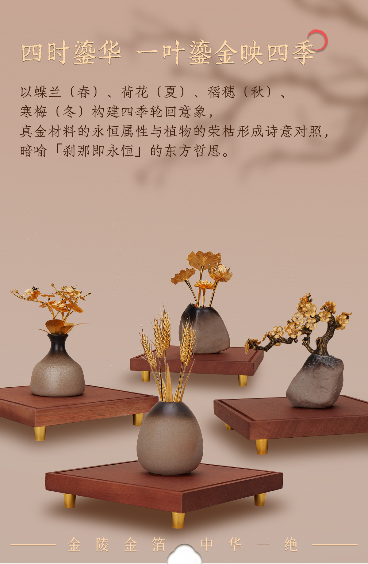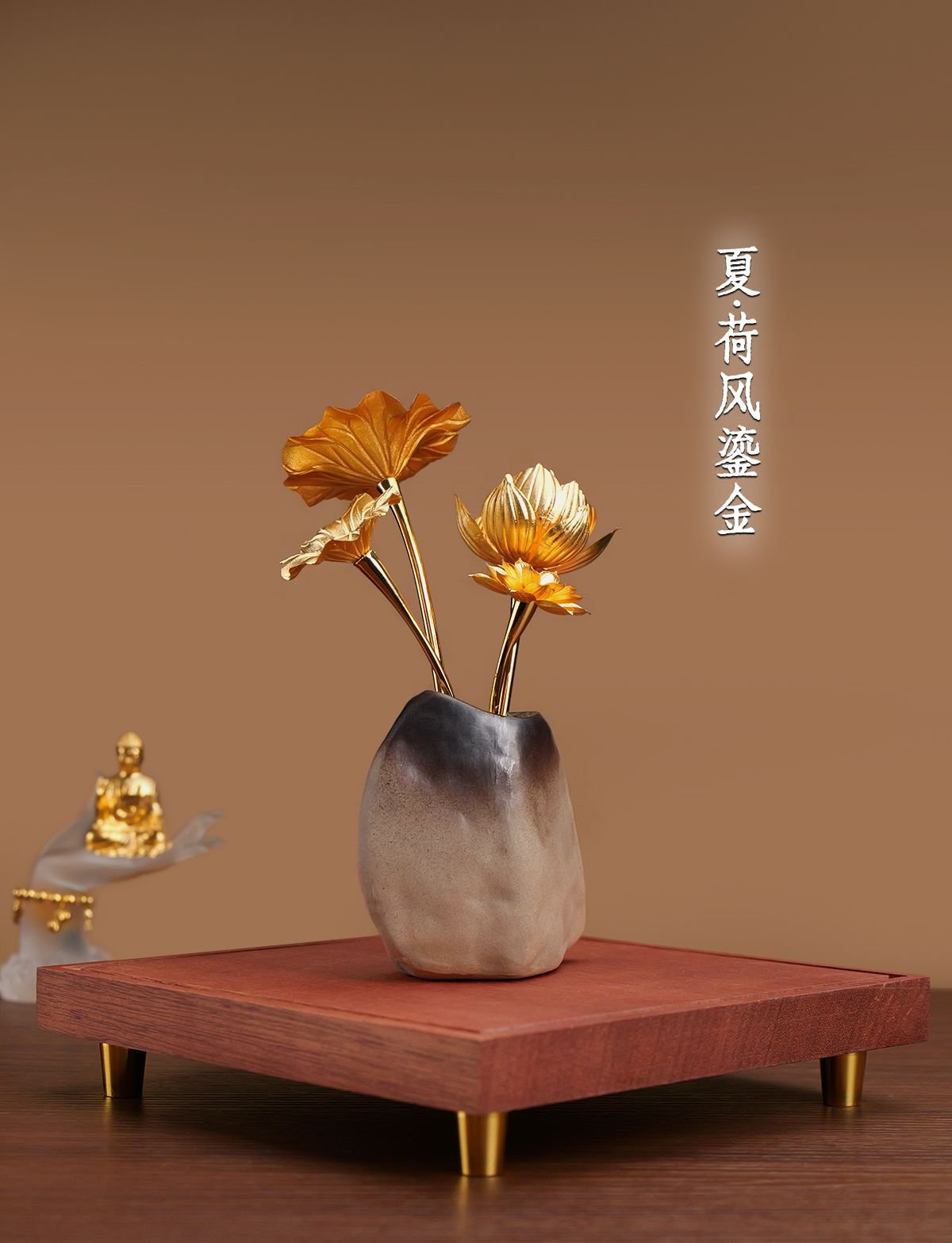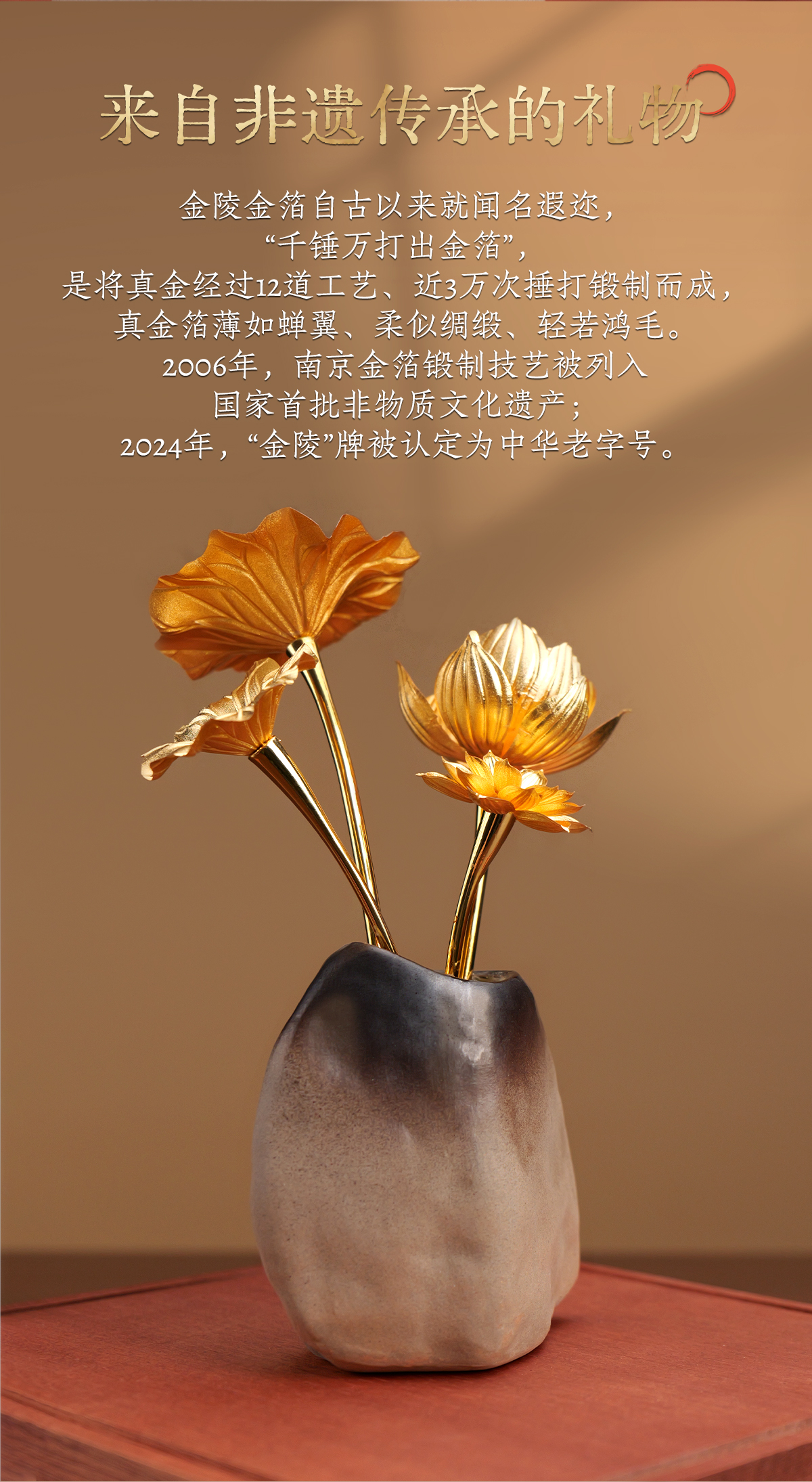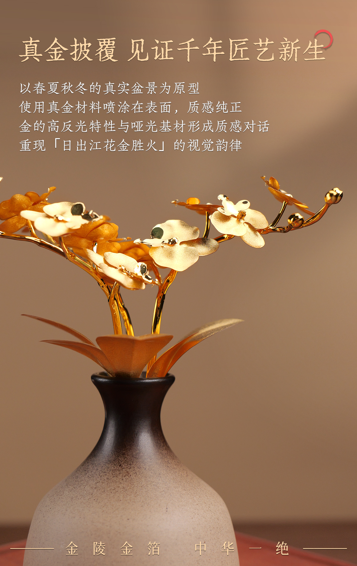 金陵金箔橱窗摆件玄关柜新中式客厅书房复古茶室桌面装饰摆件花瓶