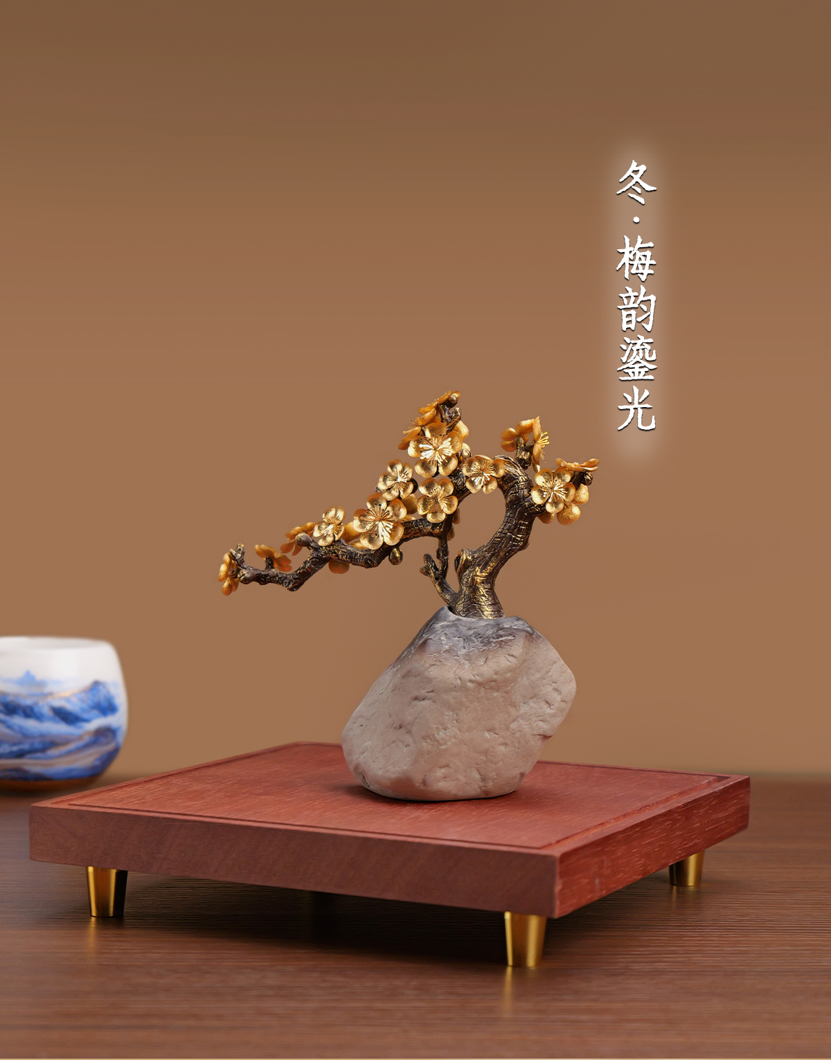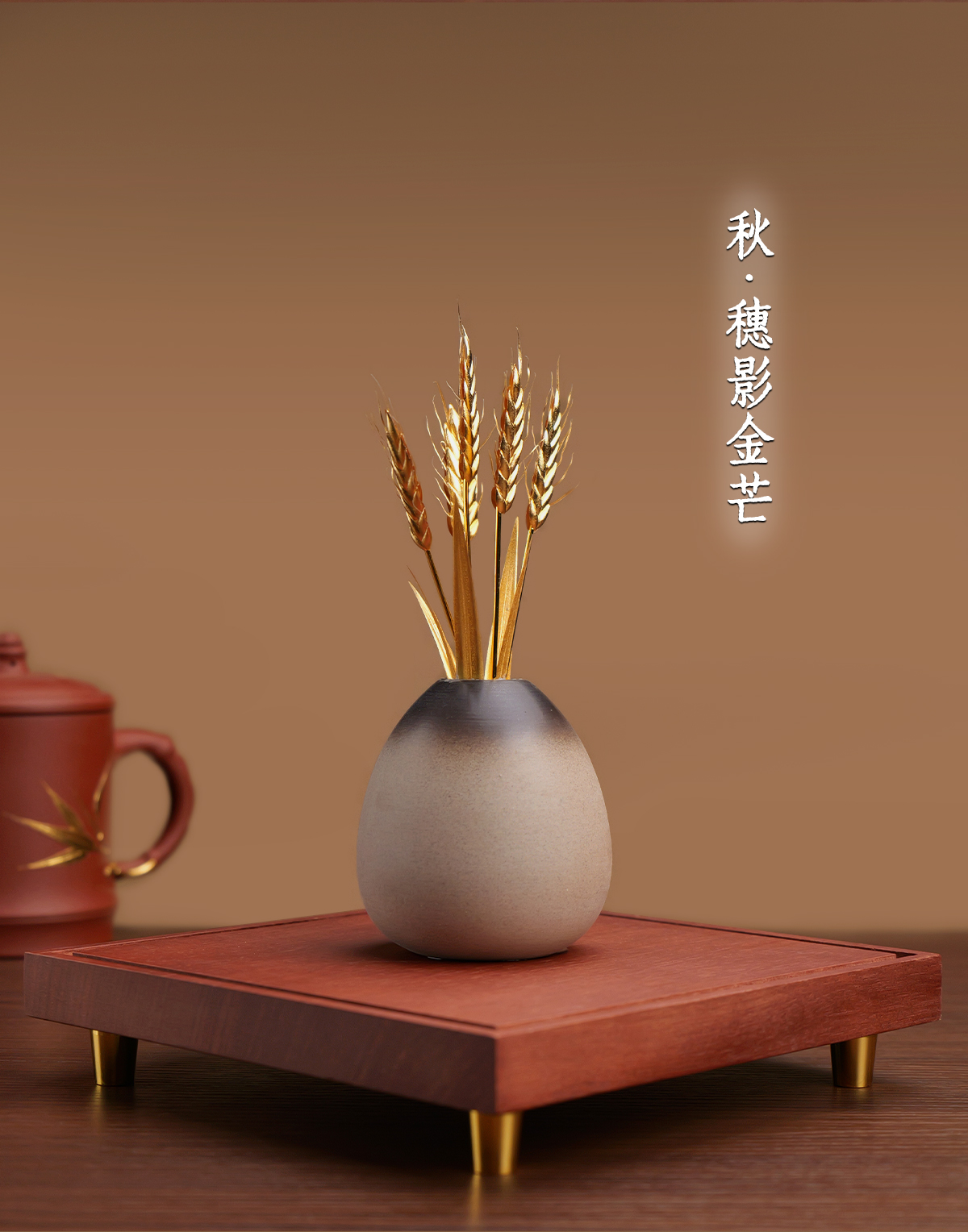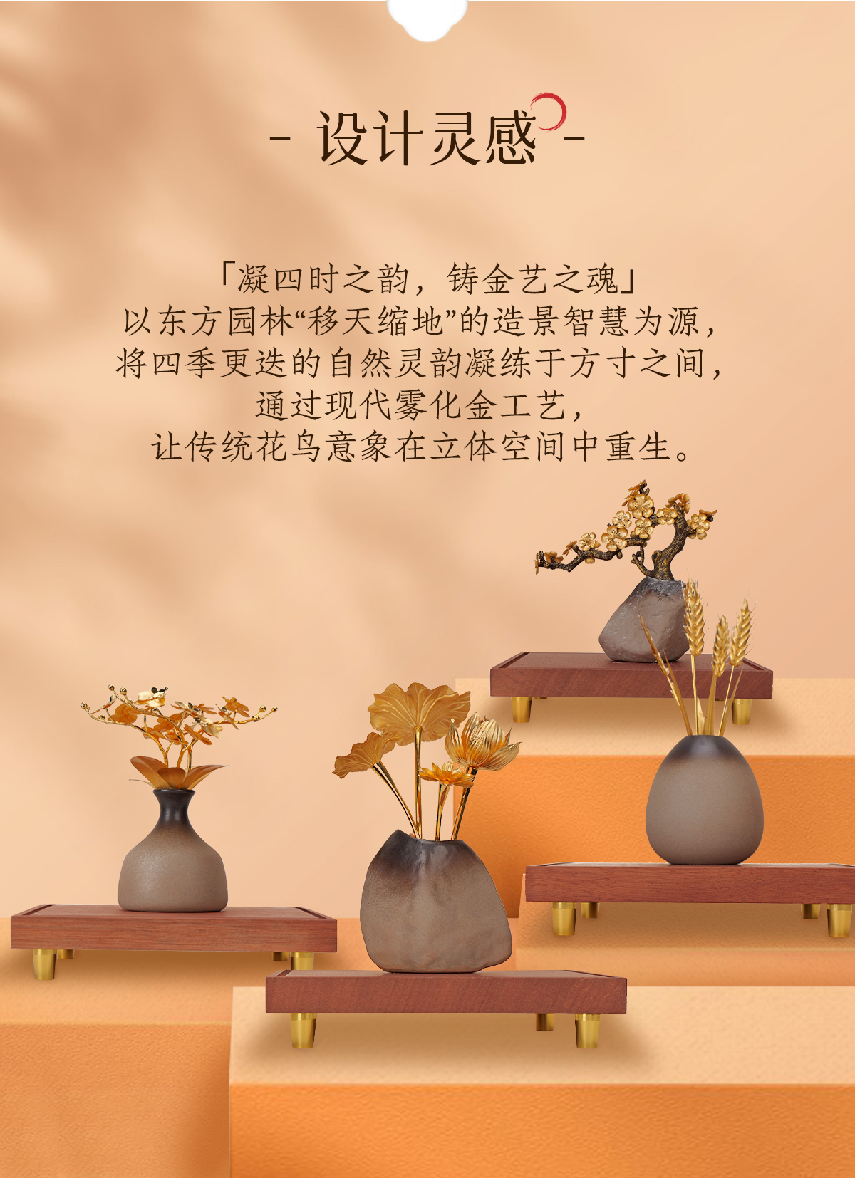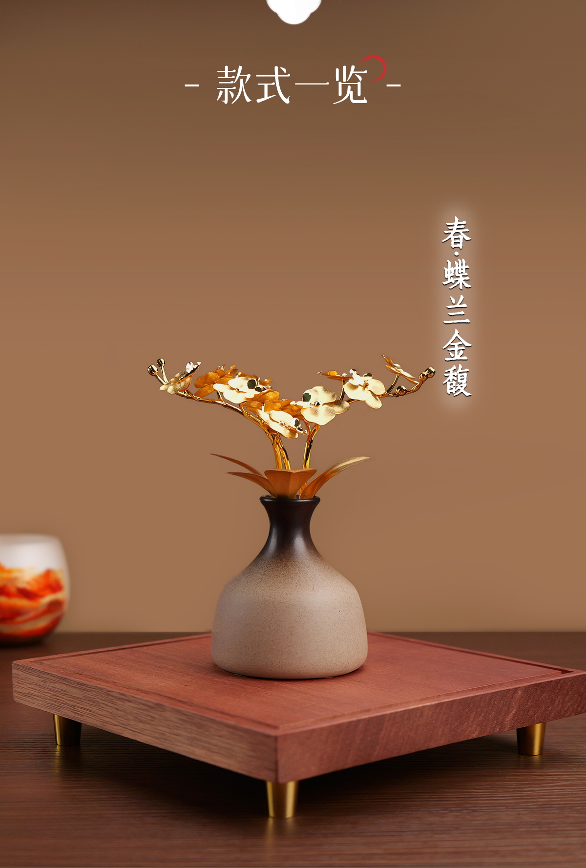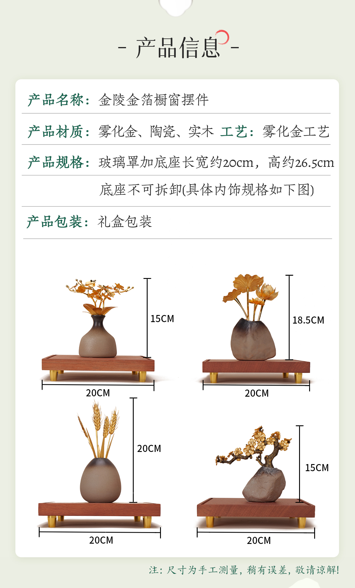 金陵金箔橱窗摆件玄关柜新中式客厅书房复古茶室桌面装饰摆件花瓶