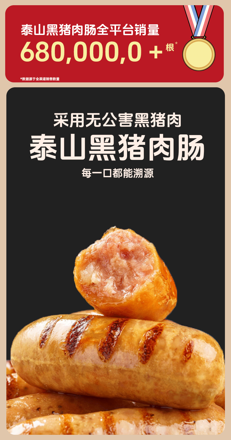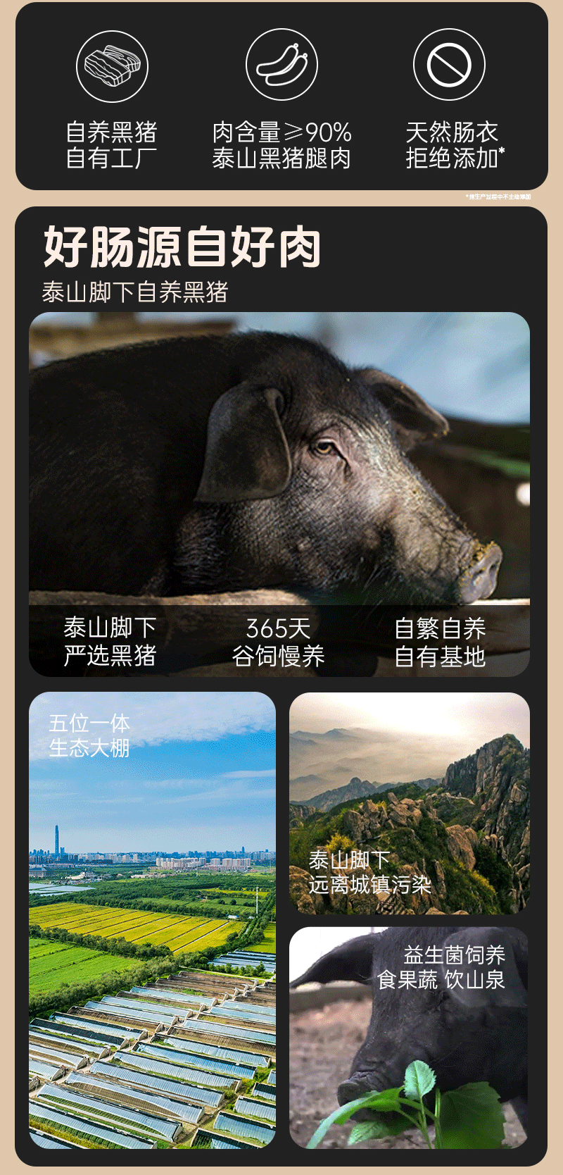 东方x选同款 巴夫巴夫泰山黑猪肉肠 0防腐0色素0淀粉0亚硝 孕妇小孩儿都可以吃的健康肉肠