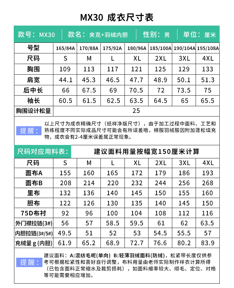 裁缝学苑MX30 男装羽绒内胆短款毛呢夹克纸样外套男士打版裁剪图