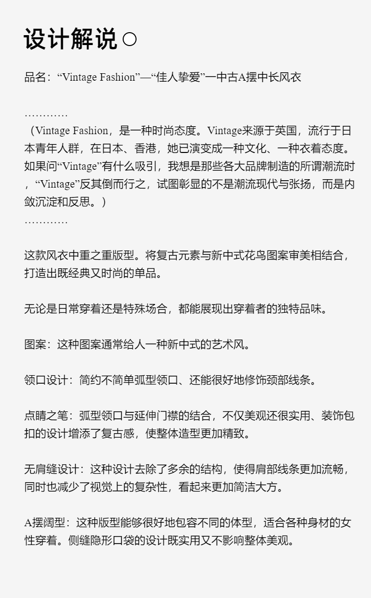 定制一“Vintage Fashion”—“佳人挚爱”一中古A摆中长风衣 2406012