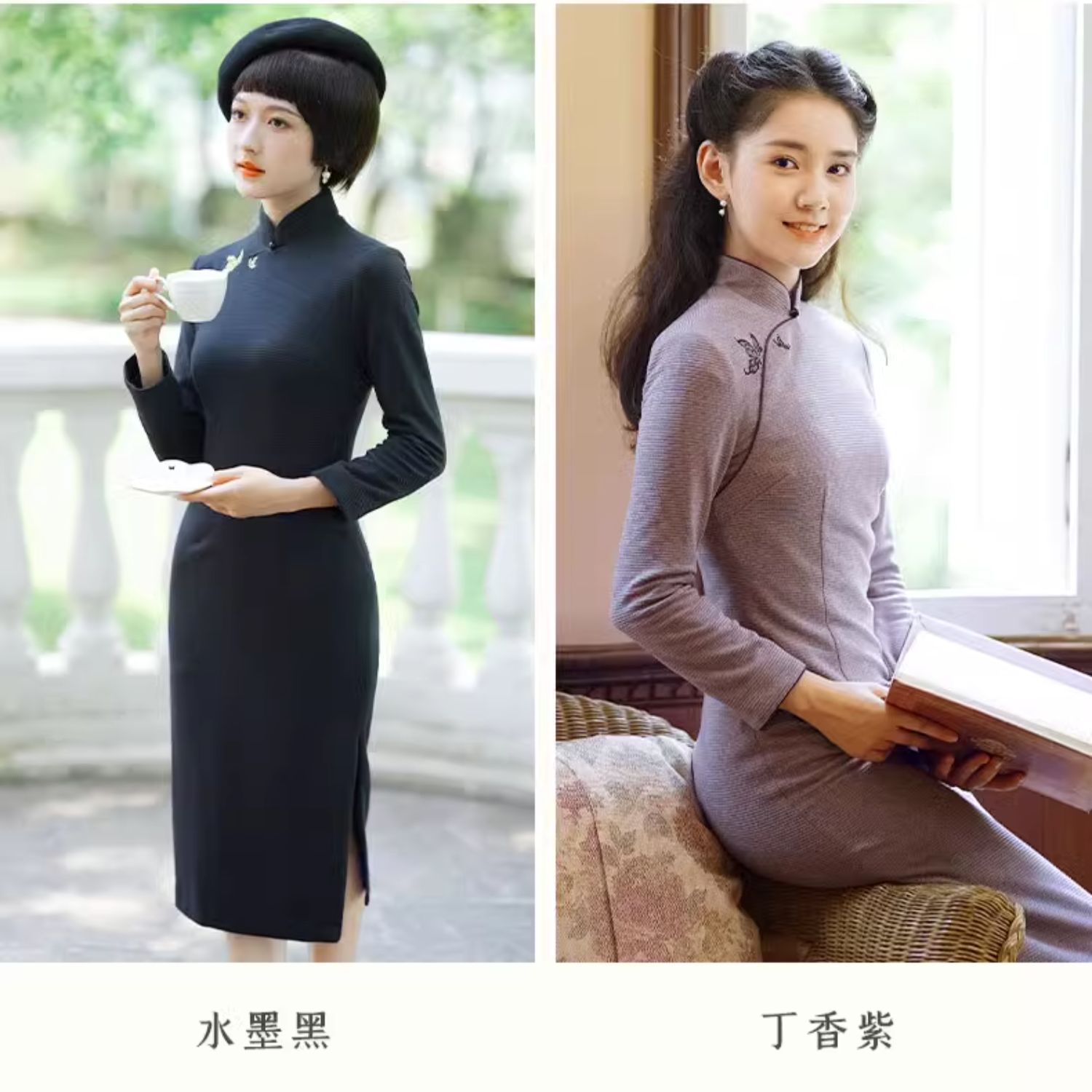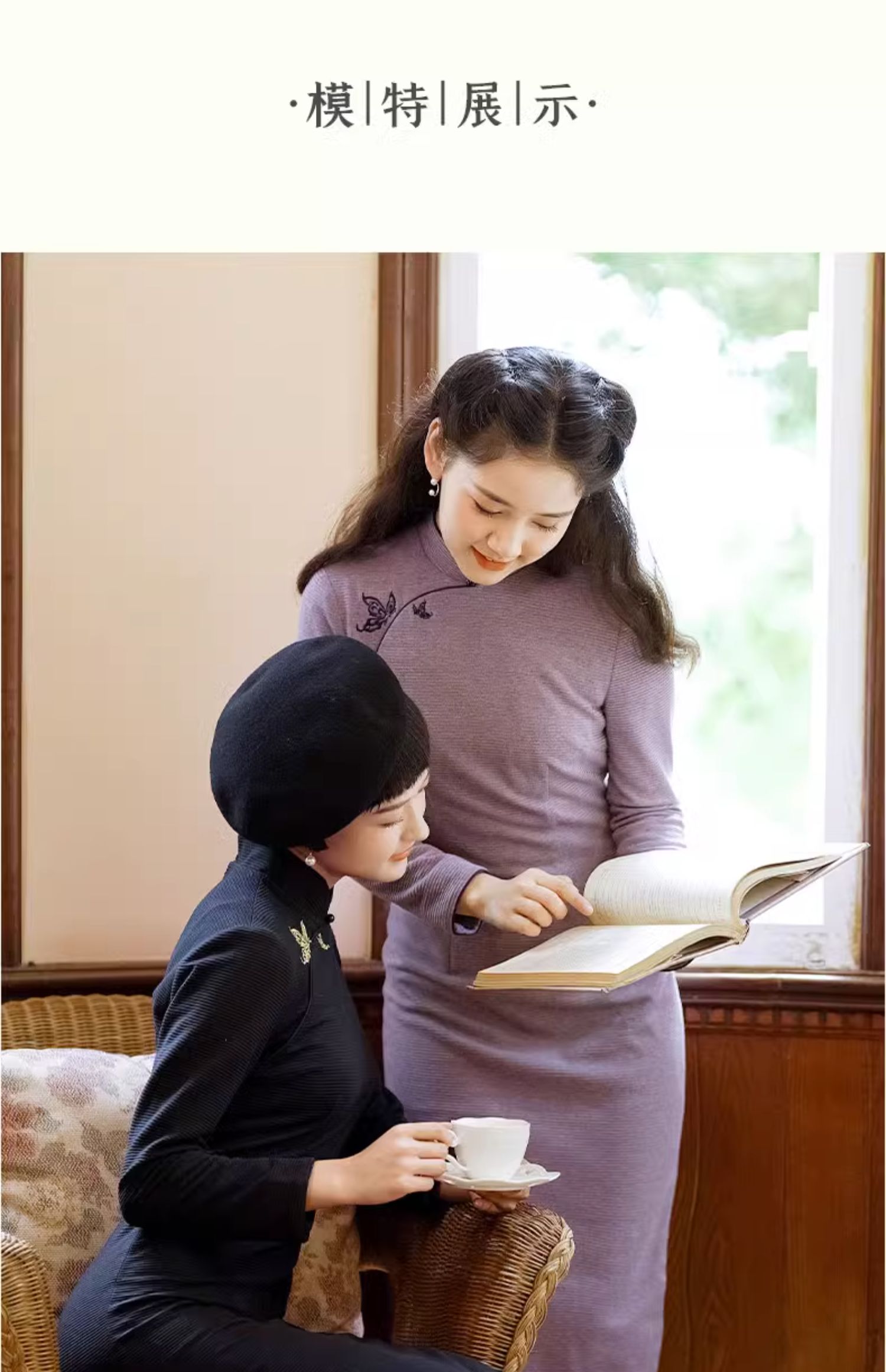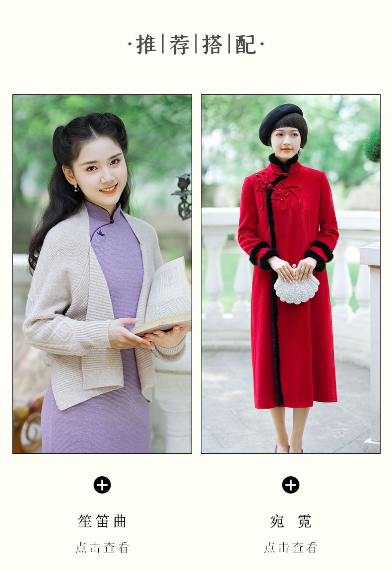 逸红颜 仓灵 2025冬新品羊毛针织呢栩栩如生双飞燕刺绣日常旗袍女