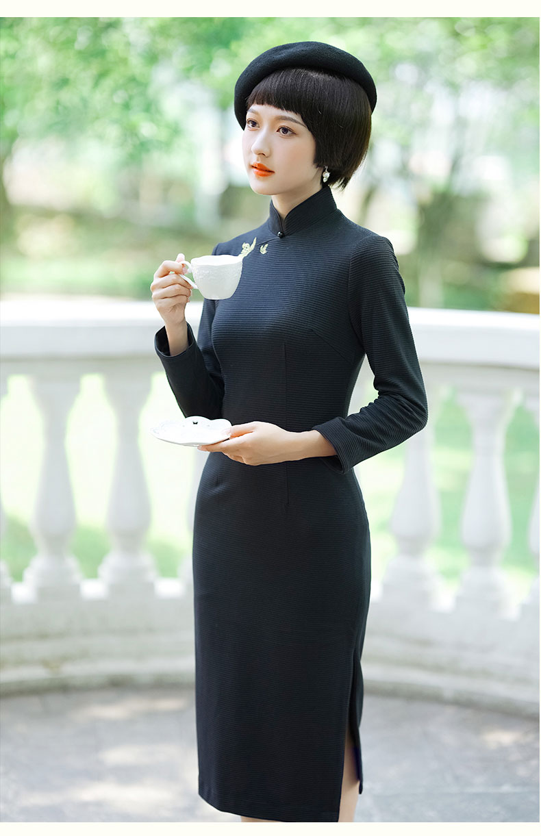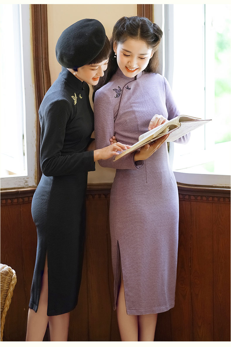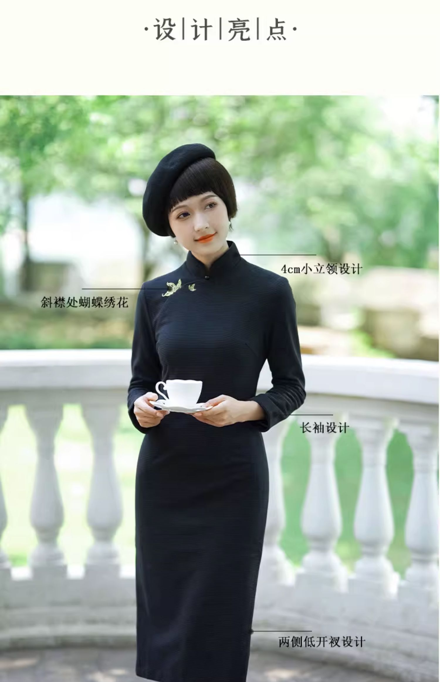 逸红颜 仓灵 2025冬新品羊毛针织呢栩栩如生双飞燕刺绣日常旗袍女