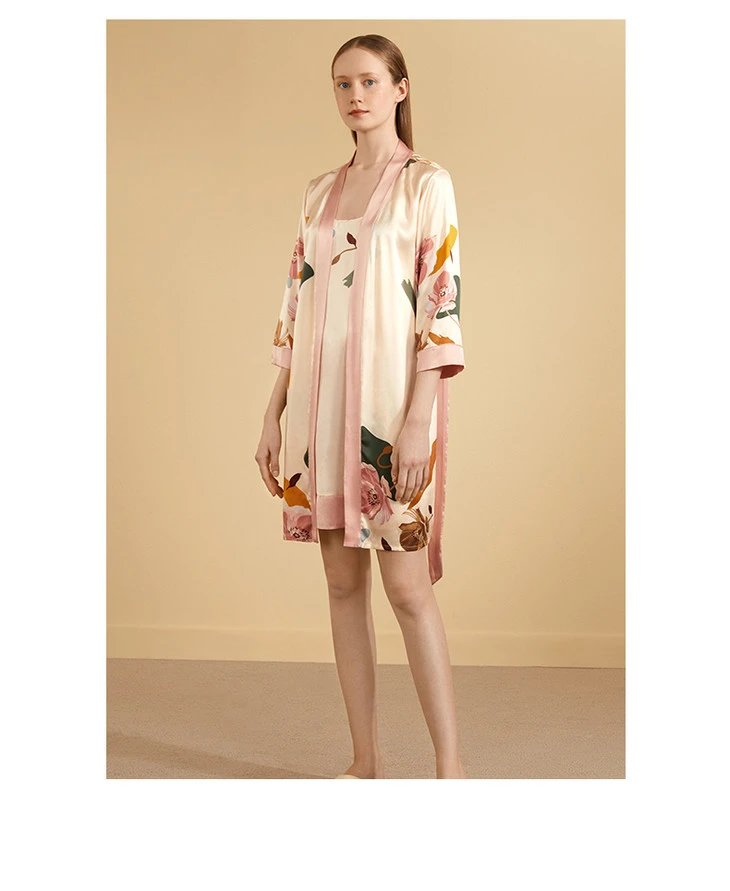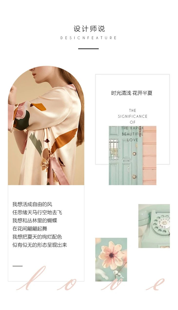 金三塔新品 真丝印花睡袍女100%桑蚕丝可外穿睡衣家居服 YSFAC102