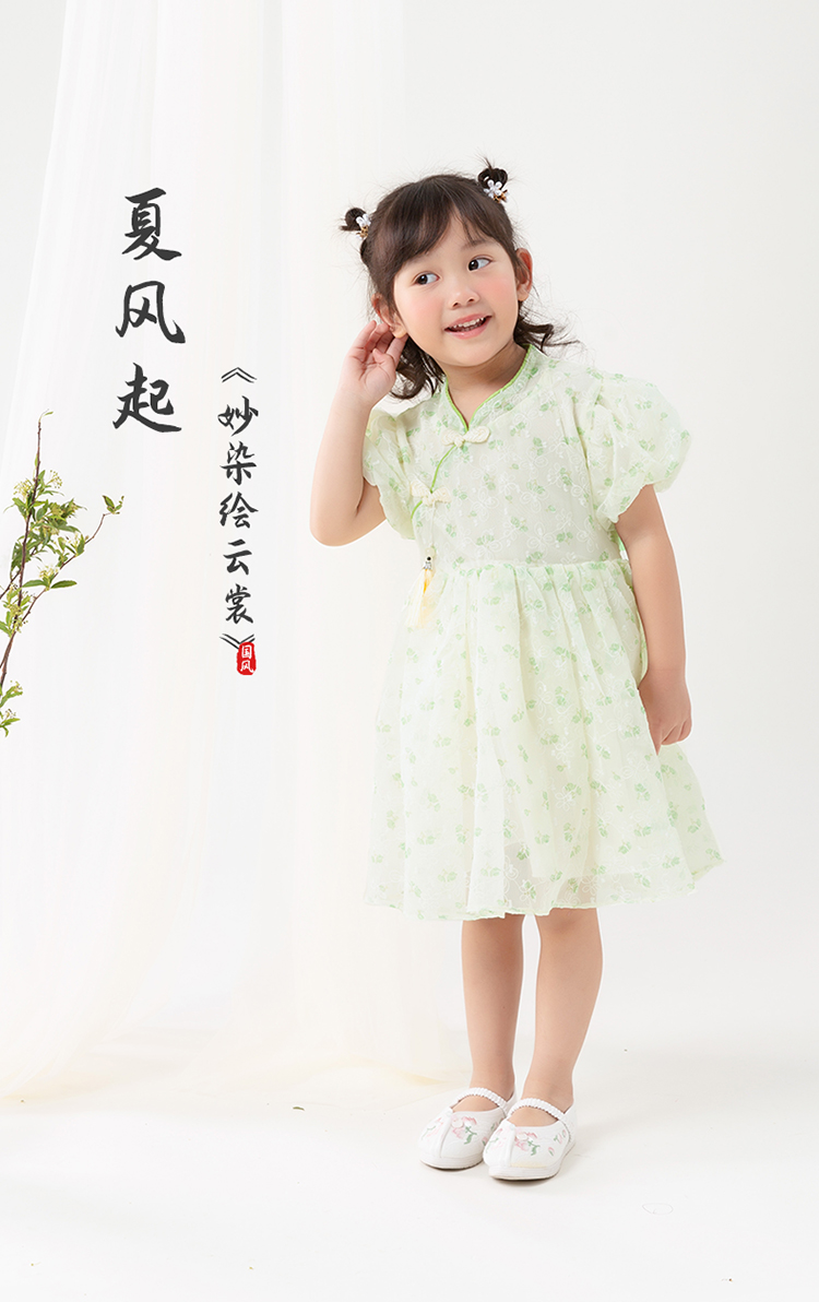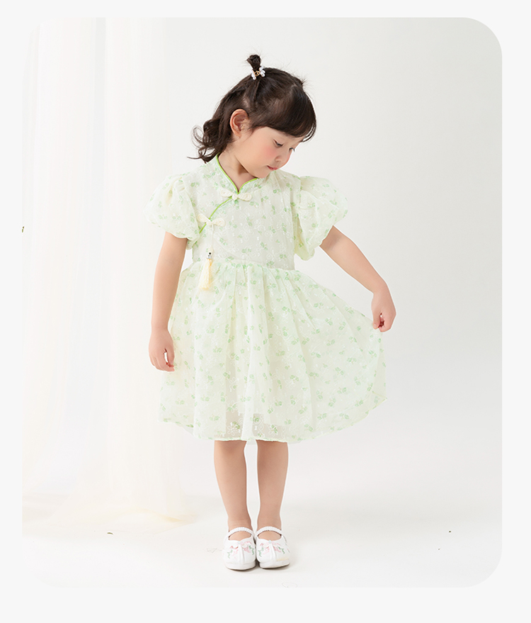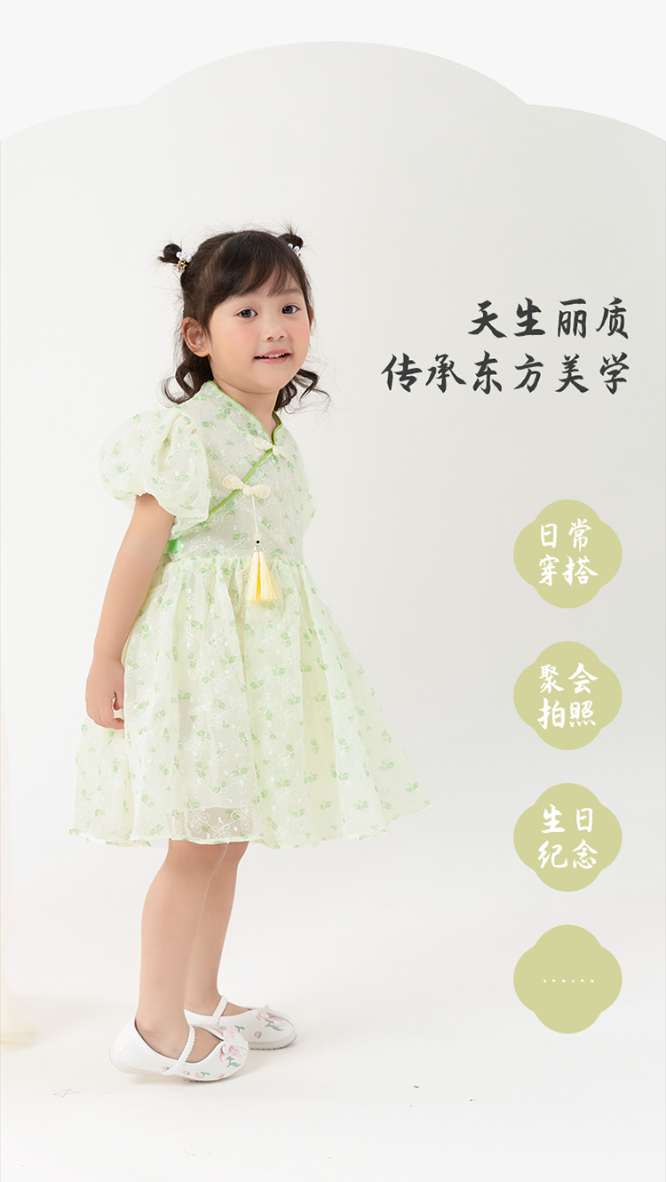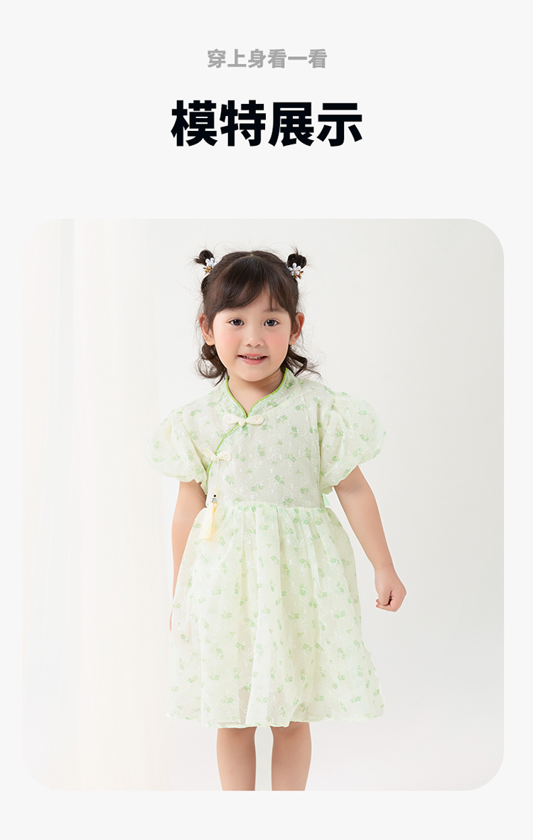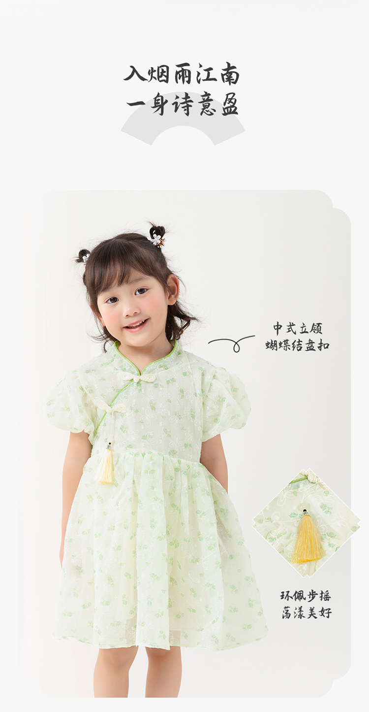 贝贝怡童装儿童女国风连衣裙2024夏新款女宝宝新中式甜美旗袍裙子ZB2DQ003