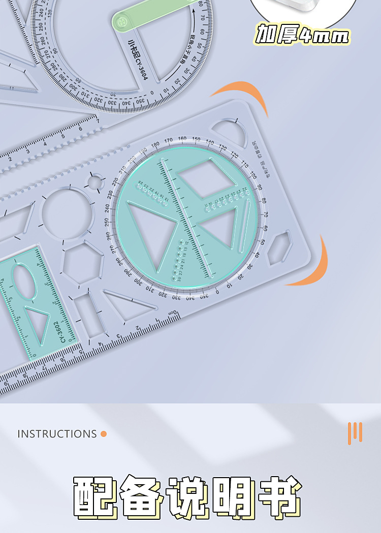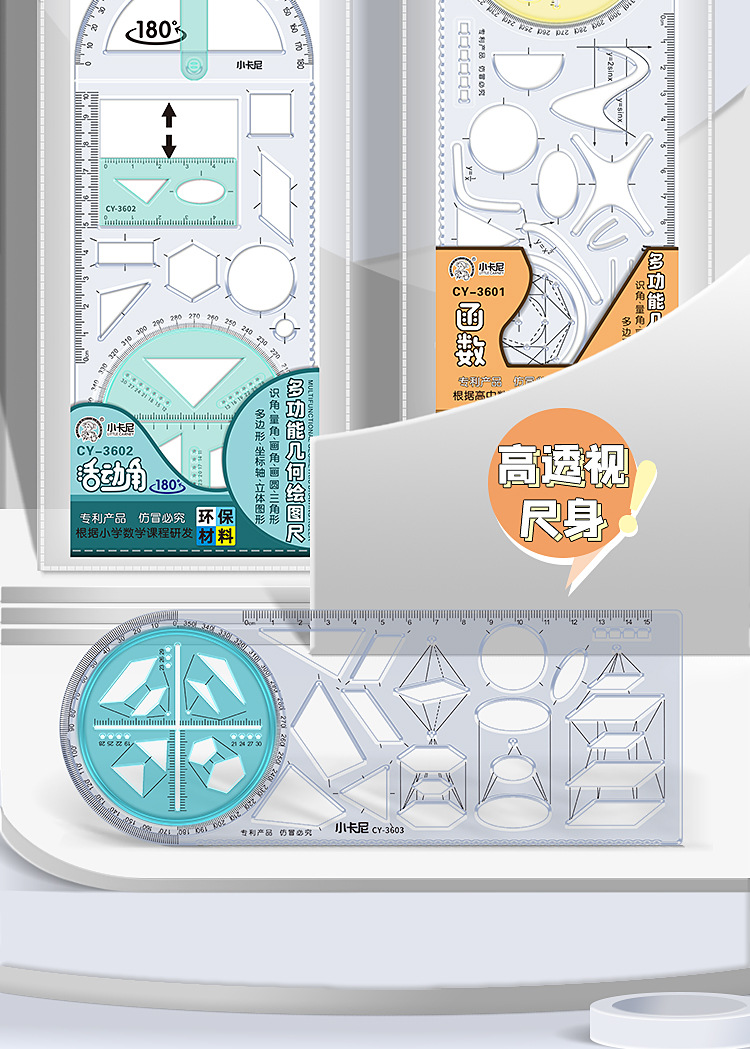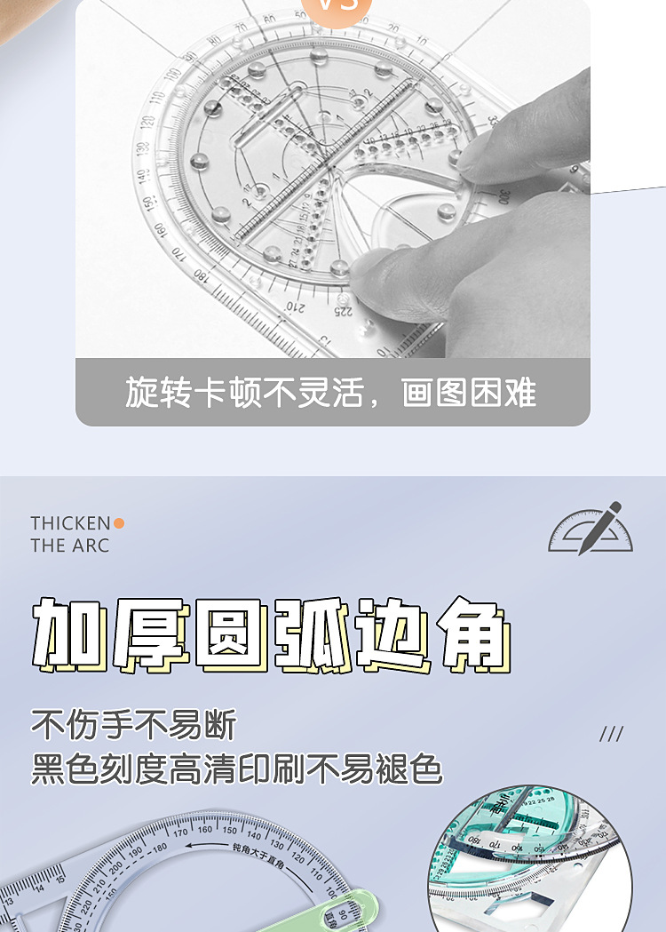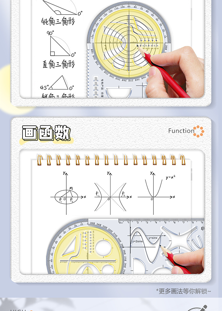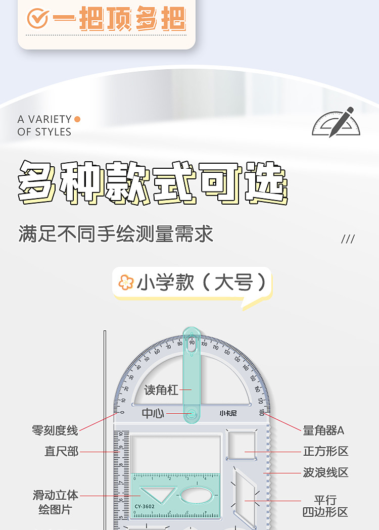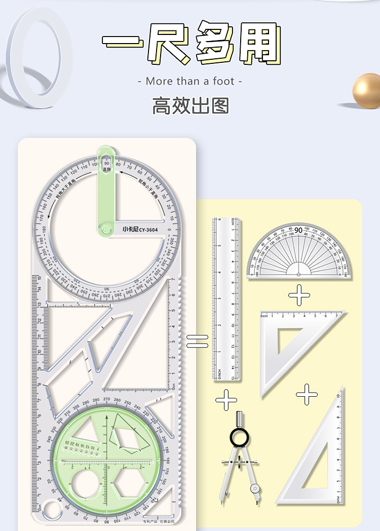 多功能尺子小学生初中高中几何图形数学函数活动角绘图画画万能尺