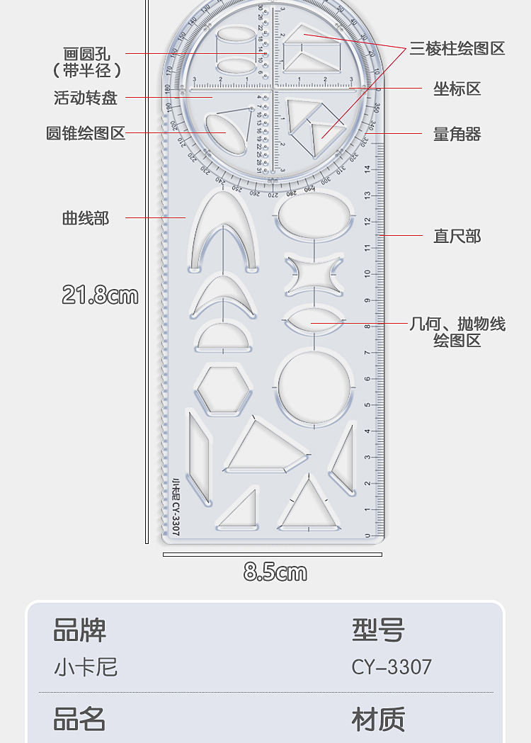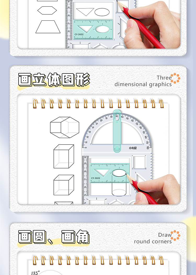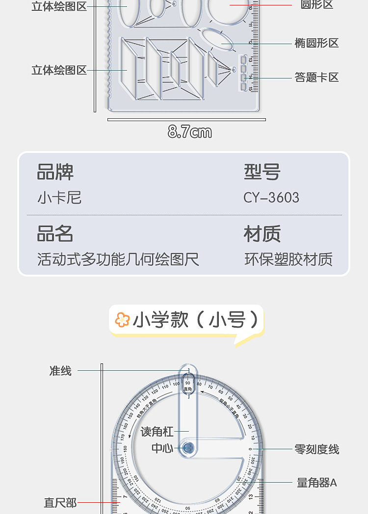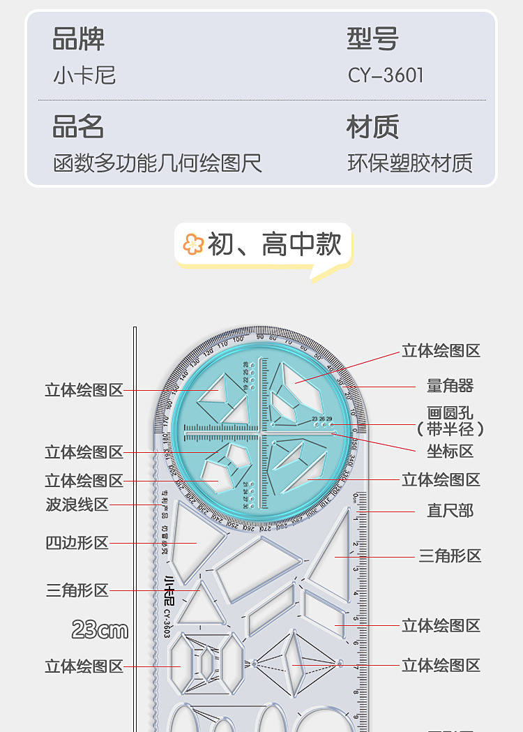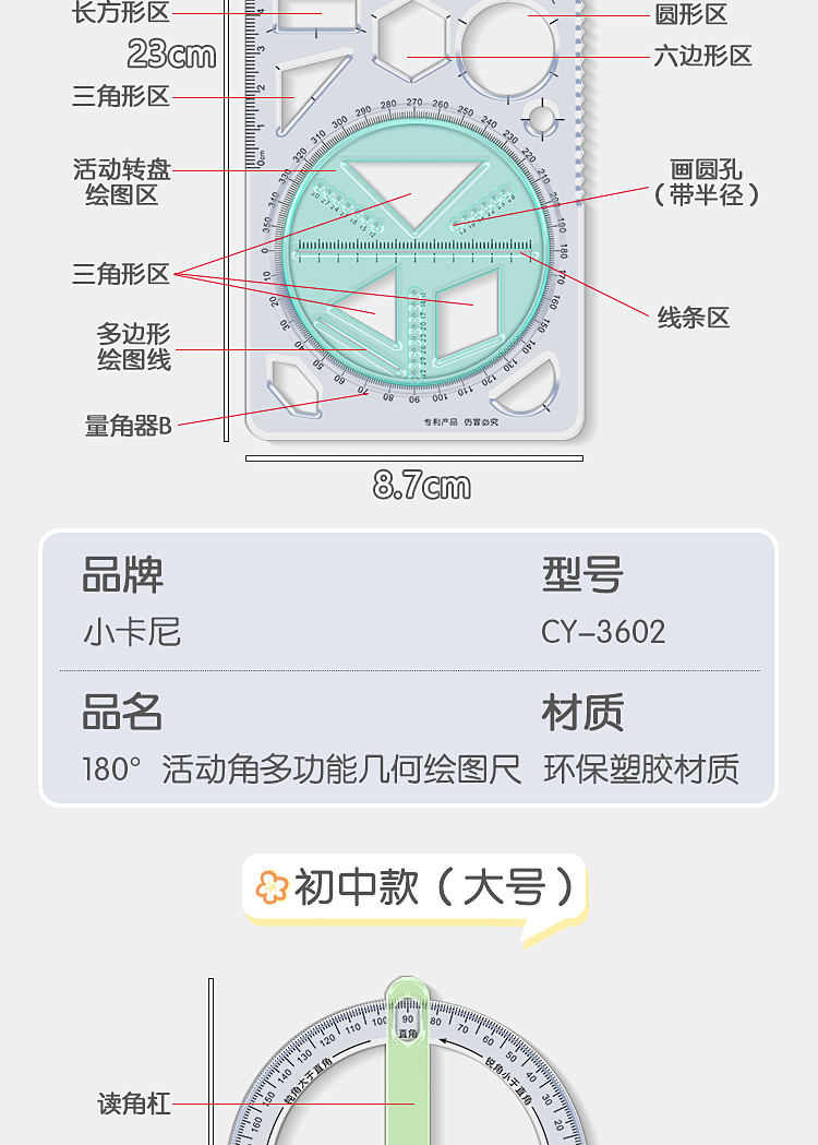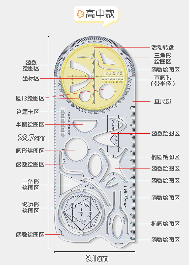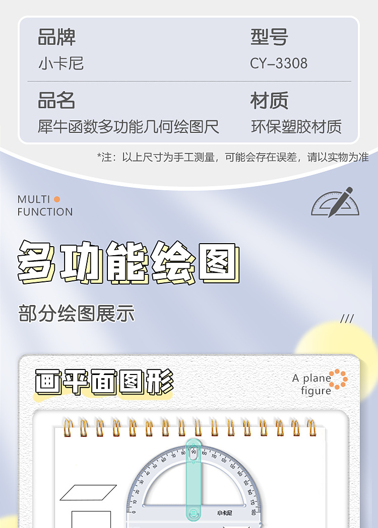 多功能尺子小学生初中高中几何图形数学函数活动角绘图画画万能尺