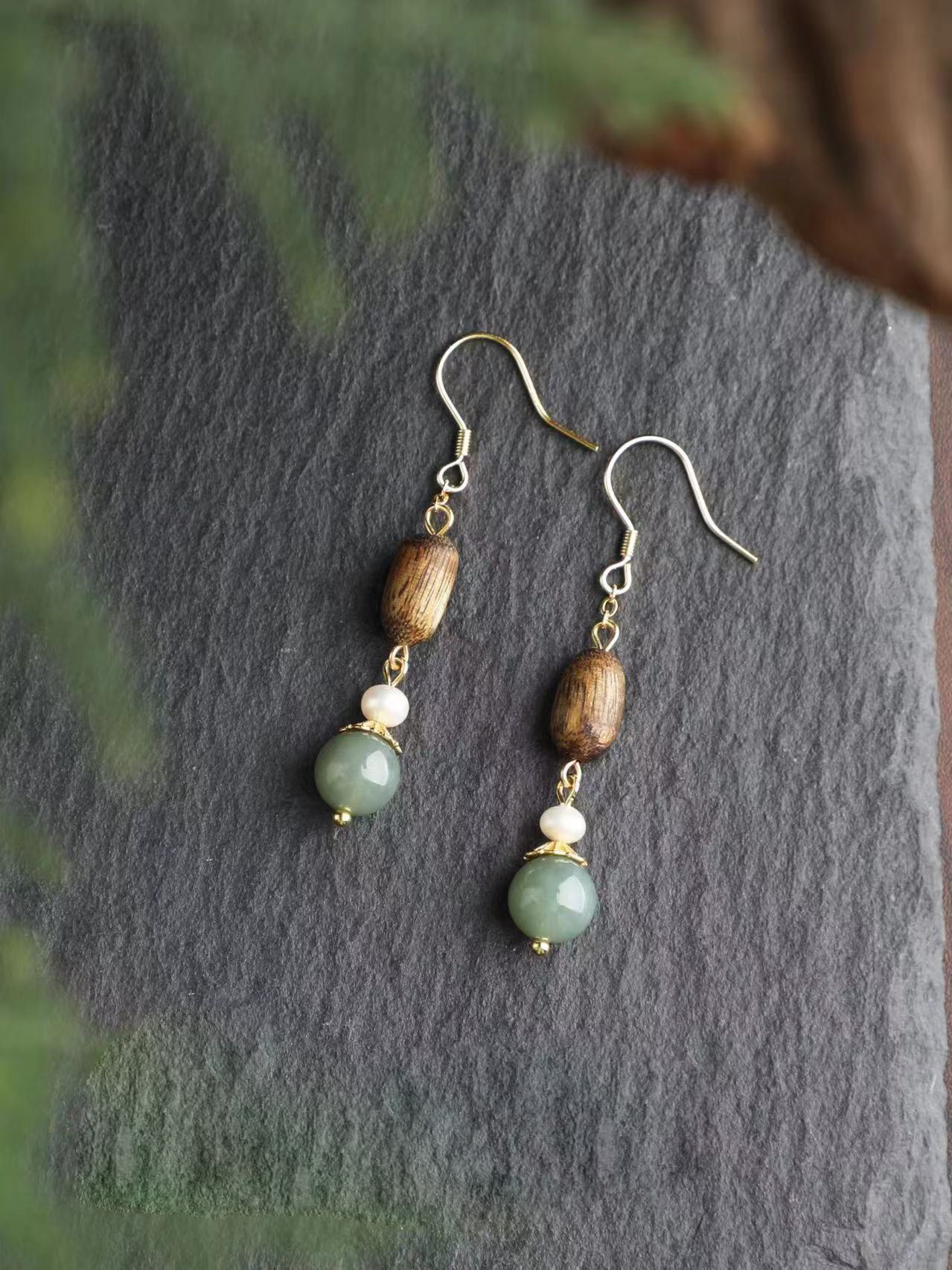 翡翠珍珠桶珠耳环