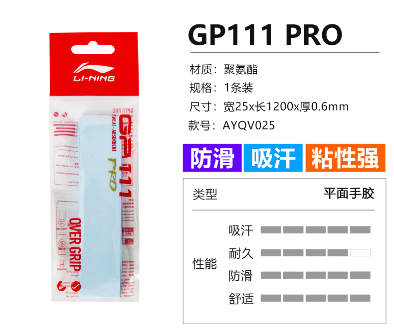 李宁羽毛球手胶GP111 PRO手柄防滑耐磨吸汗带手柄握把胶单条装