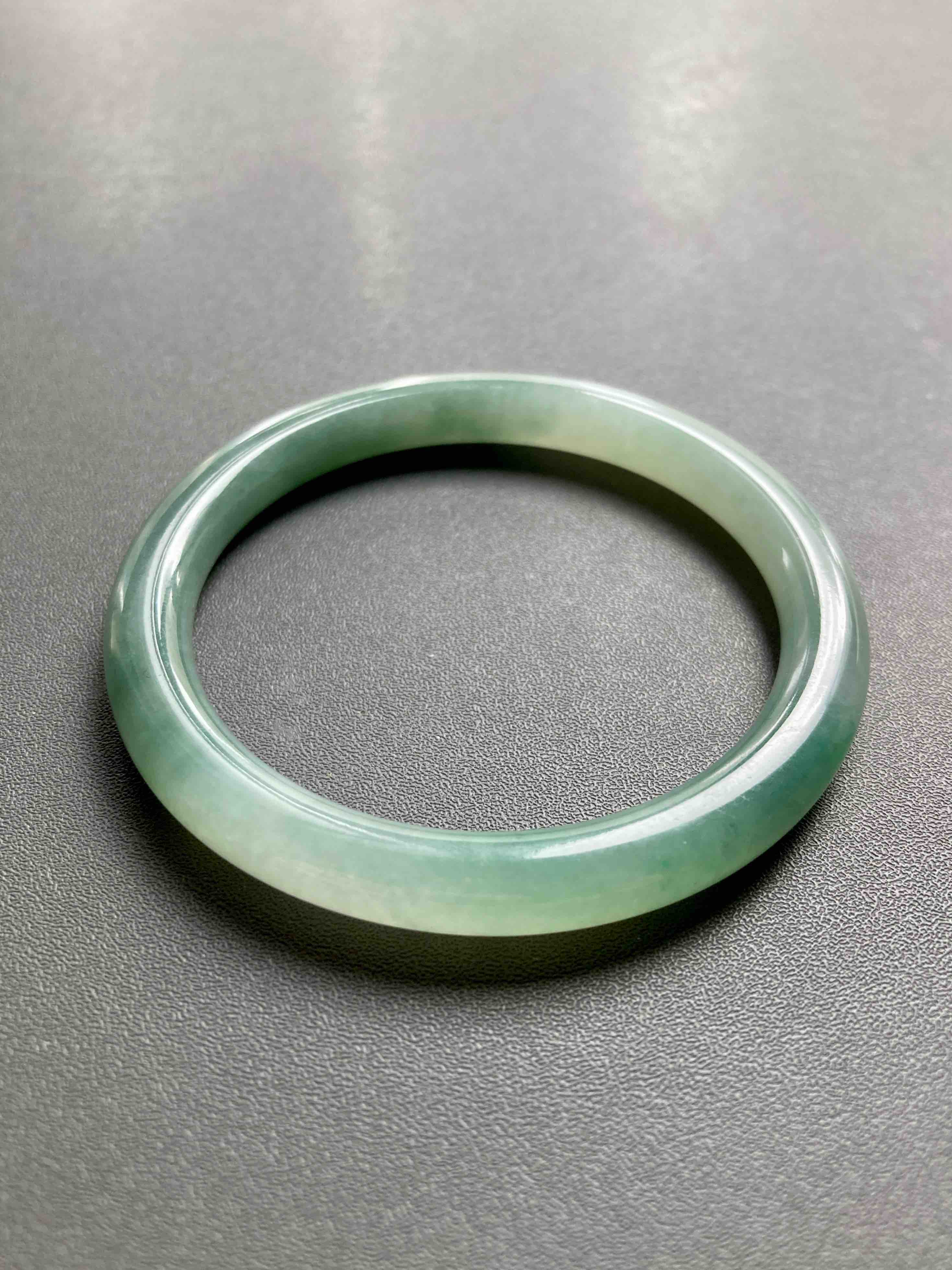 糯冰种晴水绿飘花翡翠细圆条手镯53
