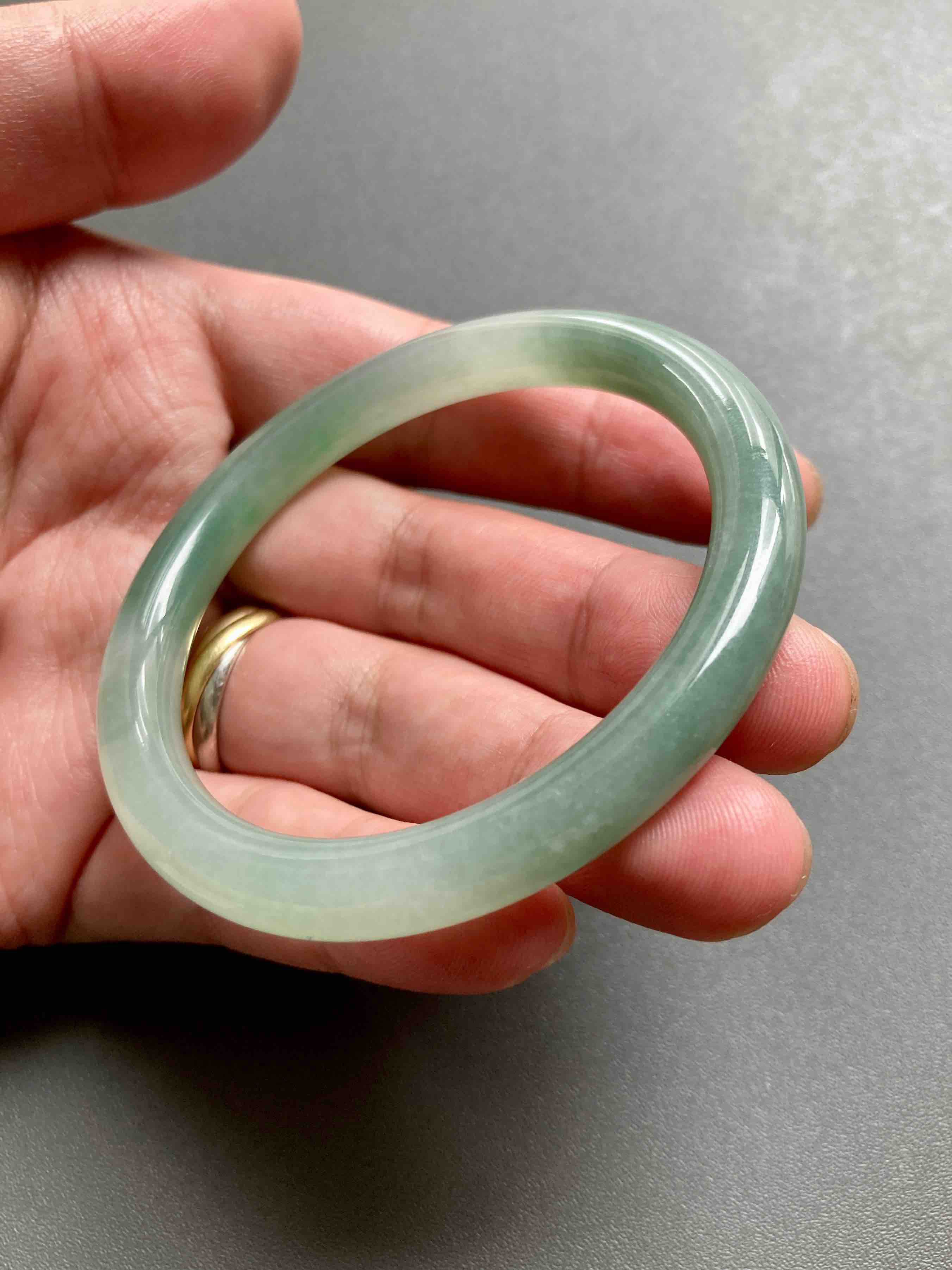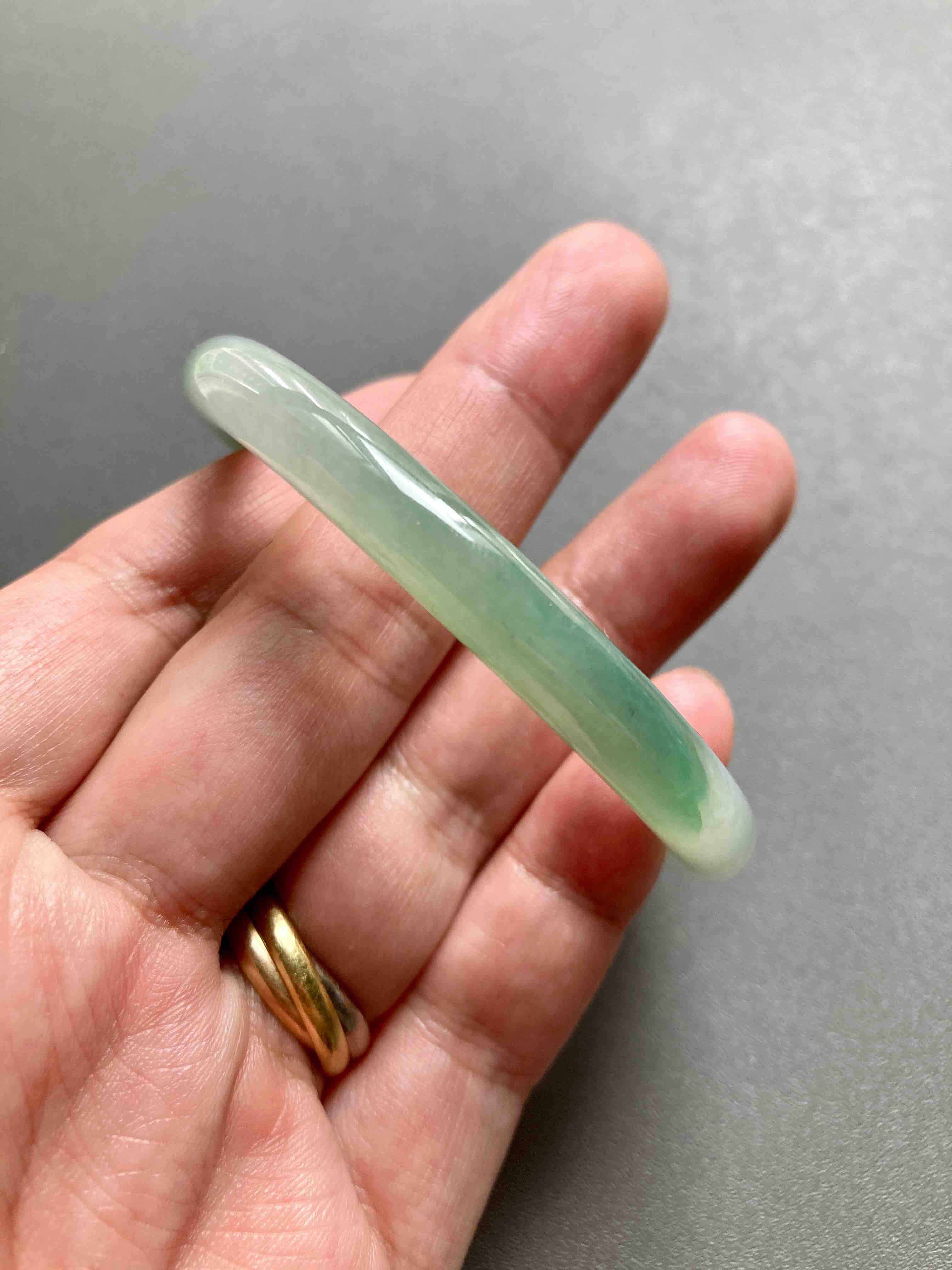 小手有福,人见人爱的细圆条手镯来啦,糯冰种飘绿花,局部到冰,种水太好看了,内径53mm,适合手寸52到54佩戴,四位数种水这么好,别错过