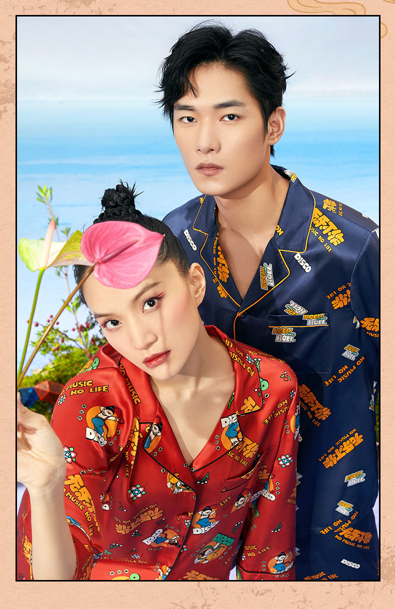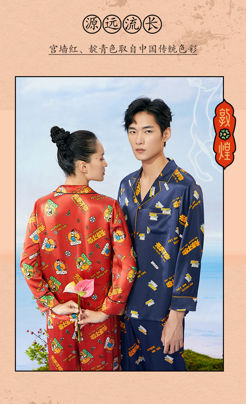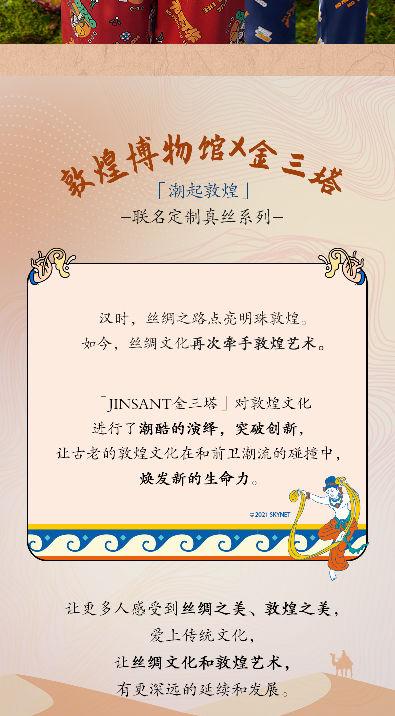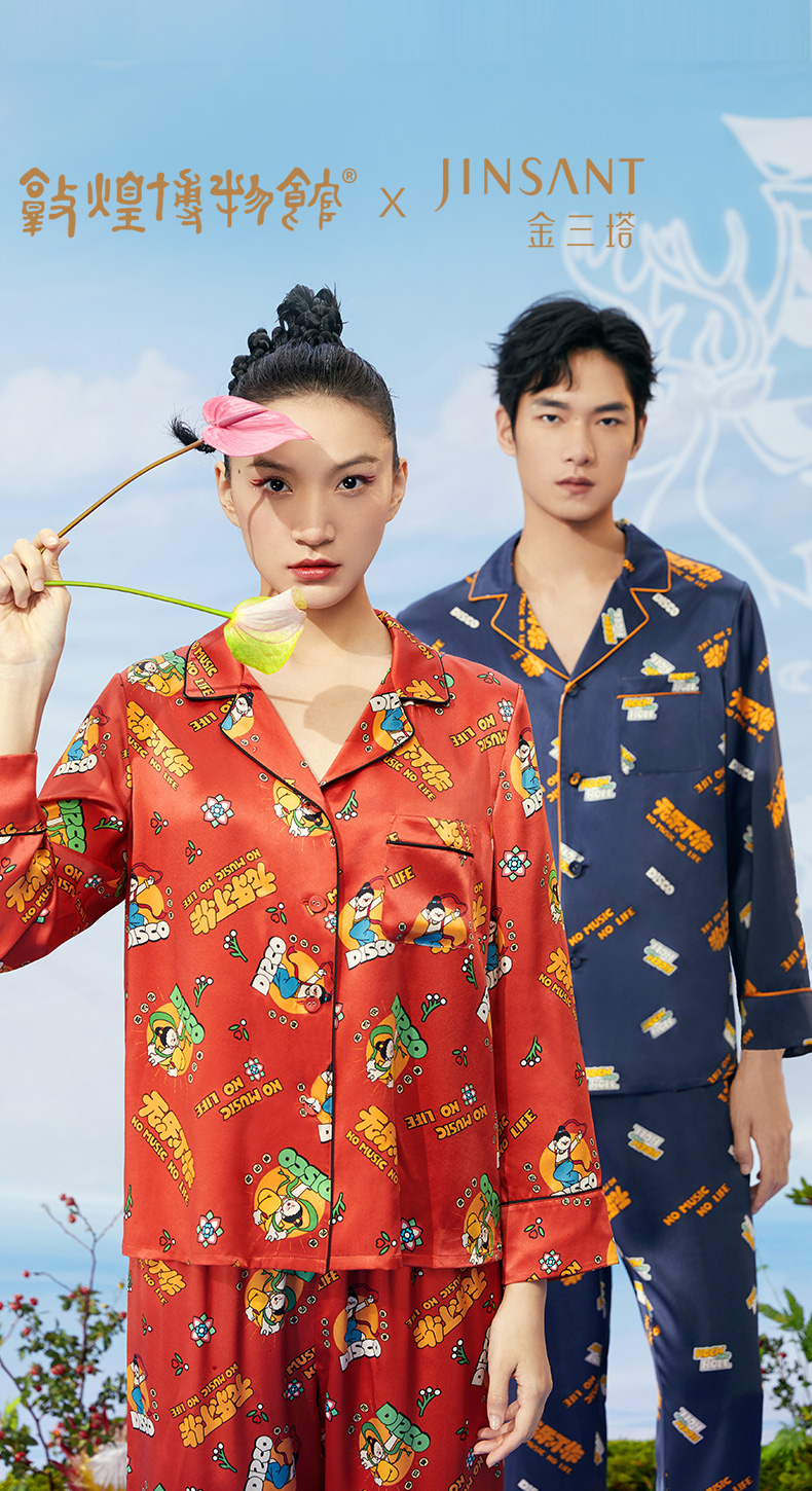金三塔重磅真丝敦煌联名100%桑蚕丝时尚情侣印花衣裤套新品可外穿 YSFCA202 YSMCA201