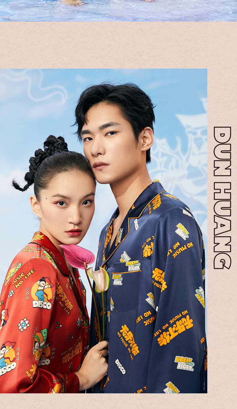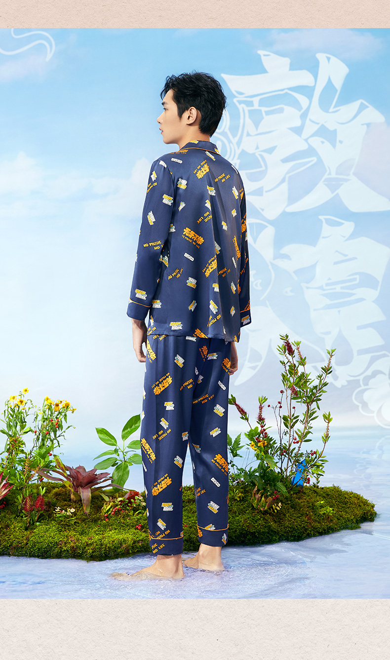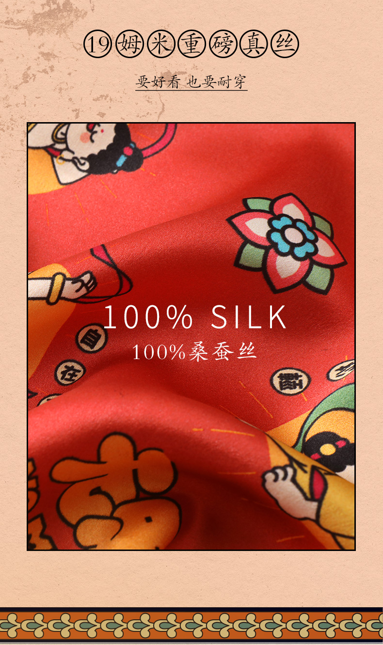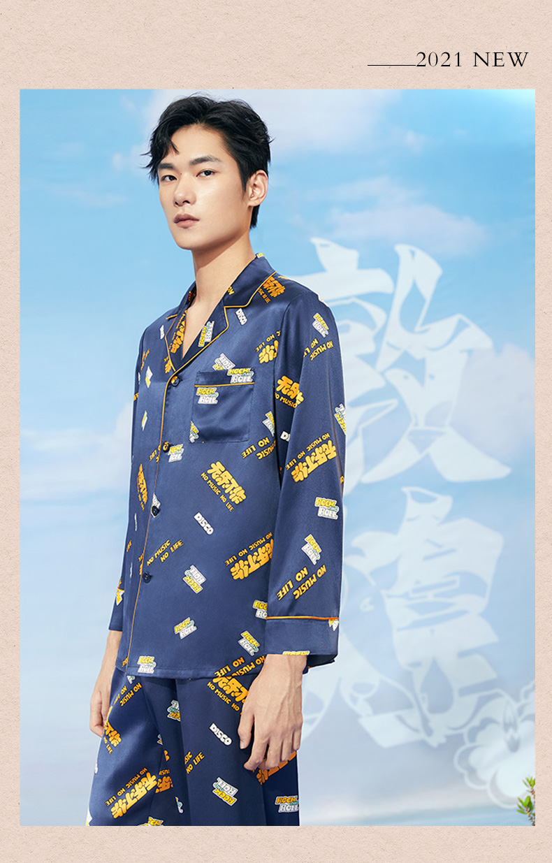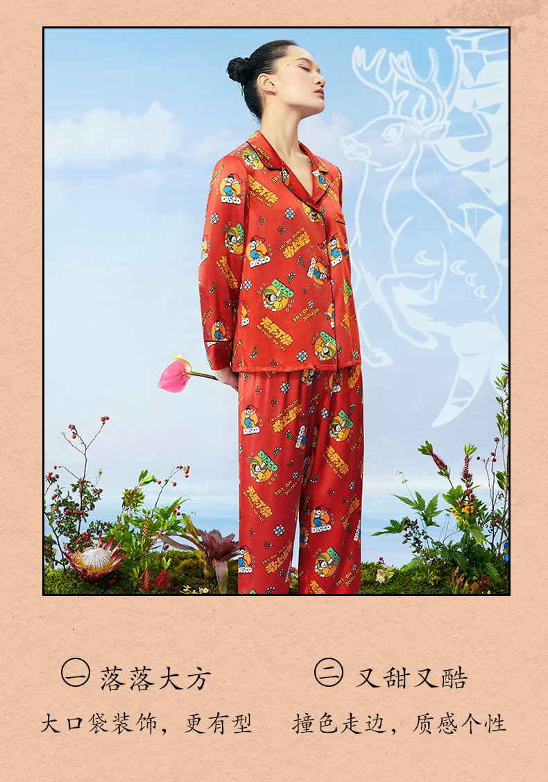 金三塔重磅真丝敦煌联名100%桑蚕丝时尚情侣印花衣裤套新品可外穿 YSFCA202 YSMCA201